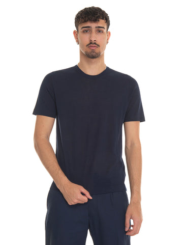 Maglia girocollo, mezza manica, tinta unita, composizione: 100% cotone, linea: GRAN SASSO.