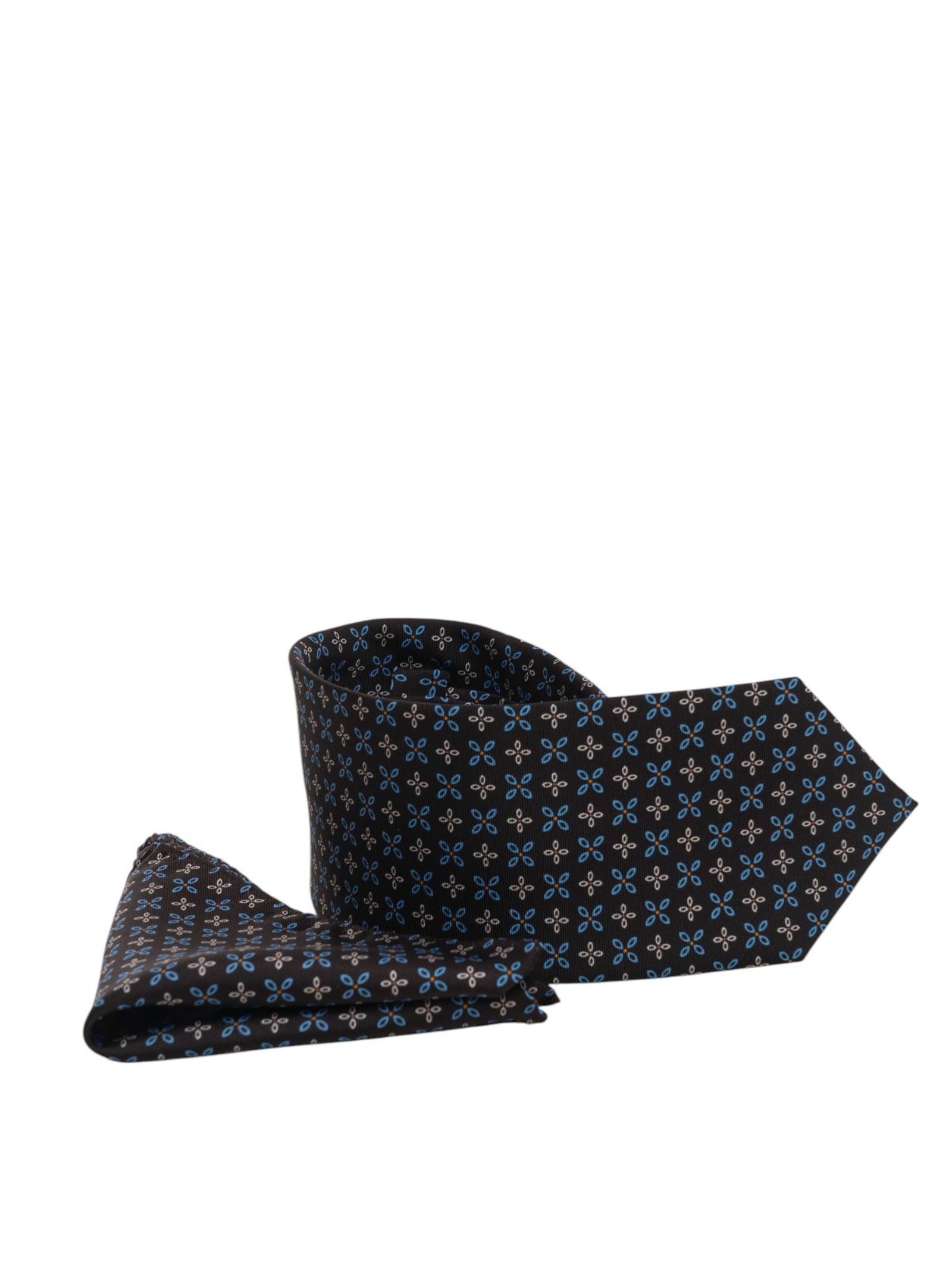 Cravatta in seta, fantasia fiori, pochette in abbinato, larghezza cravatta: 7,5 cm, composizione: 100% seta, linea: NAPOLEONE BARBA.