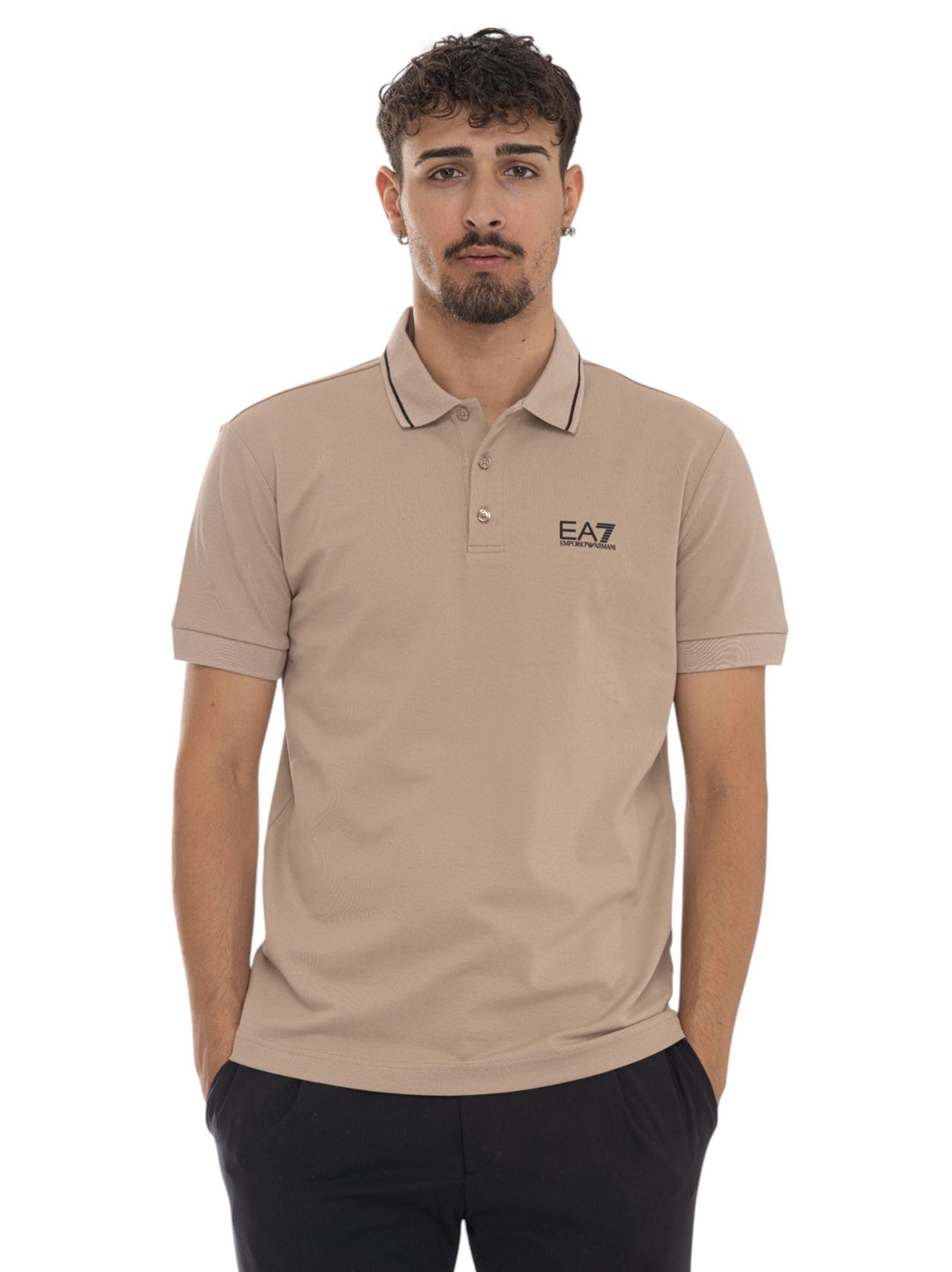 Polo in cotone piquet, mezza manica, 3 bottoni, logo anteriore, profili sul collo, composizione: 97% cotone, 3% elastan, linea: EA7.
