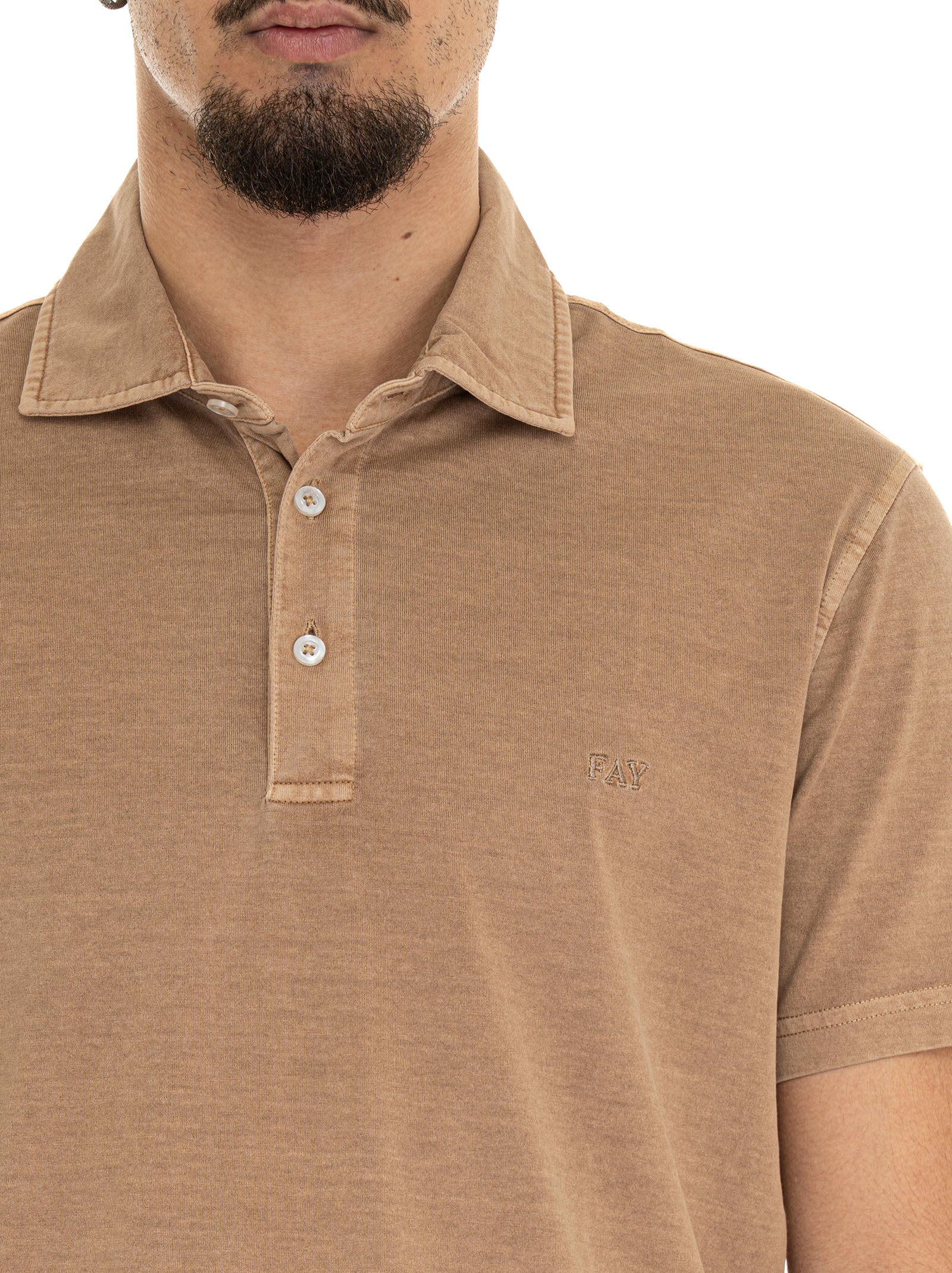 Polo manica corta, collo camicia, stone washed, logo sul petto, composizione: 100% cotone, linea: FAY.