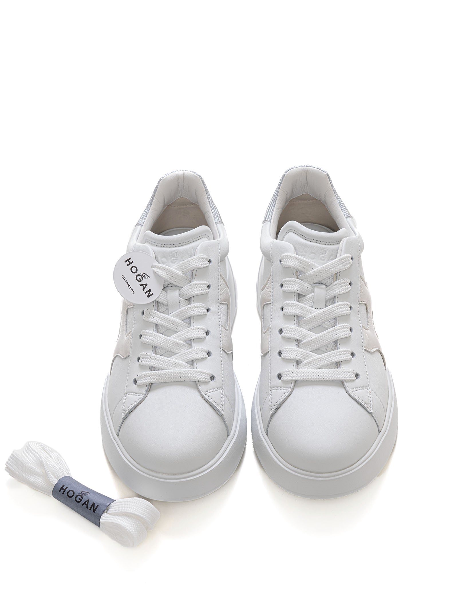Sneakers in pelle con lacci Rebel Bianco-argento Hogan Donna
