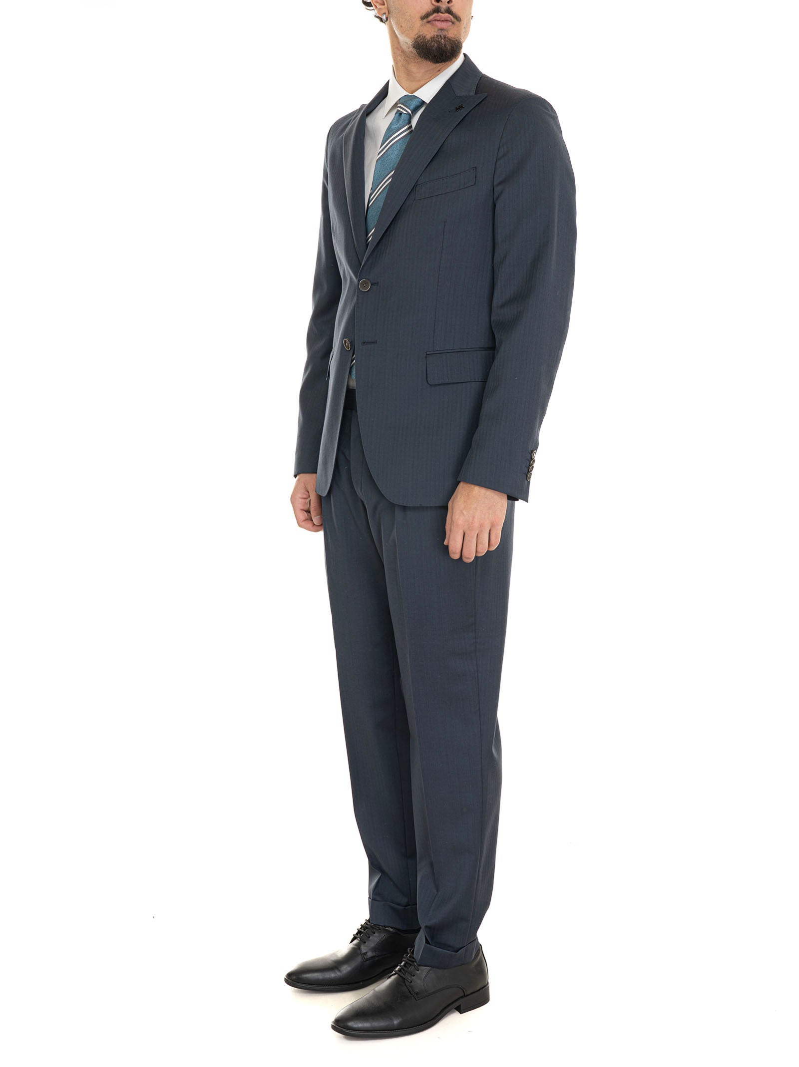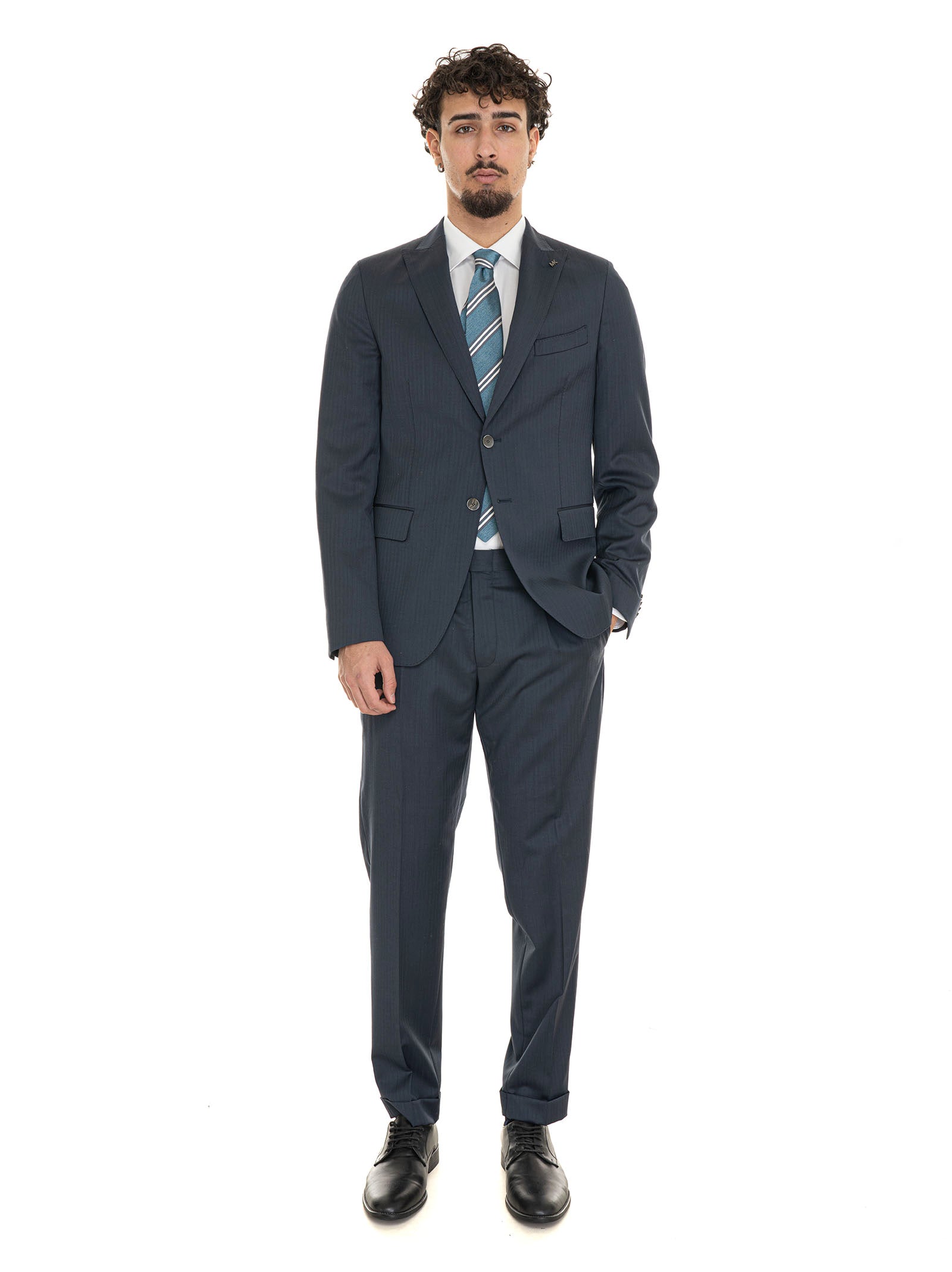 Abito da uomo 2 bottoni, revers a lancia, tessuto operato, pantalone classico, pinces sul davanti, fondo 18 cm, fondo con risvolto, composizione: 100% lana, interno: 100% poliestere, linea: MICHAEL KORS.