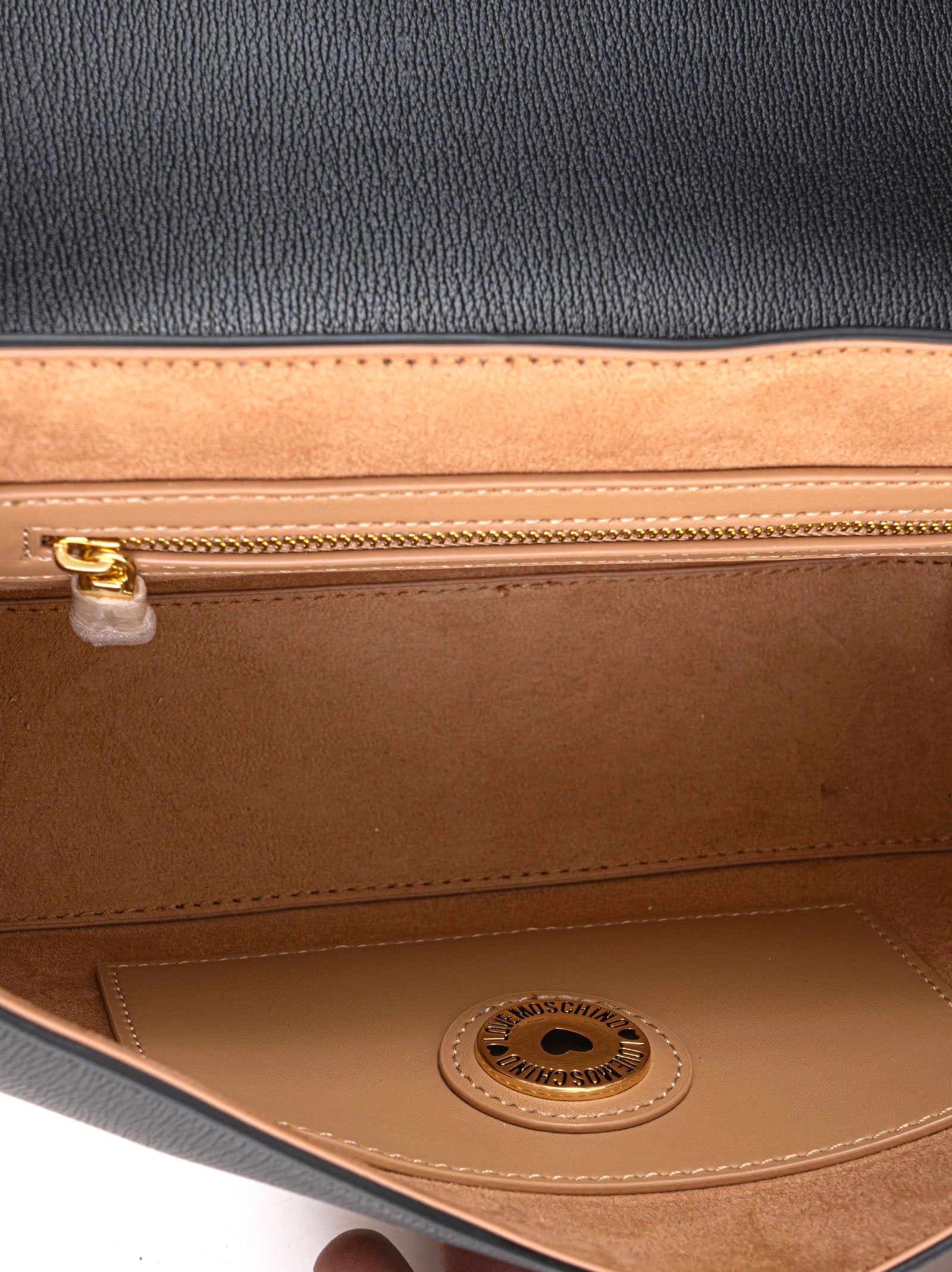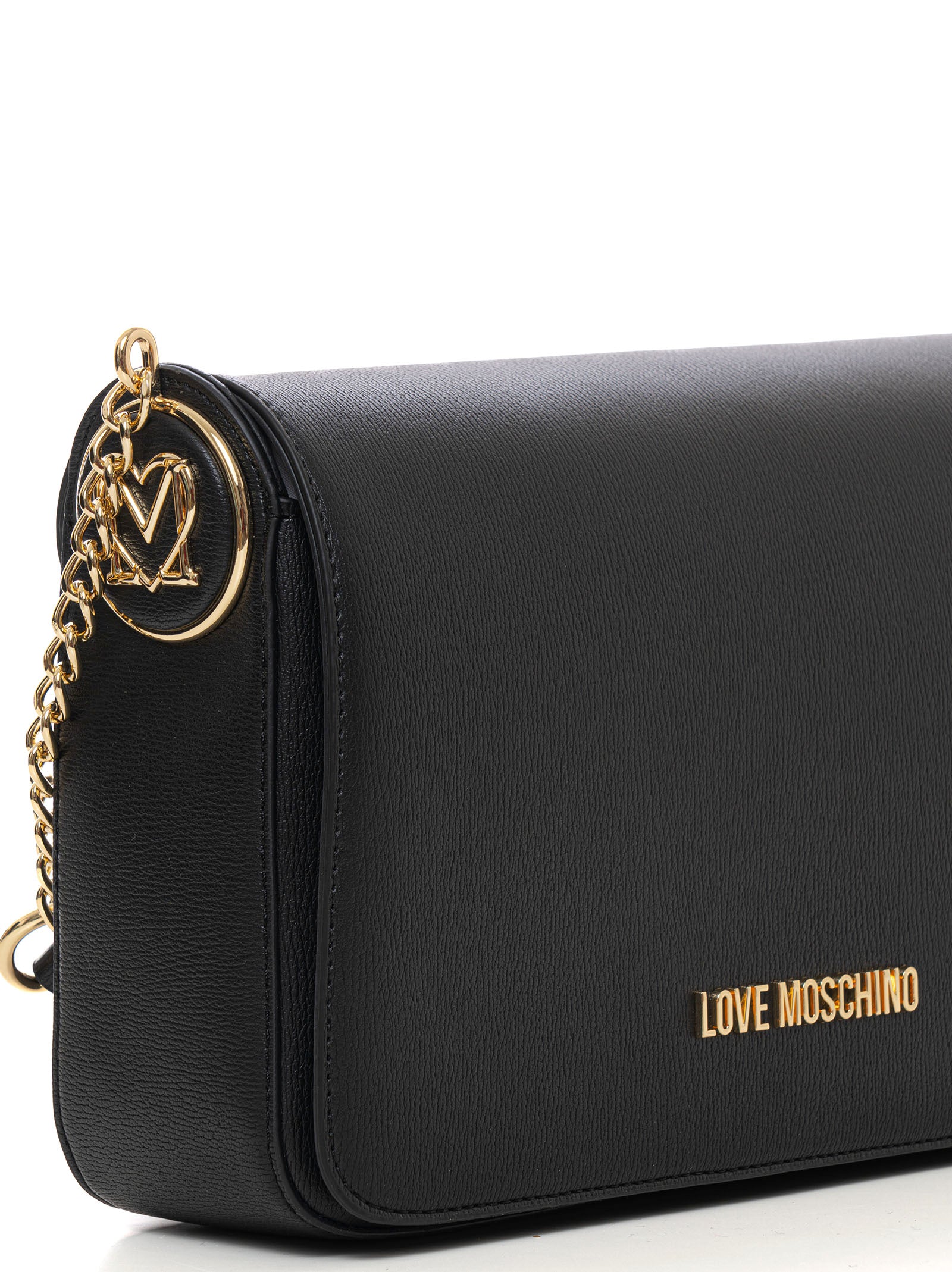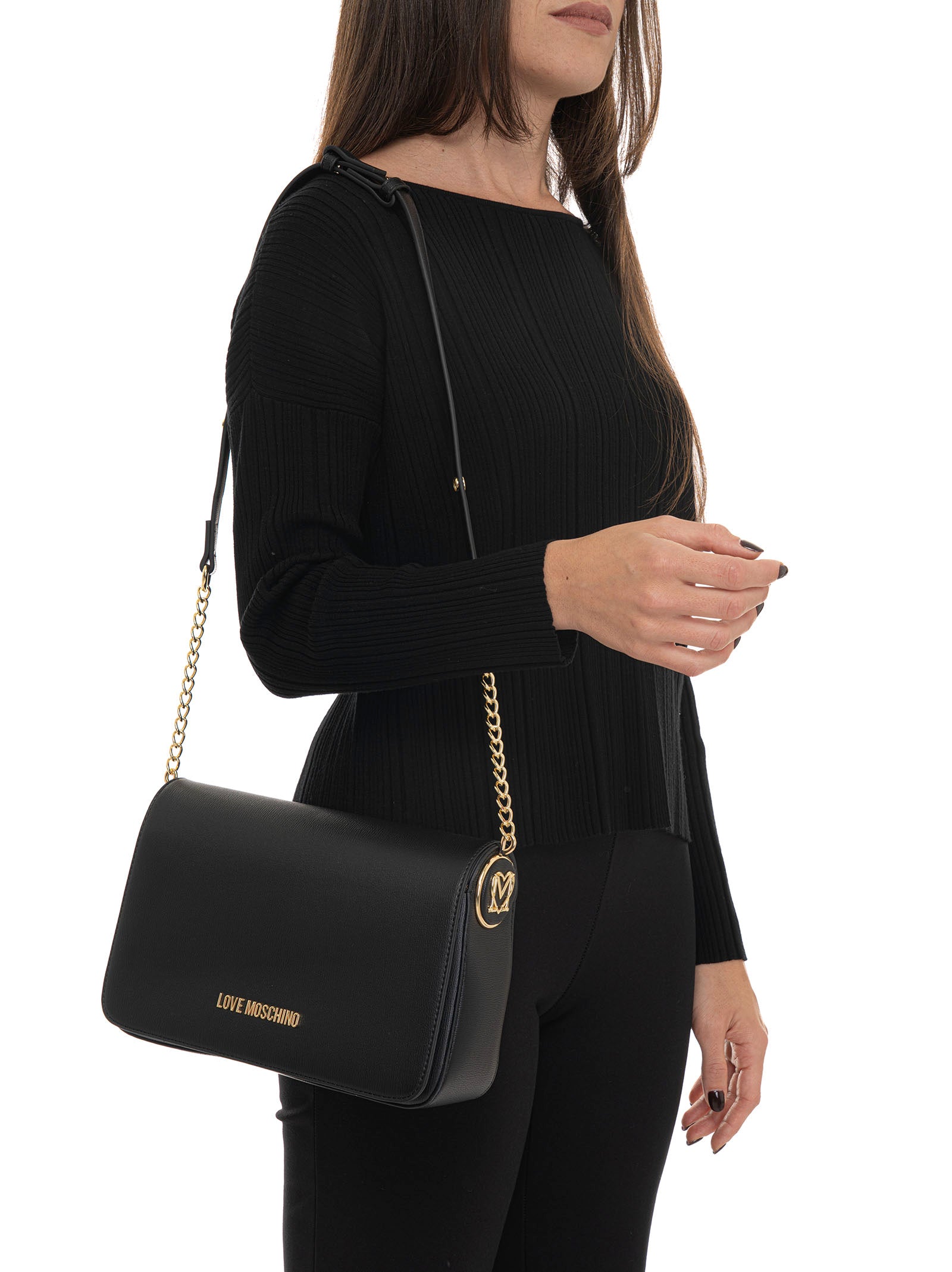 Borsa a tracolla, tracolla regolabile a catena, scritta frontale, chiusura con patta e bottone automatico, composizione: 100% poliuretano, linea: LOVE MOSCHINO.
