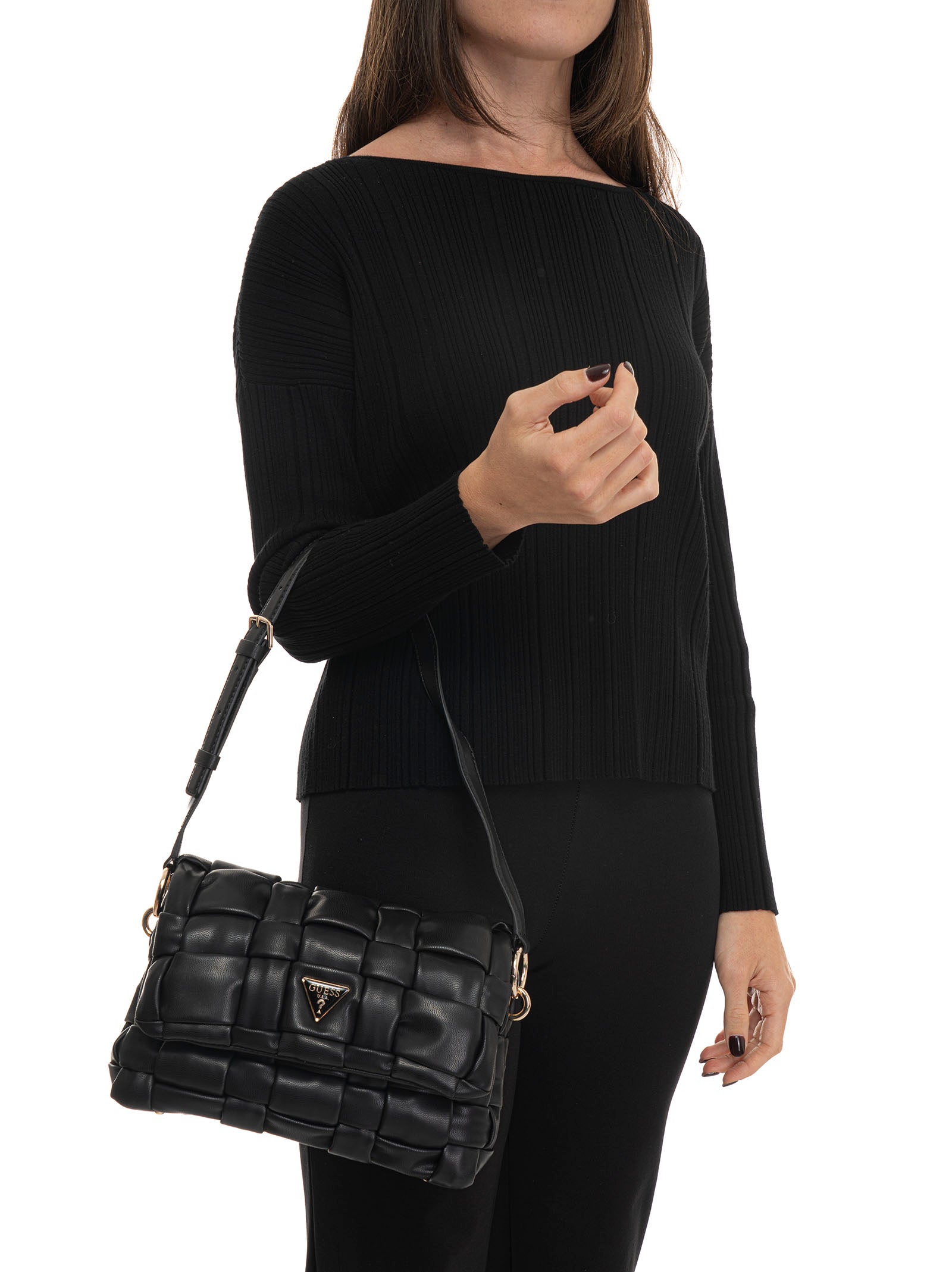 Borsa media Guess Marion flap, tracolla removibile e regolabile, lavorazione effetto intrecciato, chiusura con patta e bottone automatico, logo anteriore, tasche interne multifunzione, composizione: 100% poliuretanico, linea: GUESS.