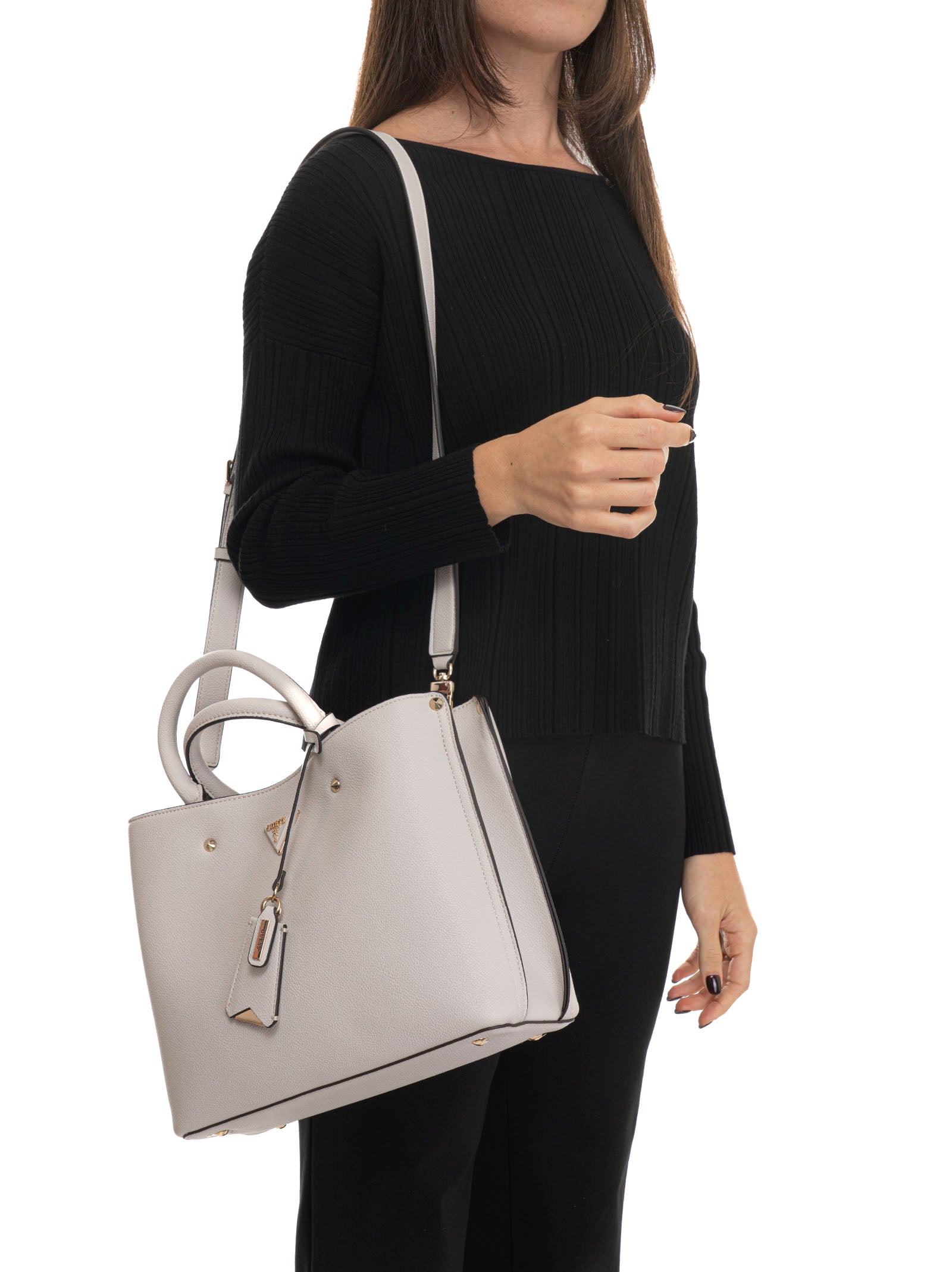 Borsa media Guess Meridian , due manici, tracolla removibile e regolabile, tre tasche interne: una con chiusura lampo e due aperte, logo anteriore, piedini metallici alla base, composizione: 100% poliuretanico, linea: GUESS.