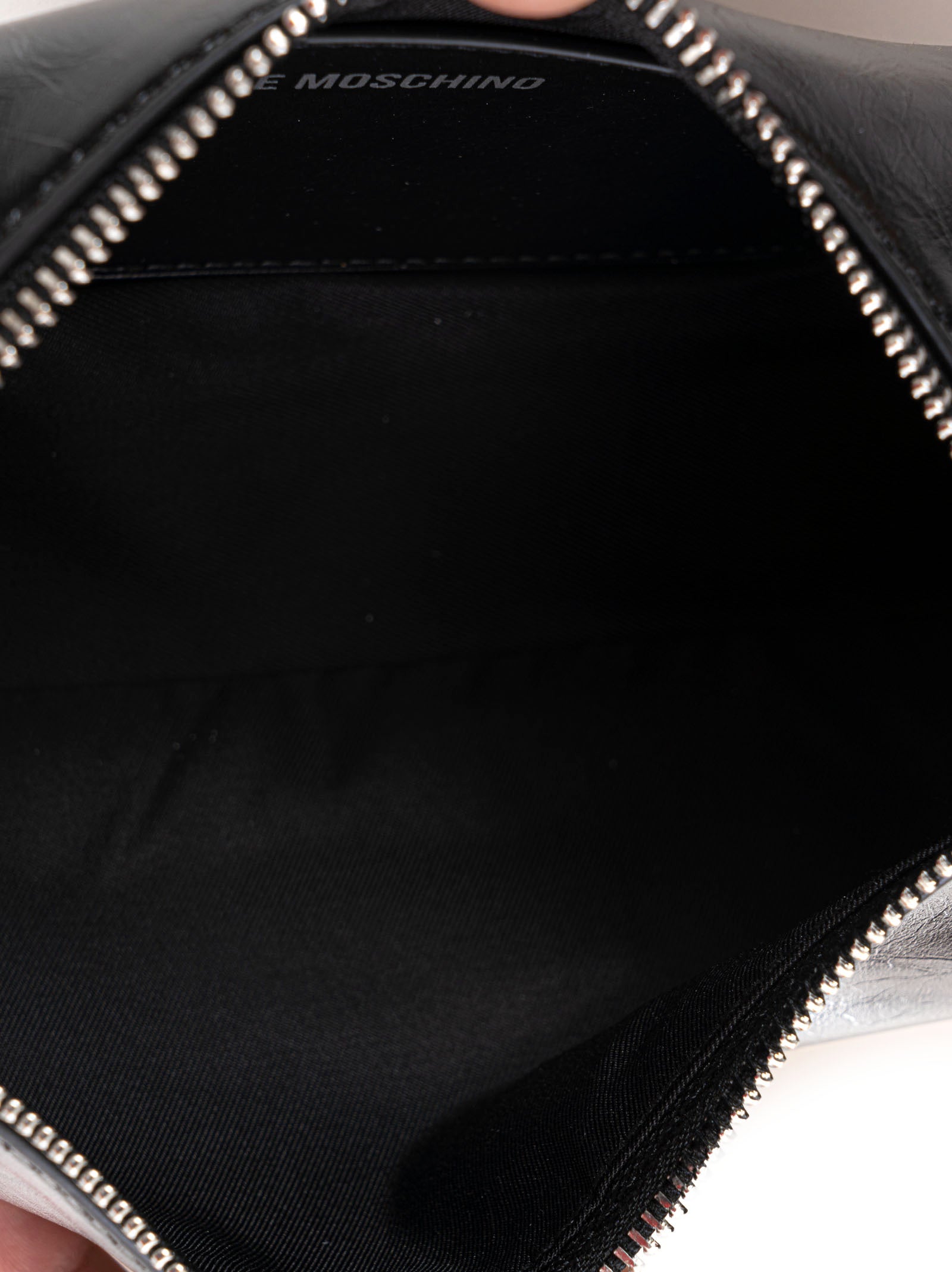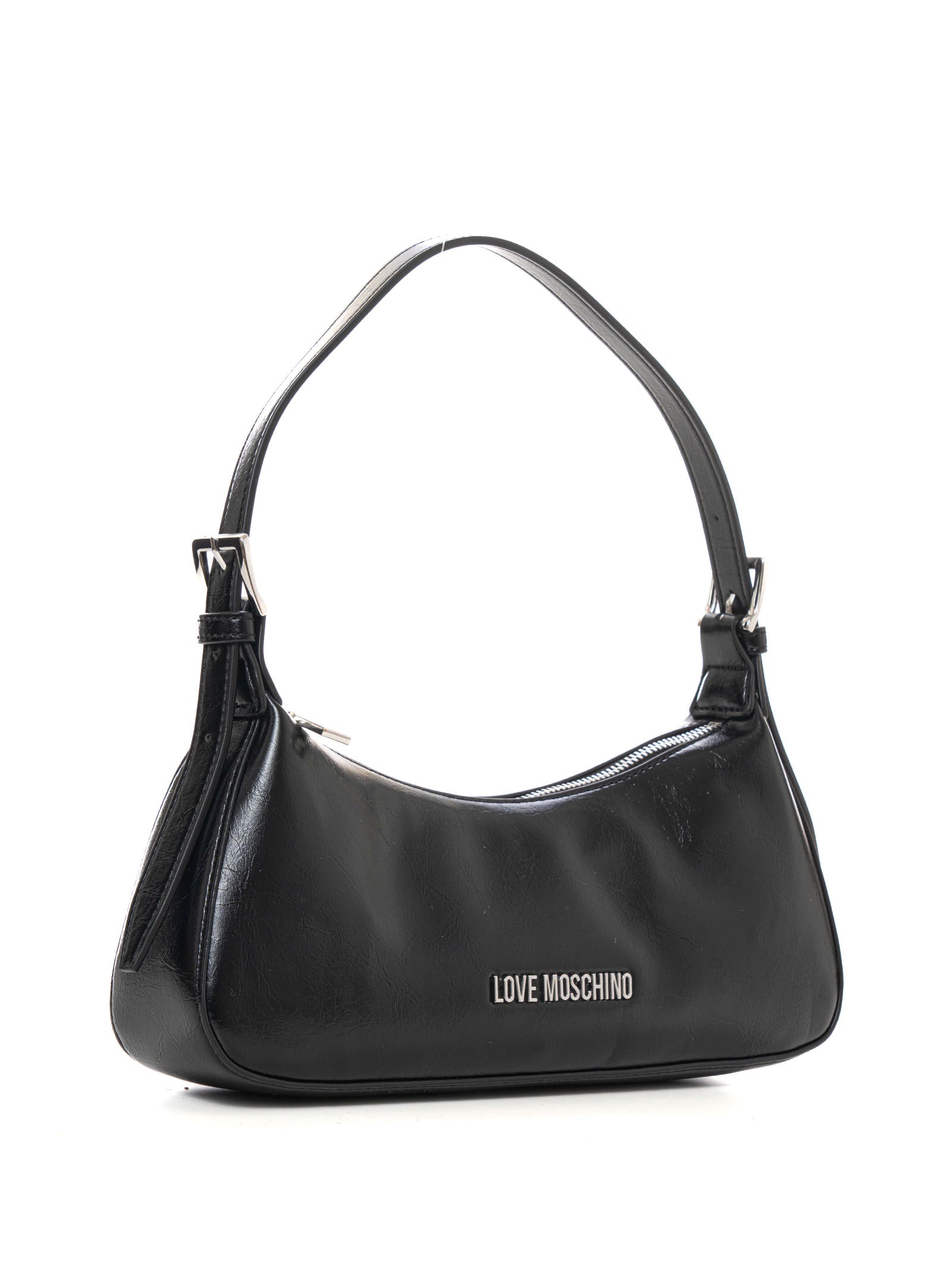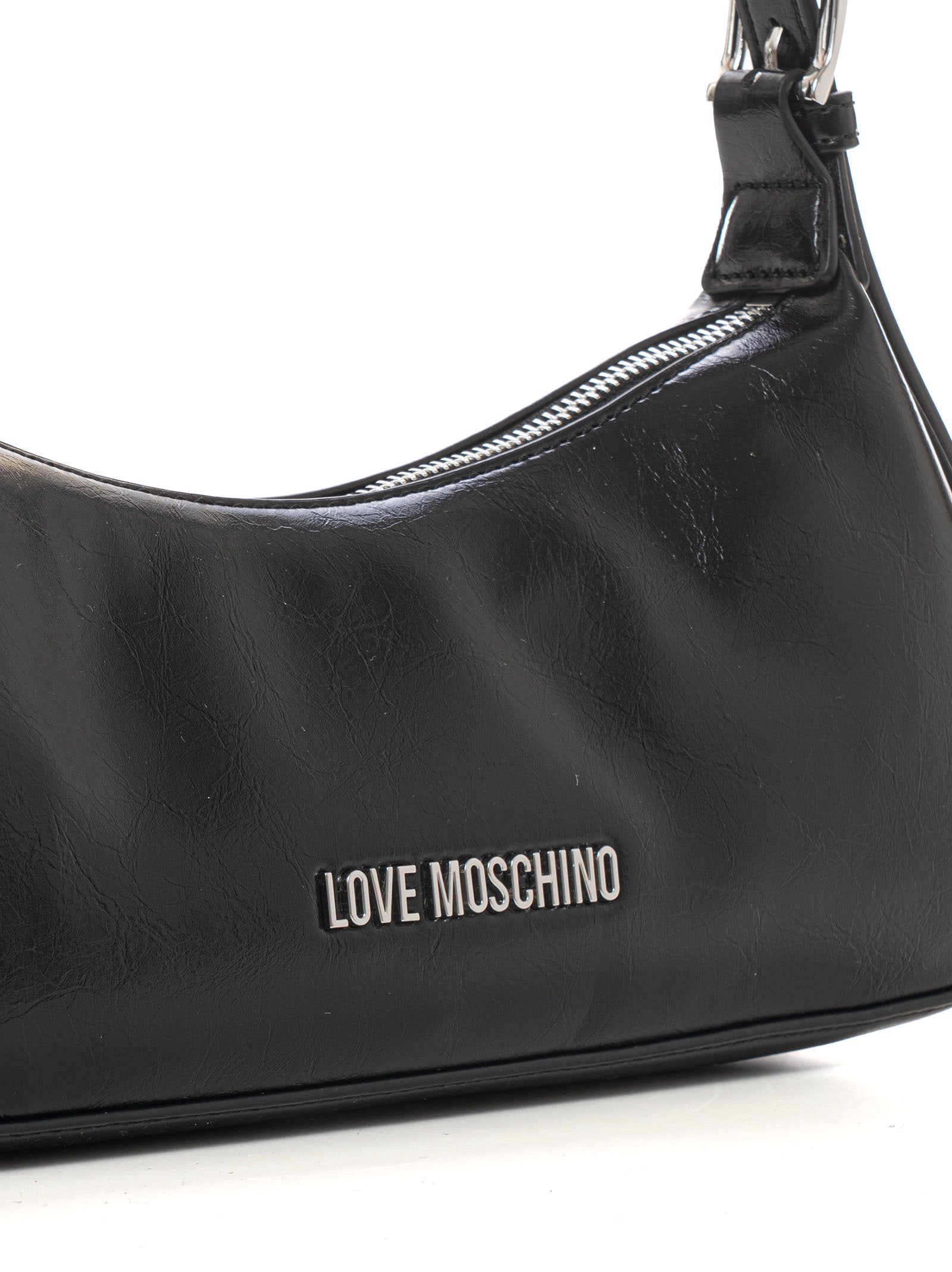 Borsa mezza luna, manico regolabile con fibbia in metallo, chiusura con cerniera, scritta frontale, composizione: 100% poliuretano, linea: LOVE MOSCHINO.
