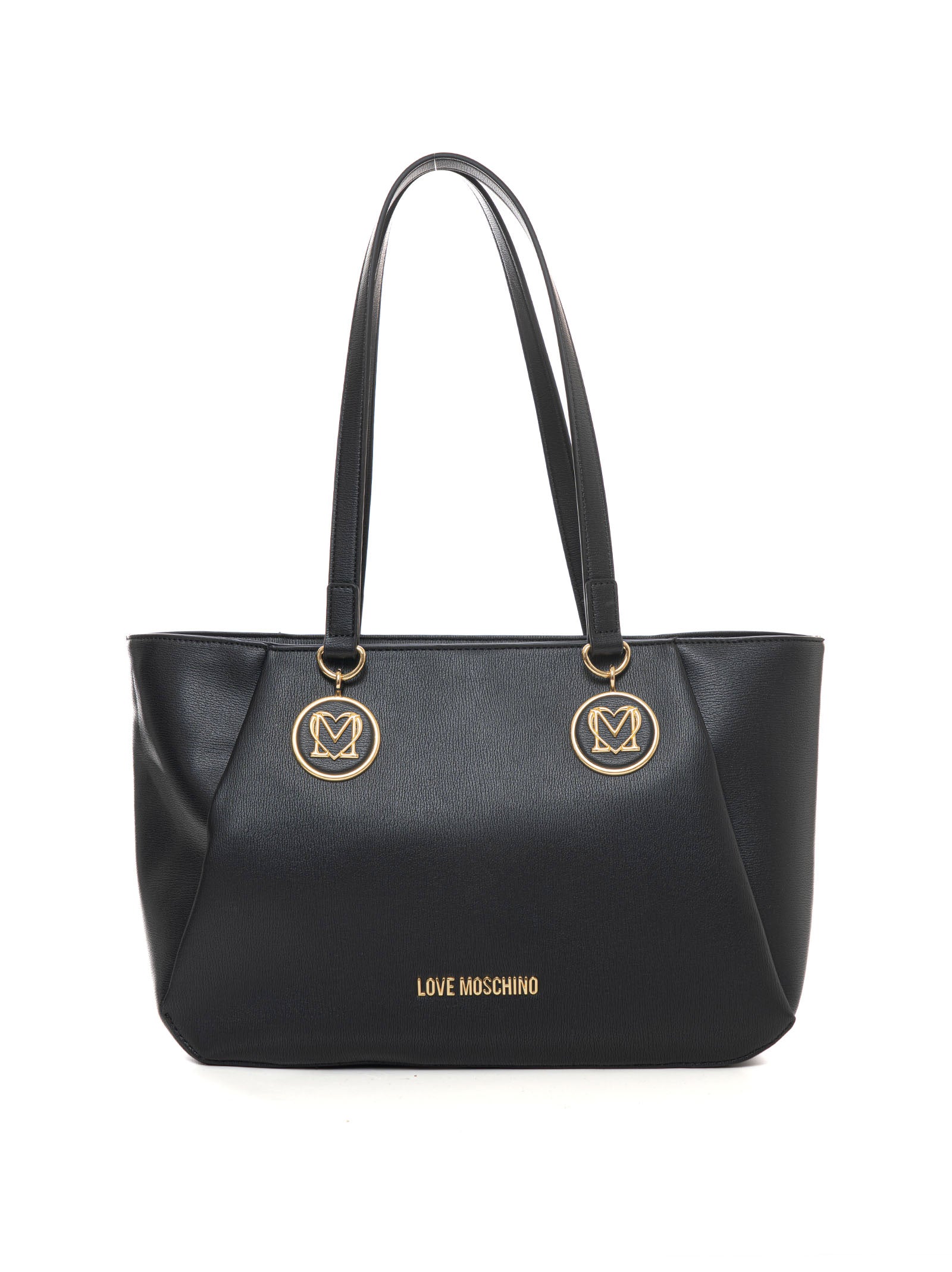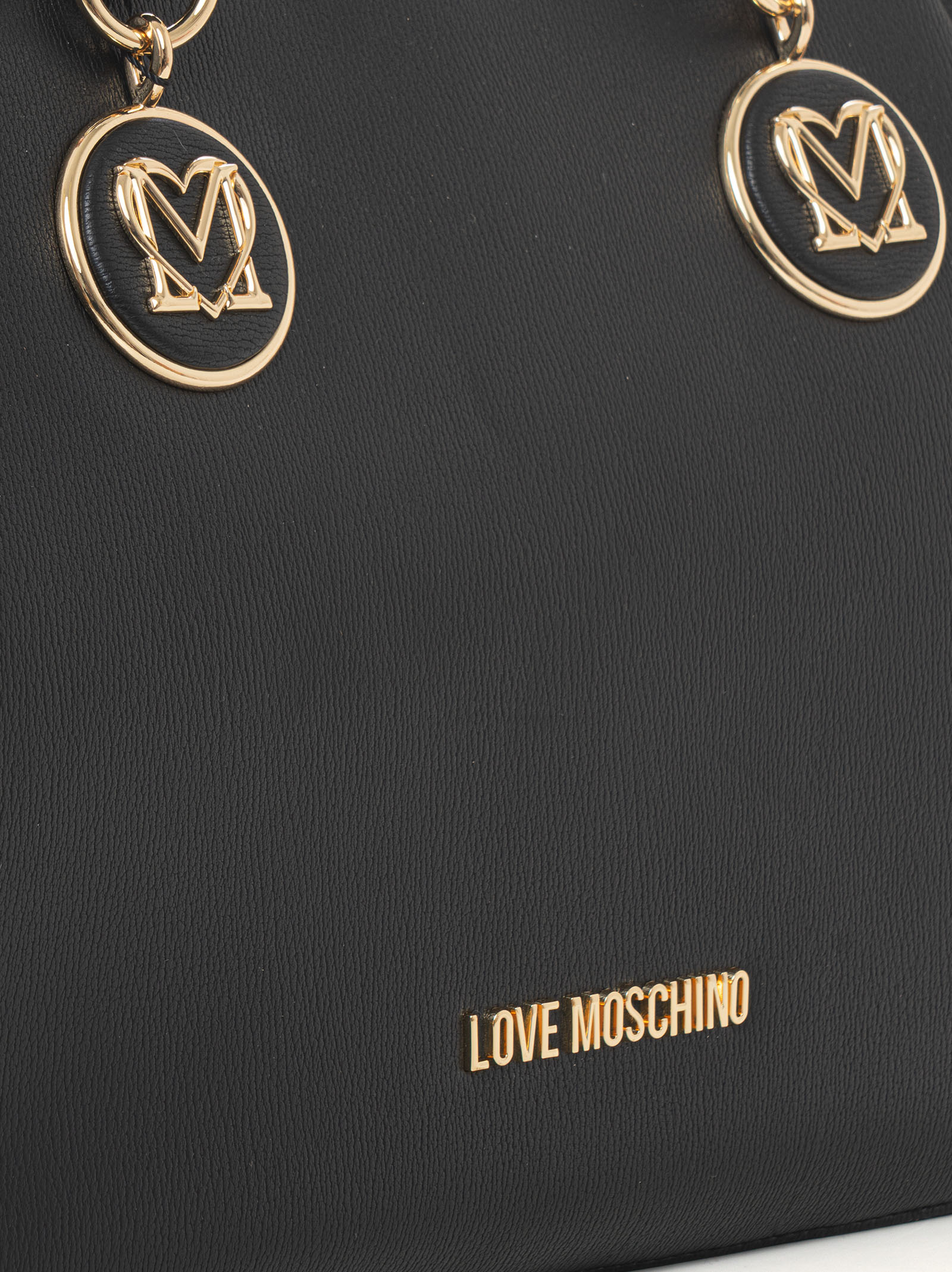 Borsa modello shopper grande, doppi manici, chiusura con cerniera, scritta frontale, tasche interne multifunzione, composizione: 100% poliuretanico, linea: LOVE MOSCHINO.