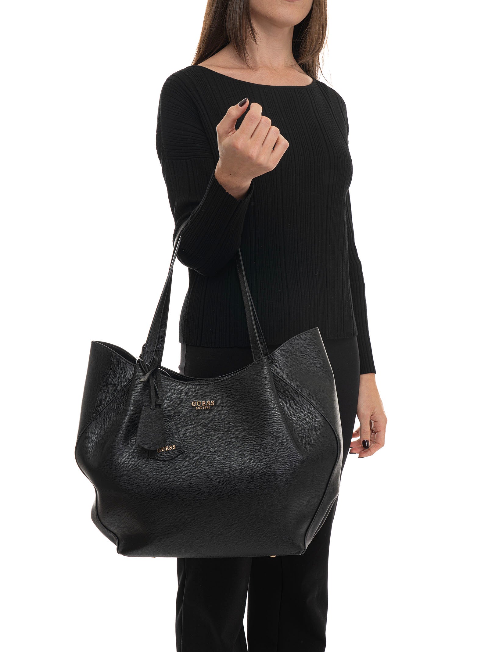 Borsa shopping Guess Amorette 2 in 1, due manici, pochette rimovibile inclusa, logo anteriore, chiusura con bottone magnetico, charm portamonete removibile, composizione: 100% poliuretanico, linea: GUESS.