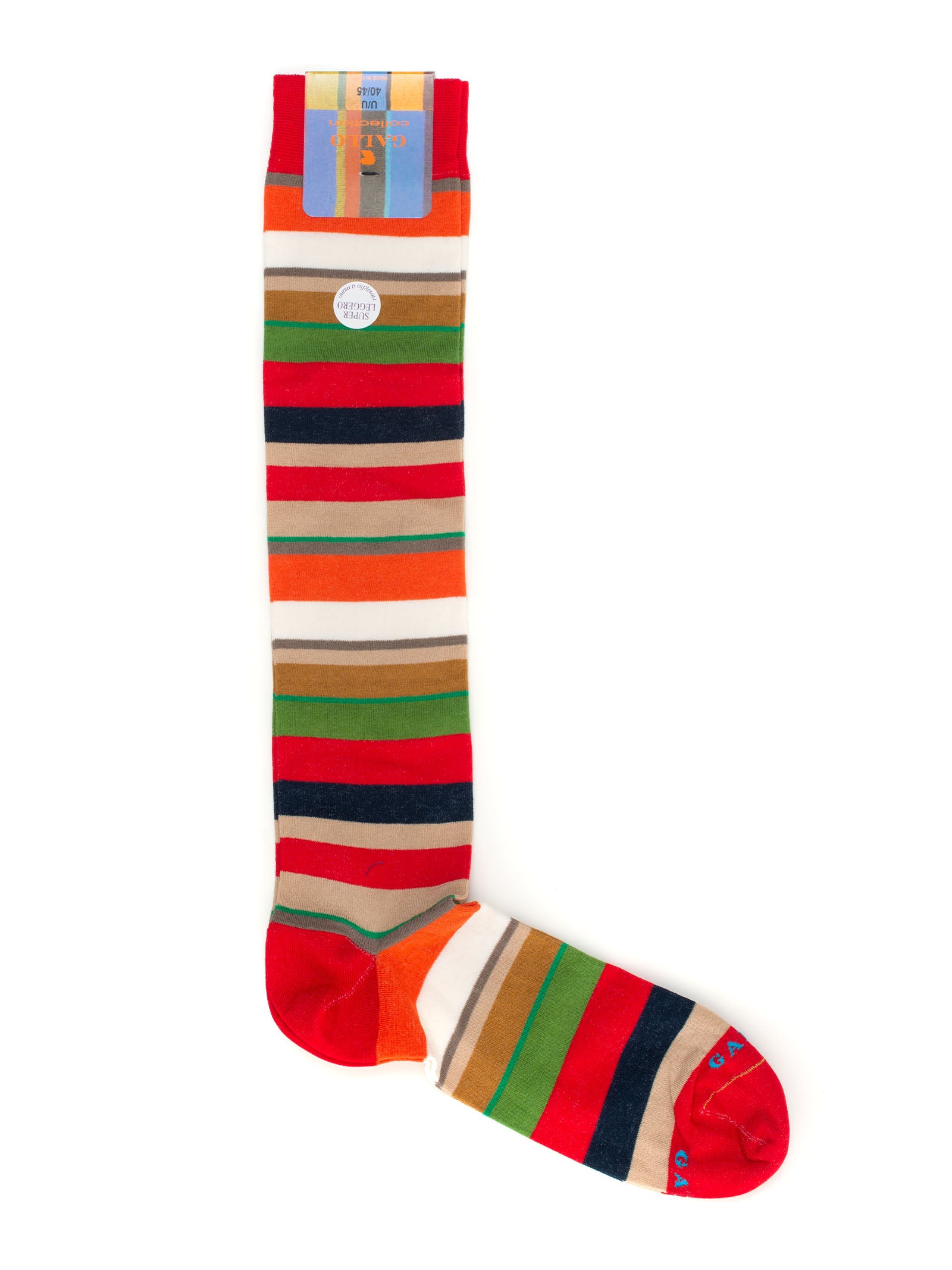 Calzino a fantasia, multicolor, fantasia con righe orizzontali, made in italy, composizione: 77% cotone, 20% poliammide, 3% elastan, elastanlinea: GALLO.