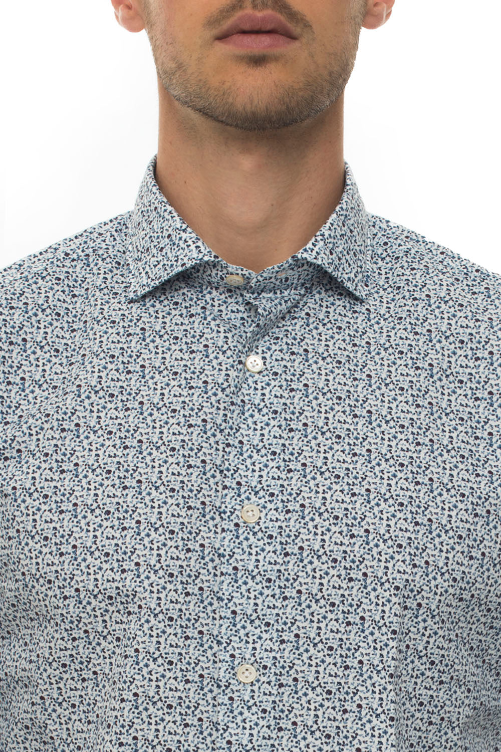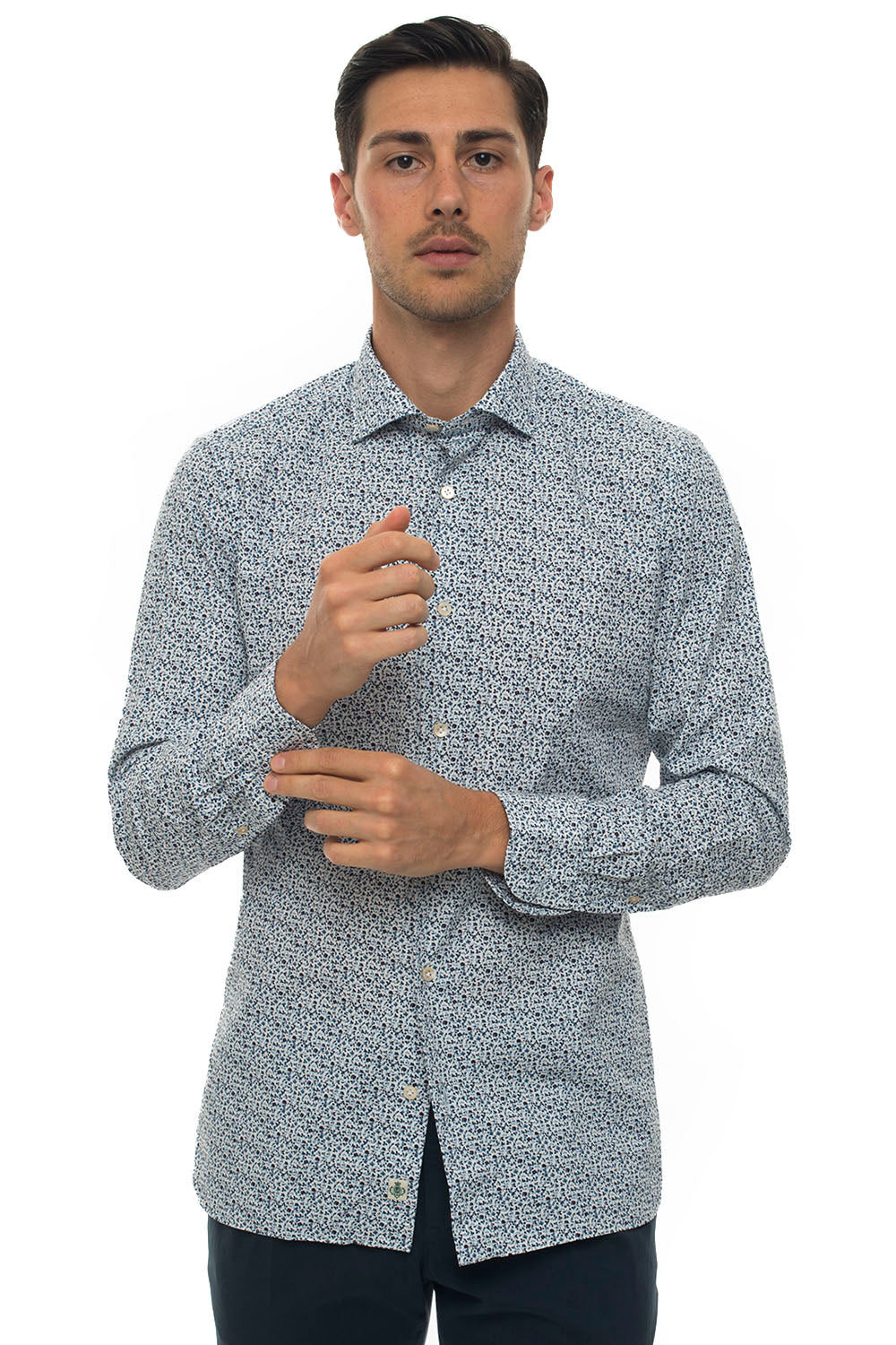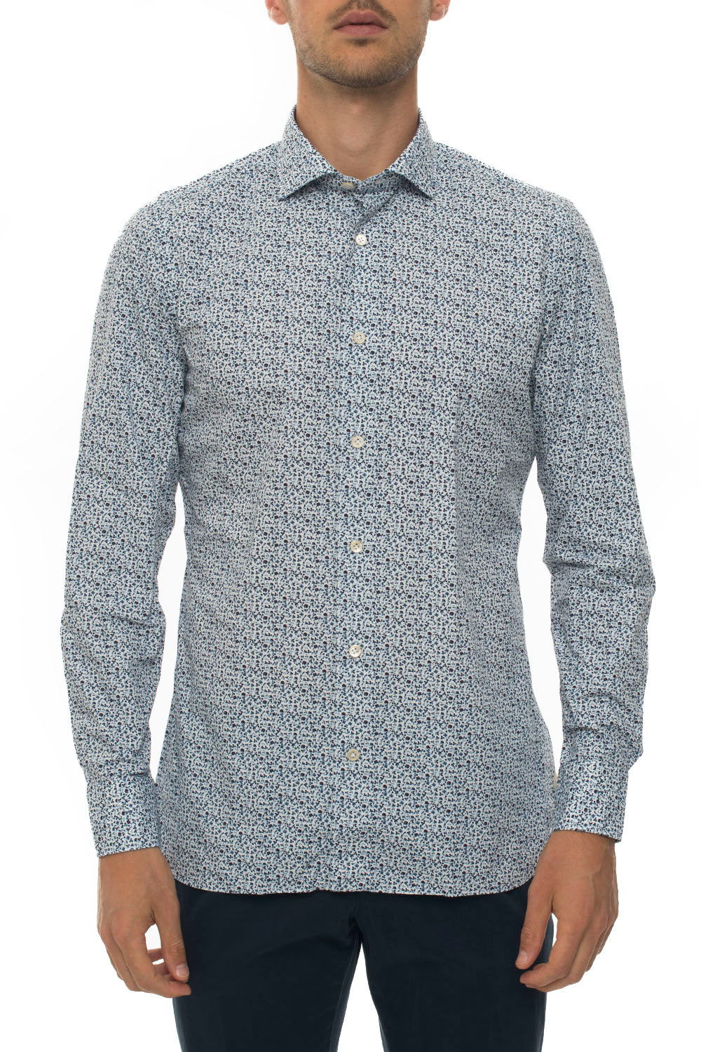 Camicia casual, collo francese, fantasia a fiori, linguetta con logo, made in italy, vestibilità slim, composizione: 100% cotone, linea: LUIGI BORRELLI.
