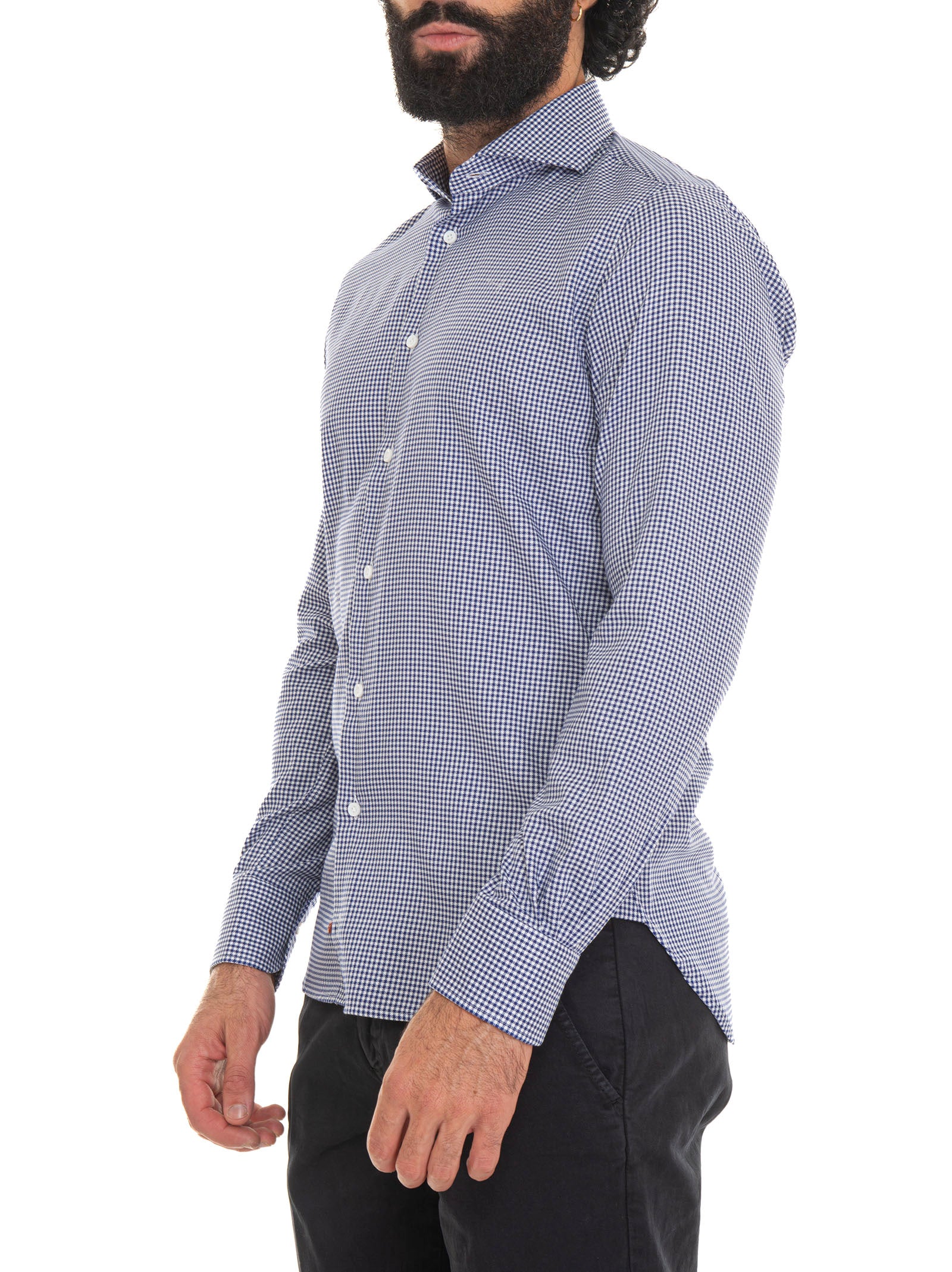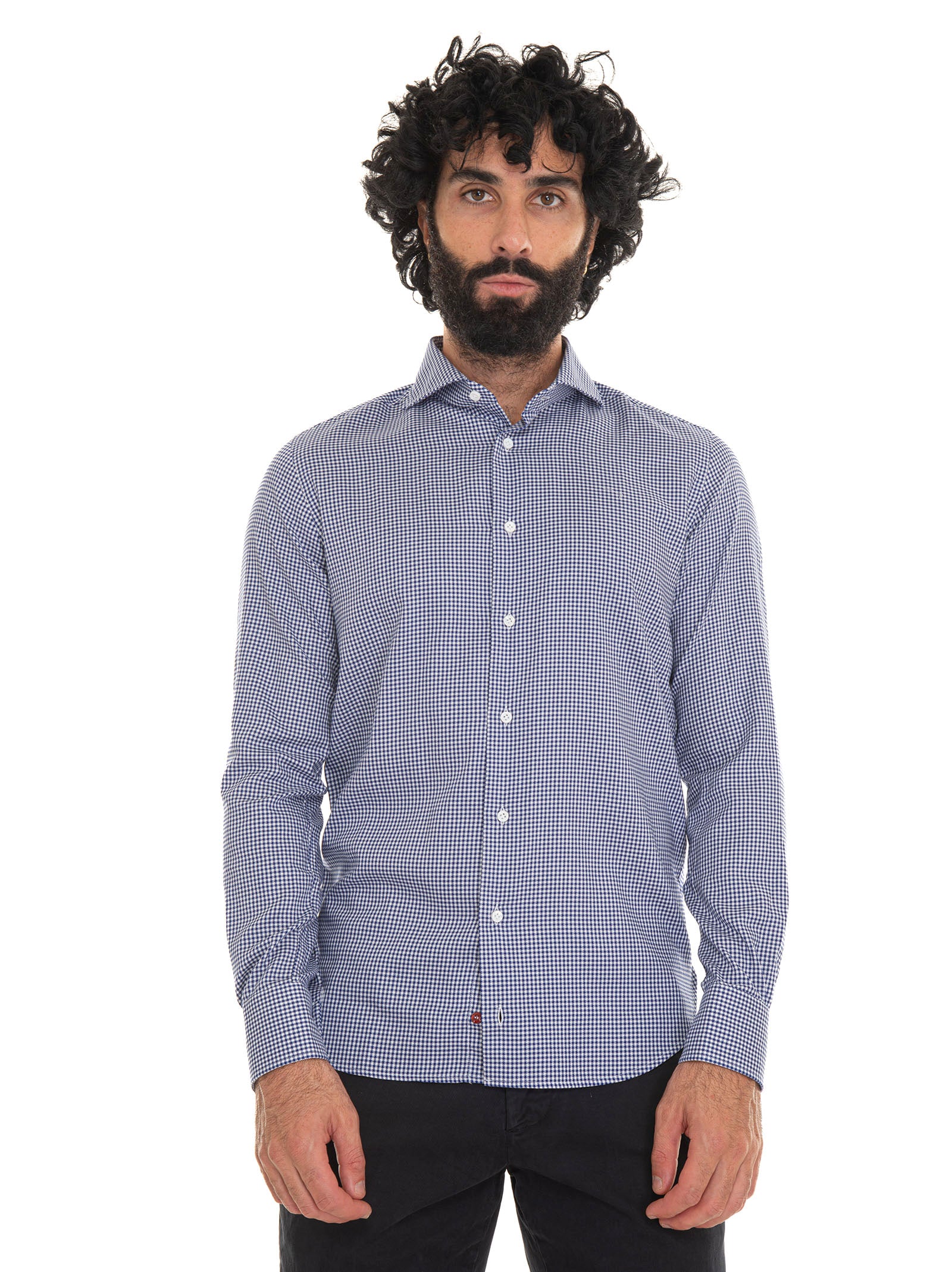 Camicia casual, fantasia a quadri piccoli, pochette in abbinato, composizione: 100% cotone, linea: CARREL.