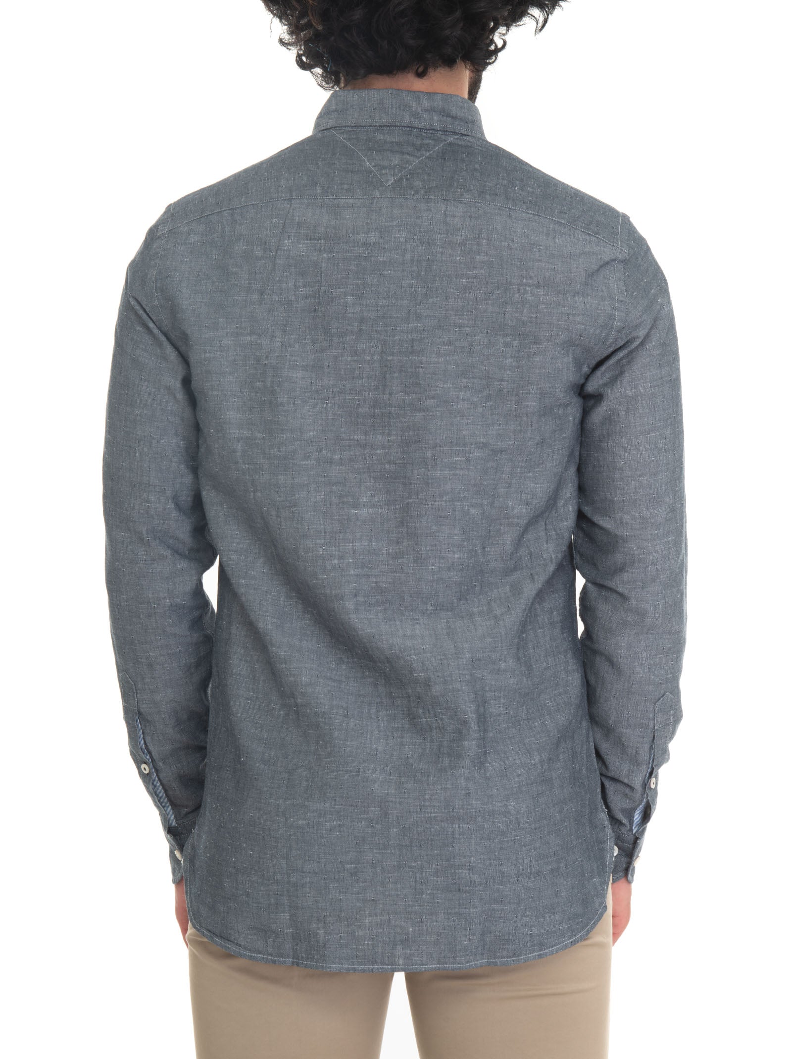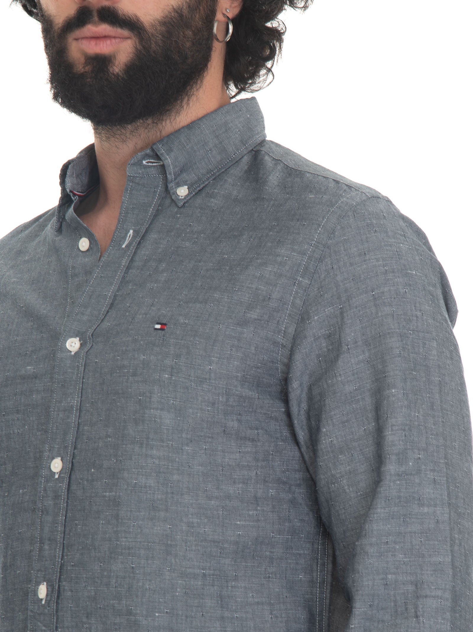 Camicia casual, manica lunga, collo button-down, microfantasia, effetto fiammato, vestibilità regular, composizione: 70% cotone, 30% lino, linea: TOMMY HILFIGER.