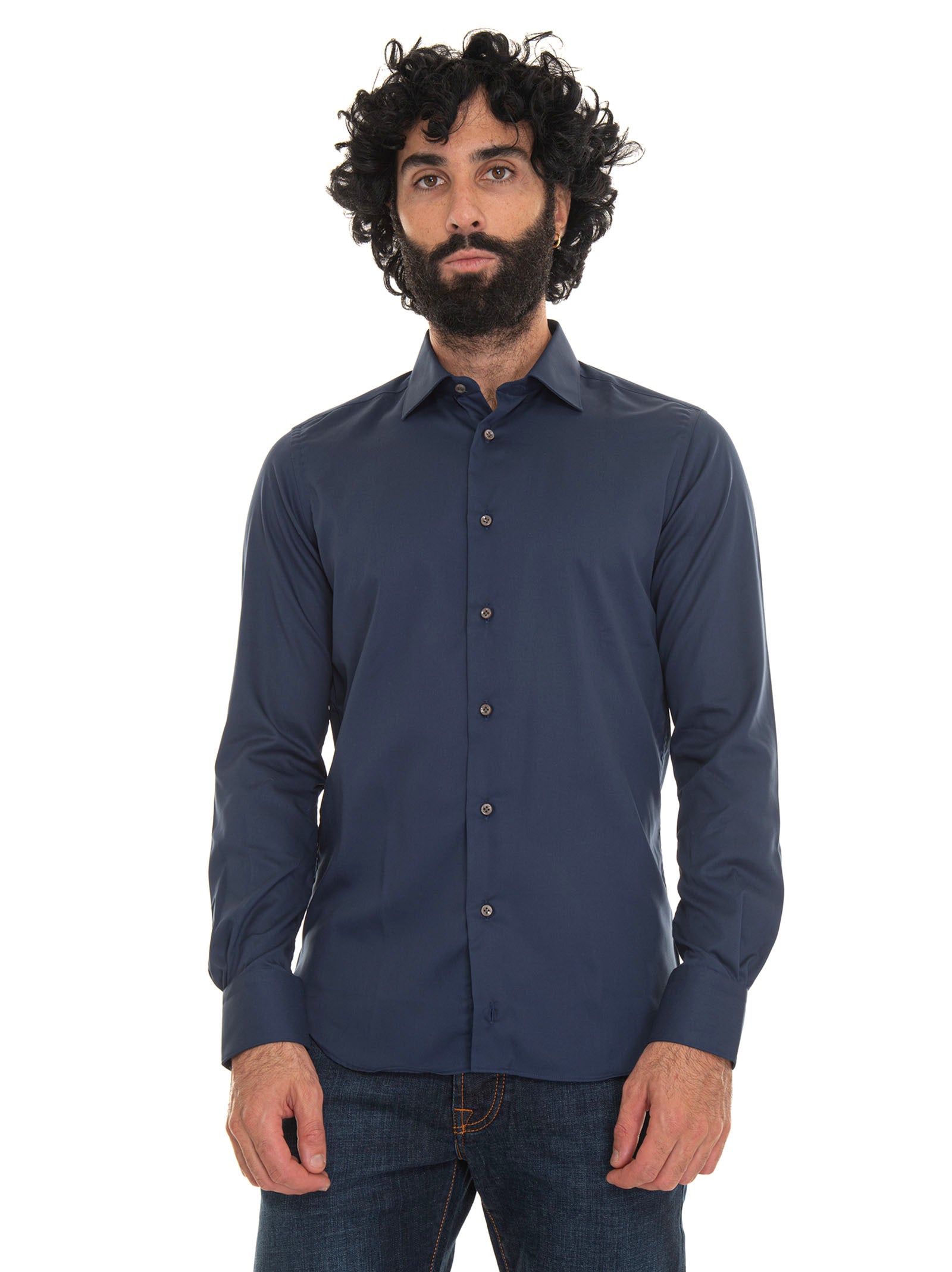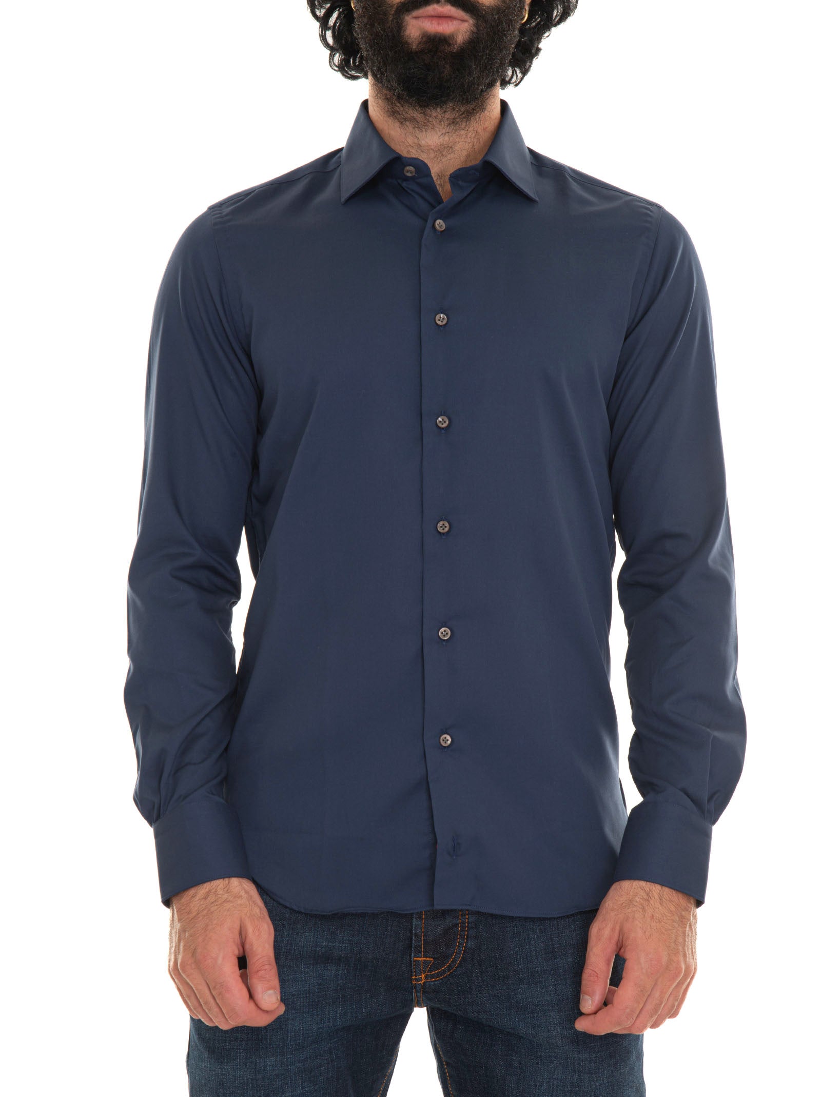Camicia classica da uomo, pochette in abbinato, collo italiano, tinta unita, composizione: 100% cotone, linea: CARREL.