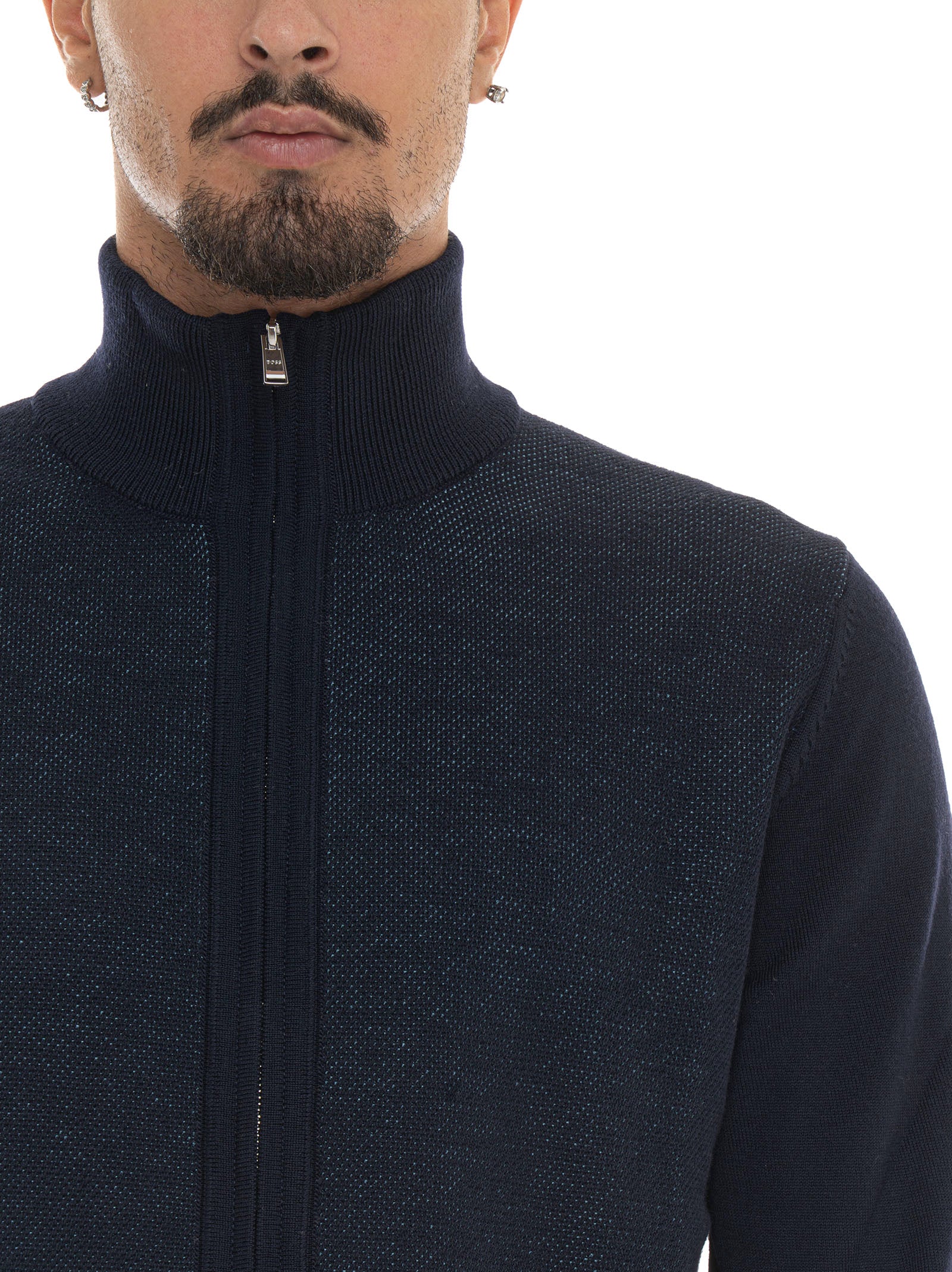 Cardigan zip con doppio cursore H-ILLARIONE Blu BOSS Uomo