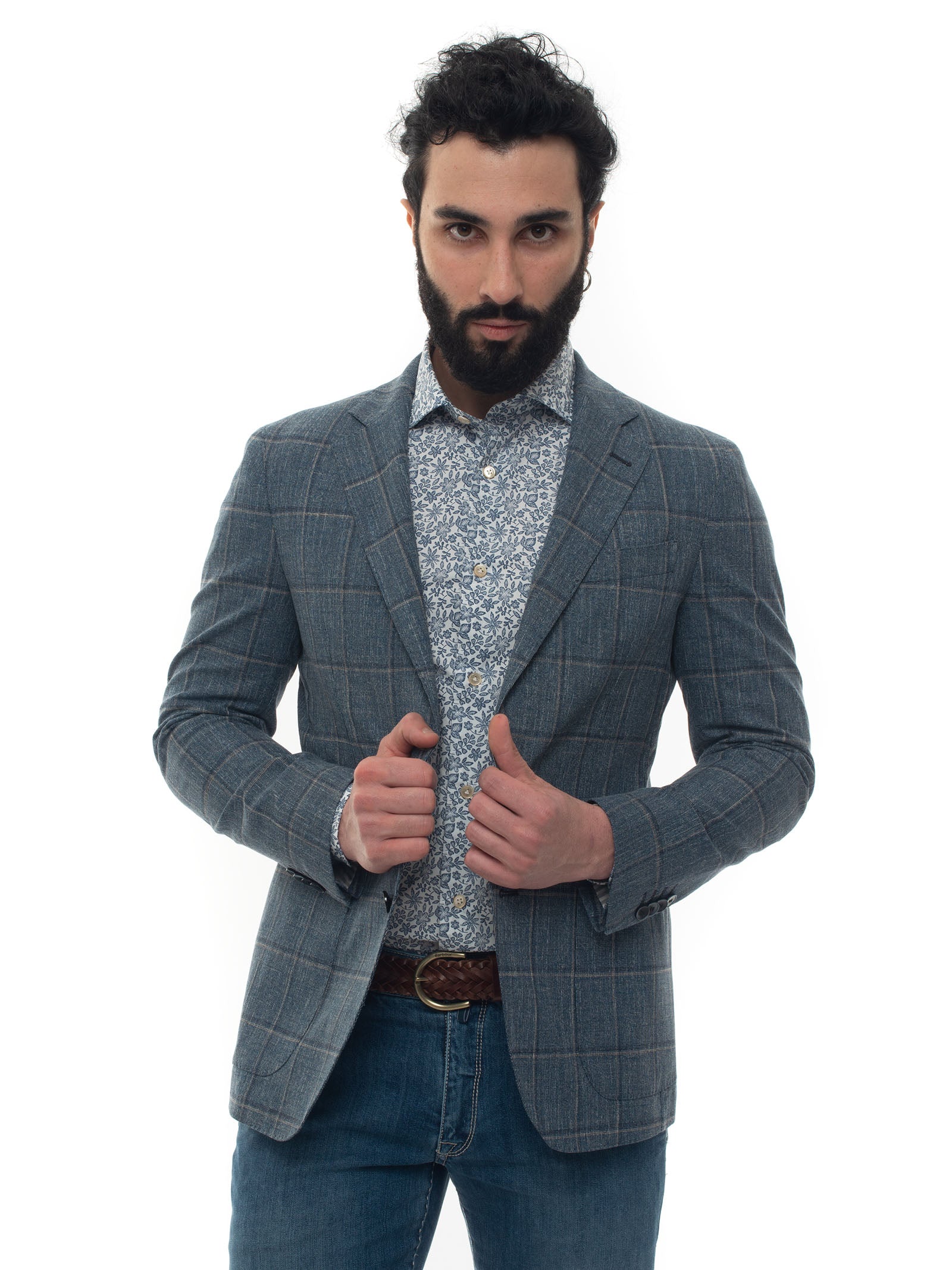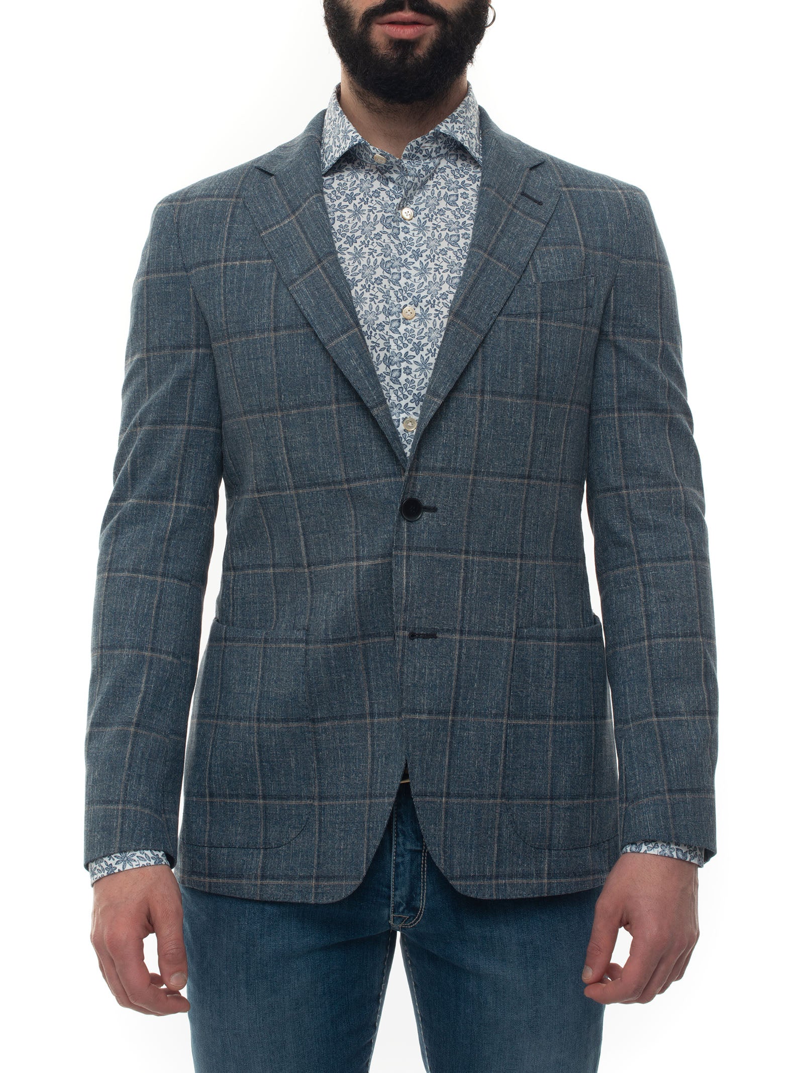 Giacca sfoderata decostruita Luigi Borrelli Nisida, fantasia galles, tasche a toppa, 2 spacchi laterali, lunghezza giacca 72cm (per tg.50), made in italy, vestibilità fitted, composizione: 99% cotone, 1% elastan, interno: 100% cupro, linea: LUIGI BORRELLI.