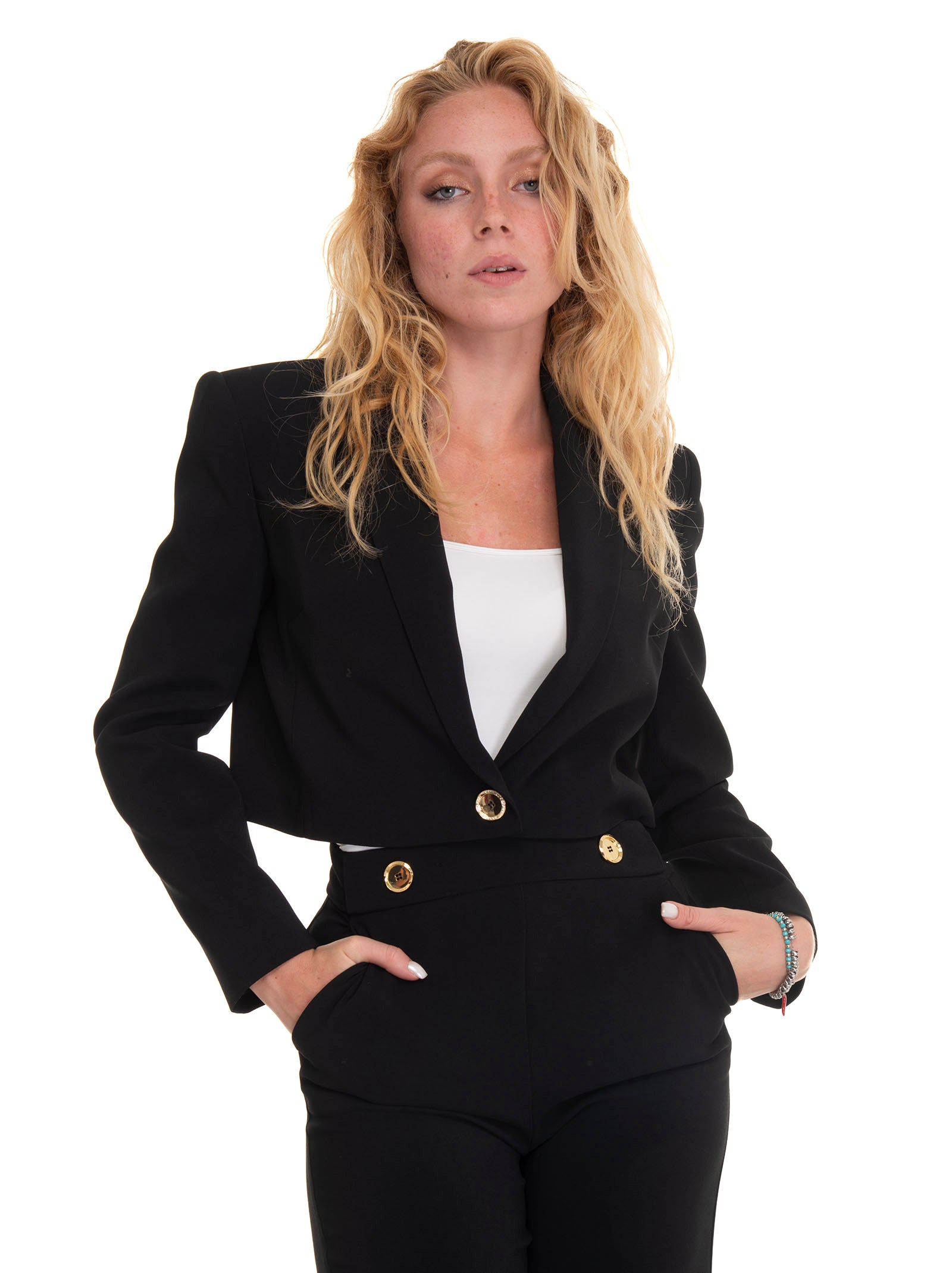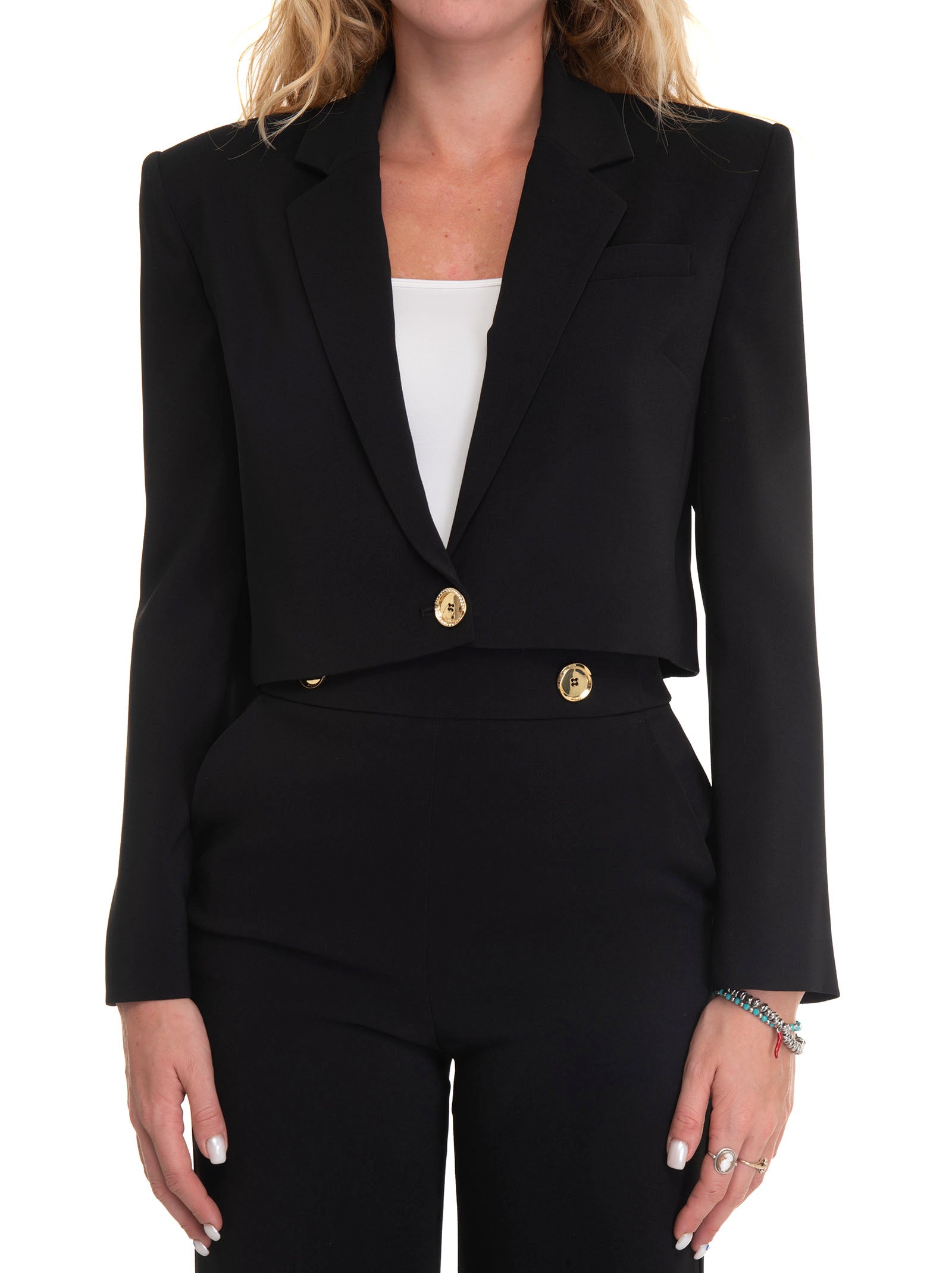 Giacchino in crêpe Pinko Sincrotone, modello corto, bottone gioiello, elasticizzato, foderato, vestibilità regular, composizione: 98% poliestere, 2% lana, interno: 65% acetato, 35% poliestere, linea: PINKO.