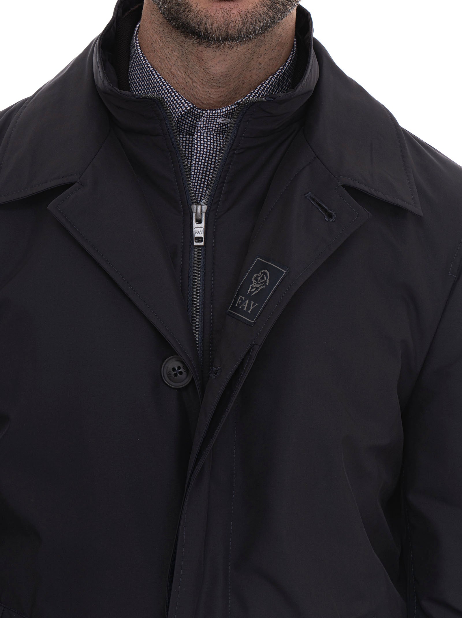 Giaccone in nylon Fay Morning, logo anteriore, chiusura con bottone e zip a scomparsa, tasche laterali, tasca interna, composizione: 100% poliestere, interno: 100% poliammide, linea: FAY.