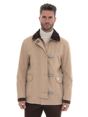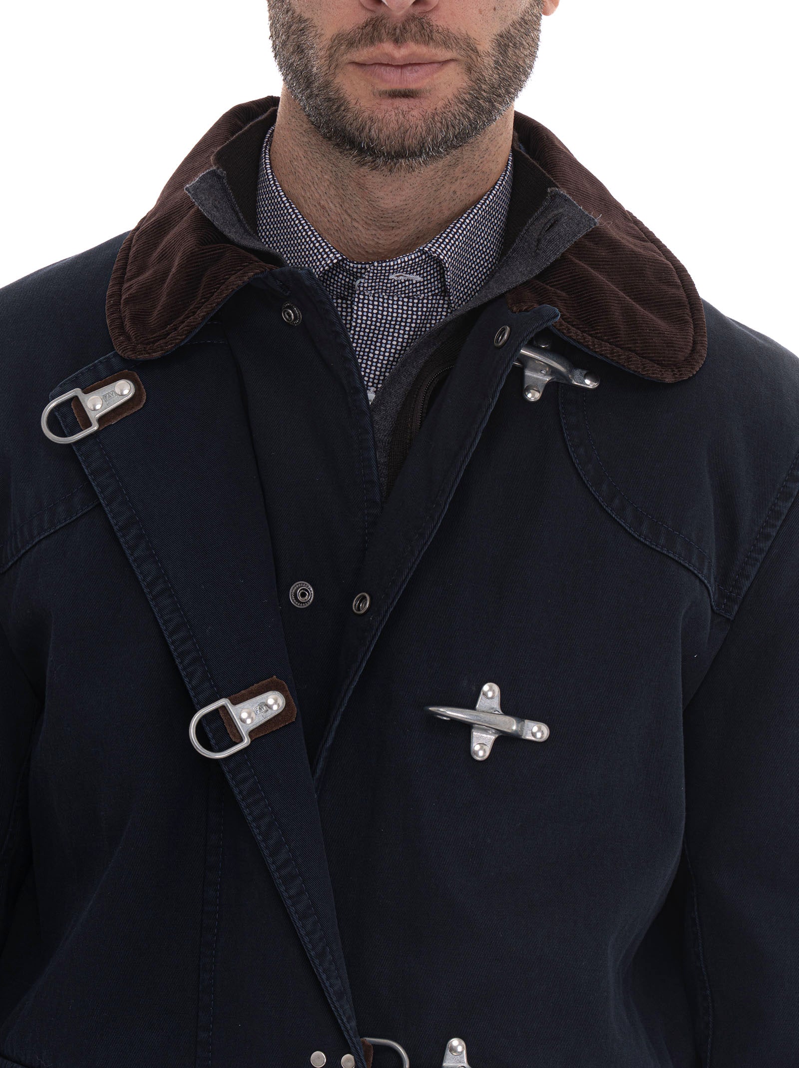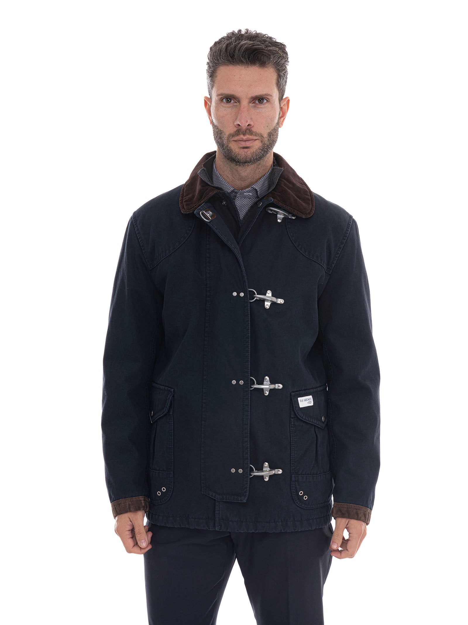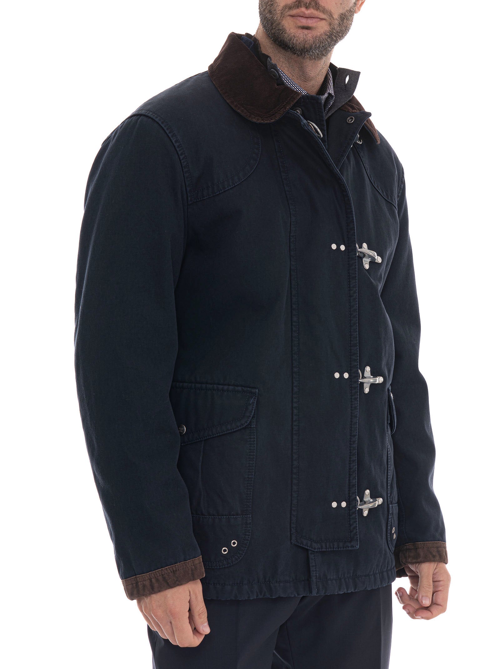 Giubbotto, chiusura con gancio, chiusura con bottoncini logati, collo in velluto, tasche a toppa, logo frontale, profili in pelle, composizione: 100% cotone, interno: 100% poliestere, linea: FAY.