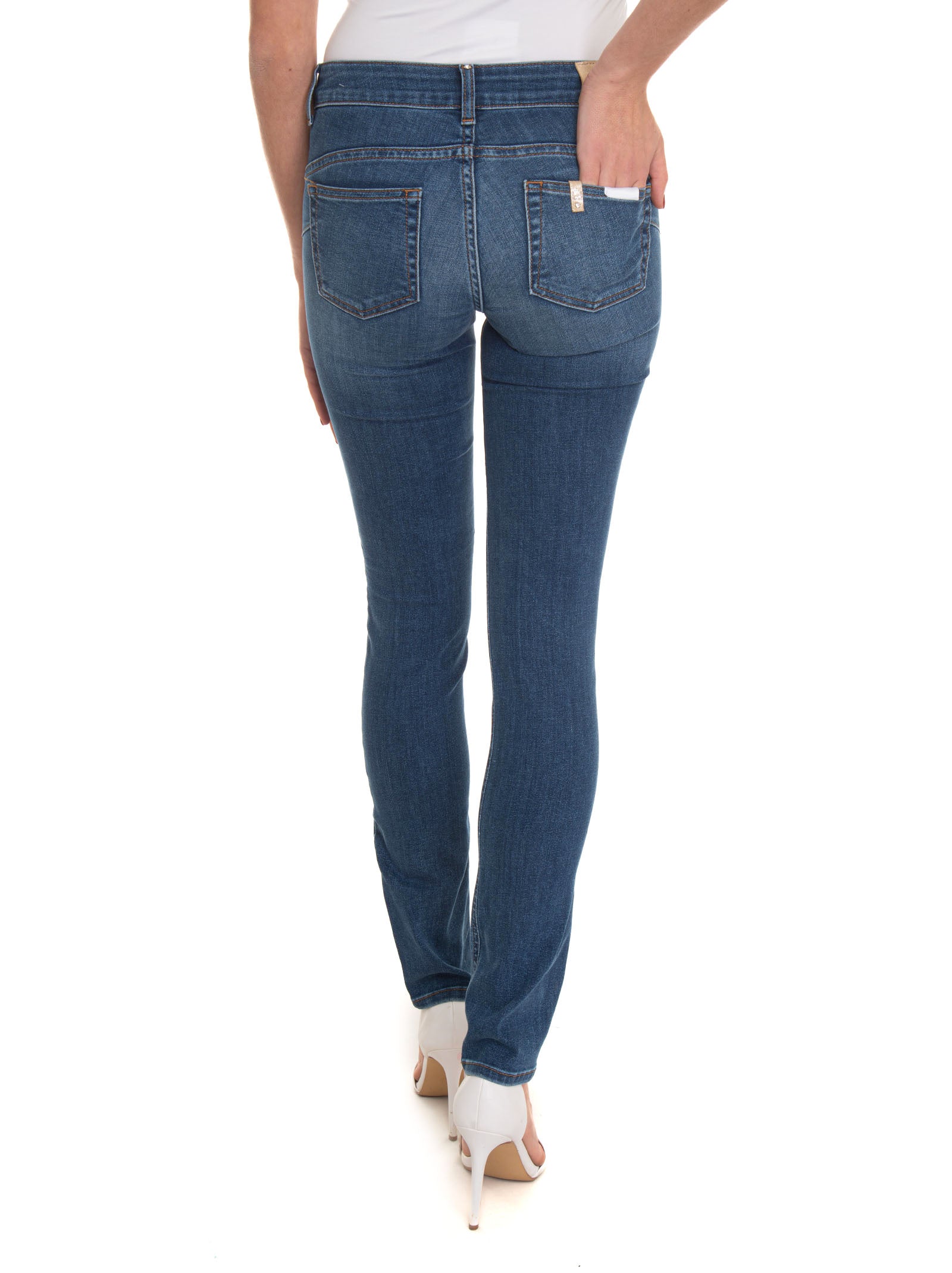 Jeans 5 tasche, vita media, gamba stretta, tecnologia push up, chiusura con bottone e zip a scomparsa, linguetta con logo, composizione: 86% cotone, 12% poliestere, 2% elastan, linea: LIU JO.