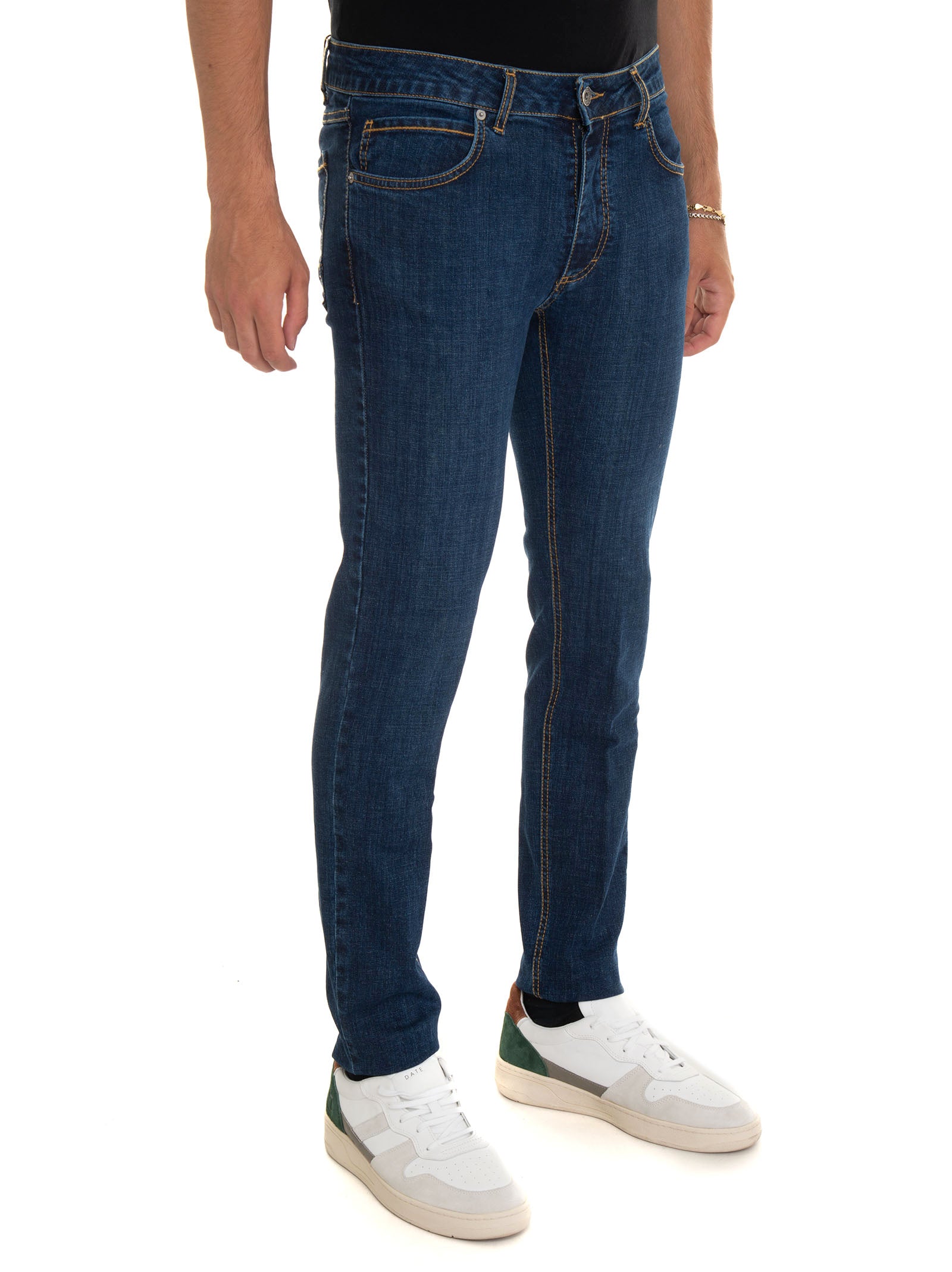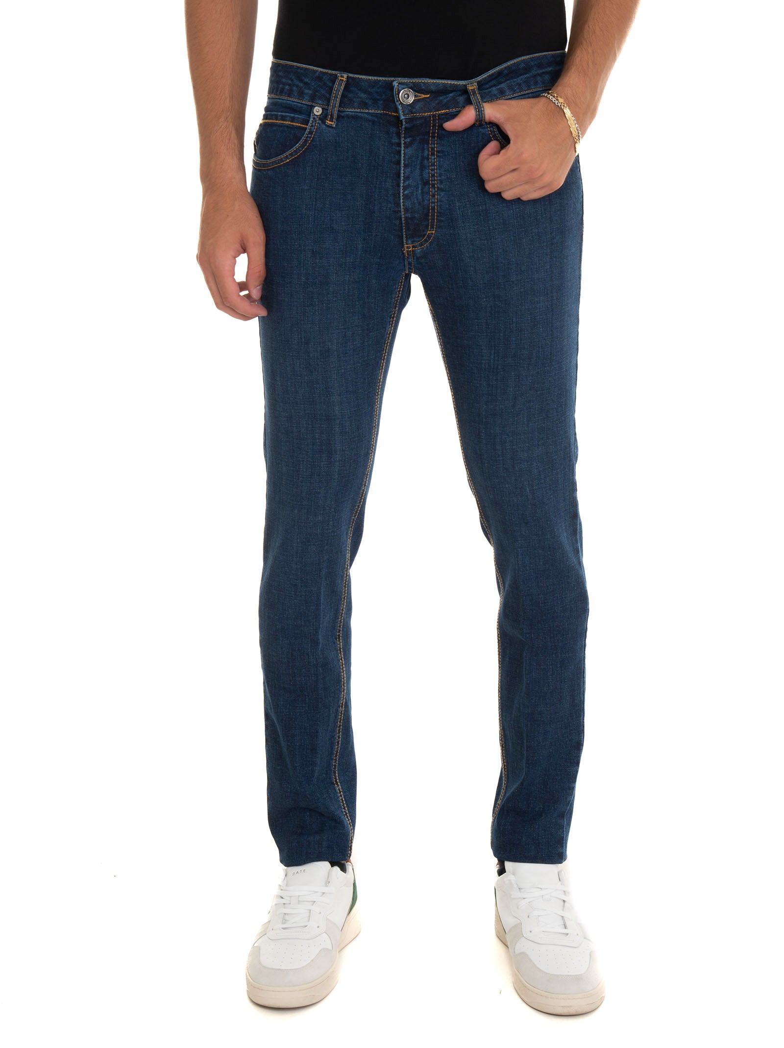 Jeans 5 tasche, impunture a rilievo, fondo 17 cm, tessuto stretch, vestibilità slim, composizione: 98% cotone, 2% elastan, linea: QUALITY FIRST.