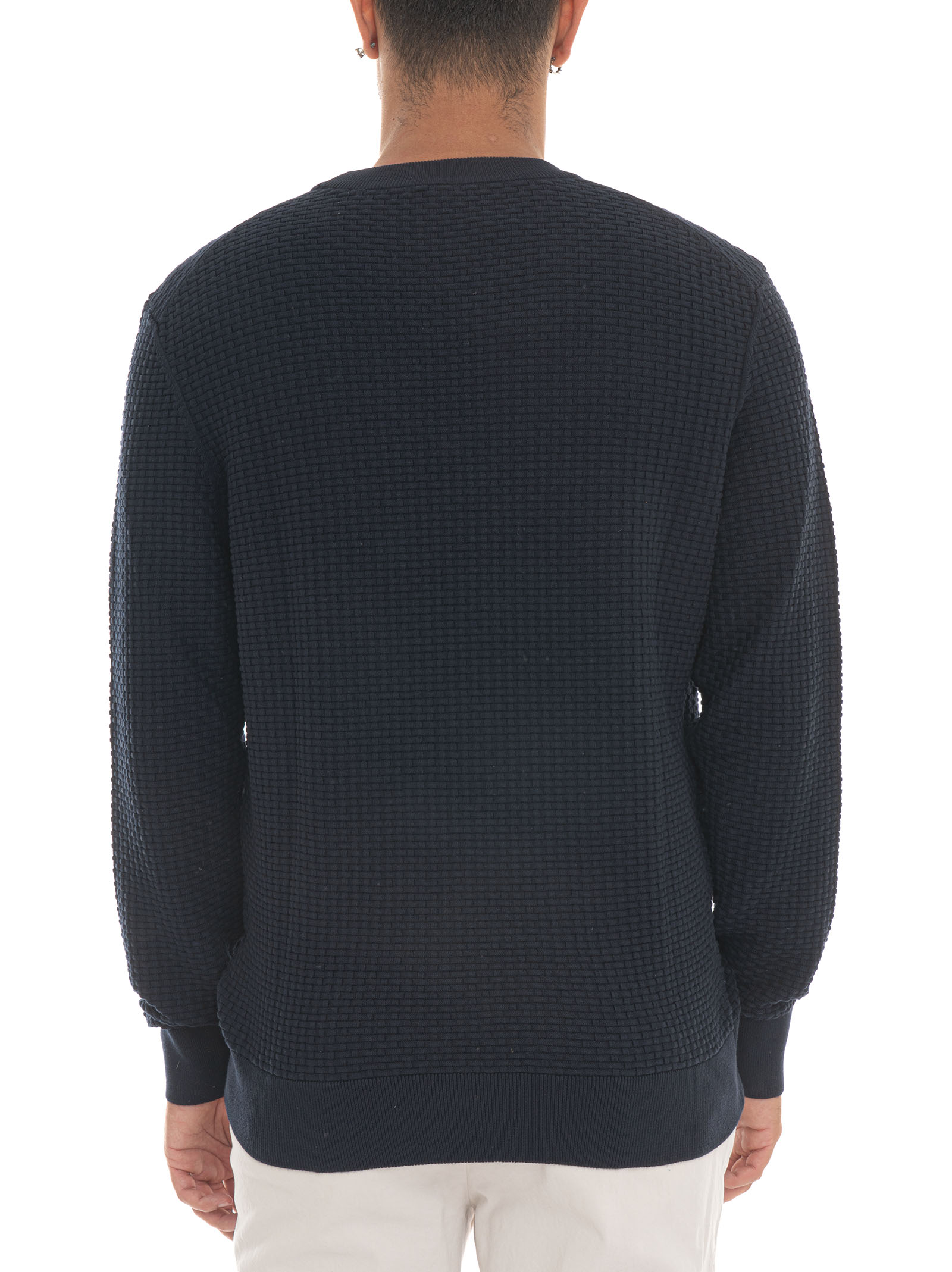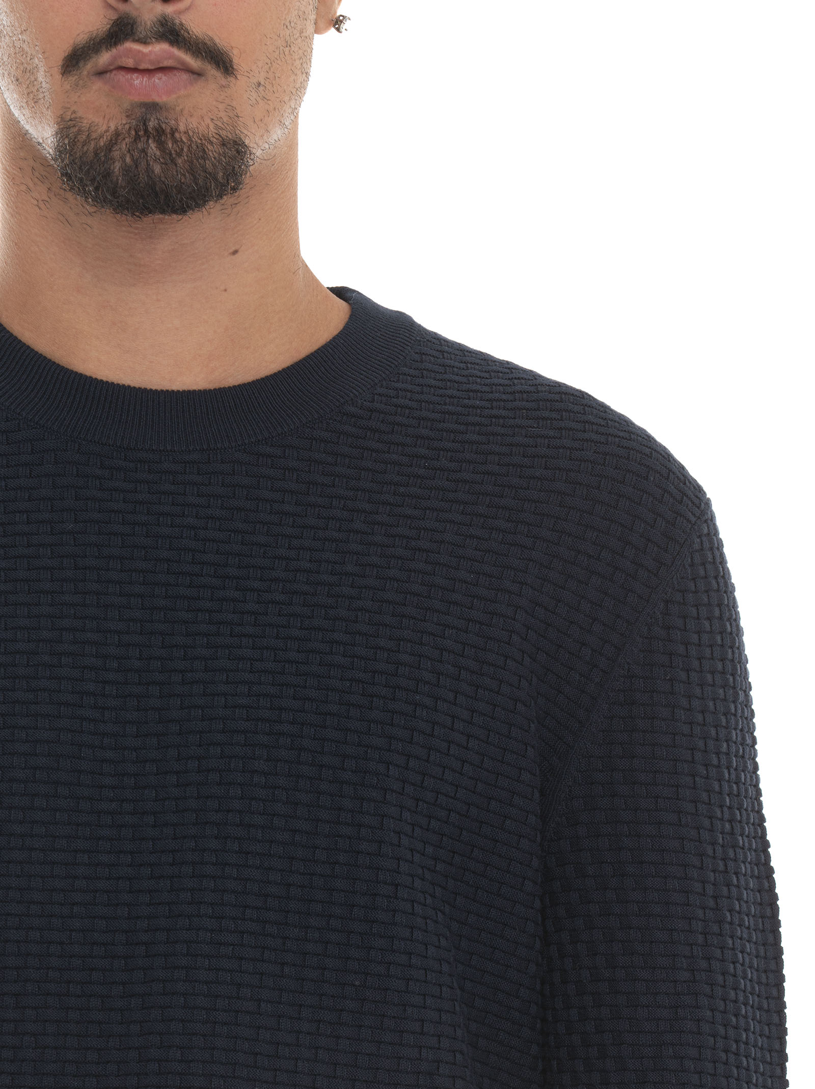Maglia girocollo BOSS H-IMBERTO, lavorazione a intarsi, linguetta con logo, tinta unita, composizione: 100% cotone, linea: BOSS.