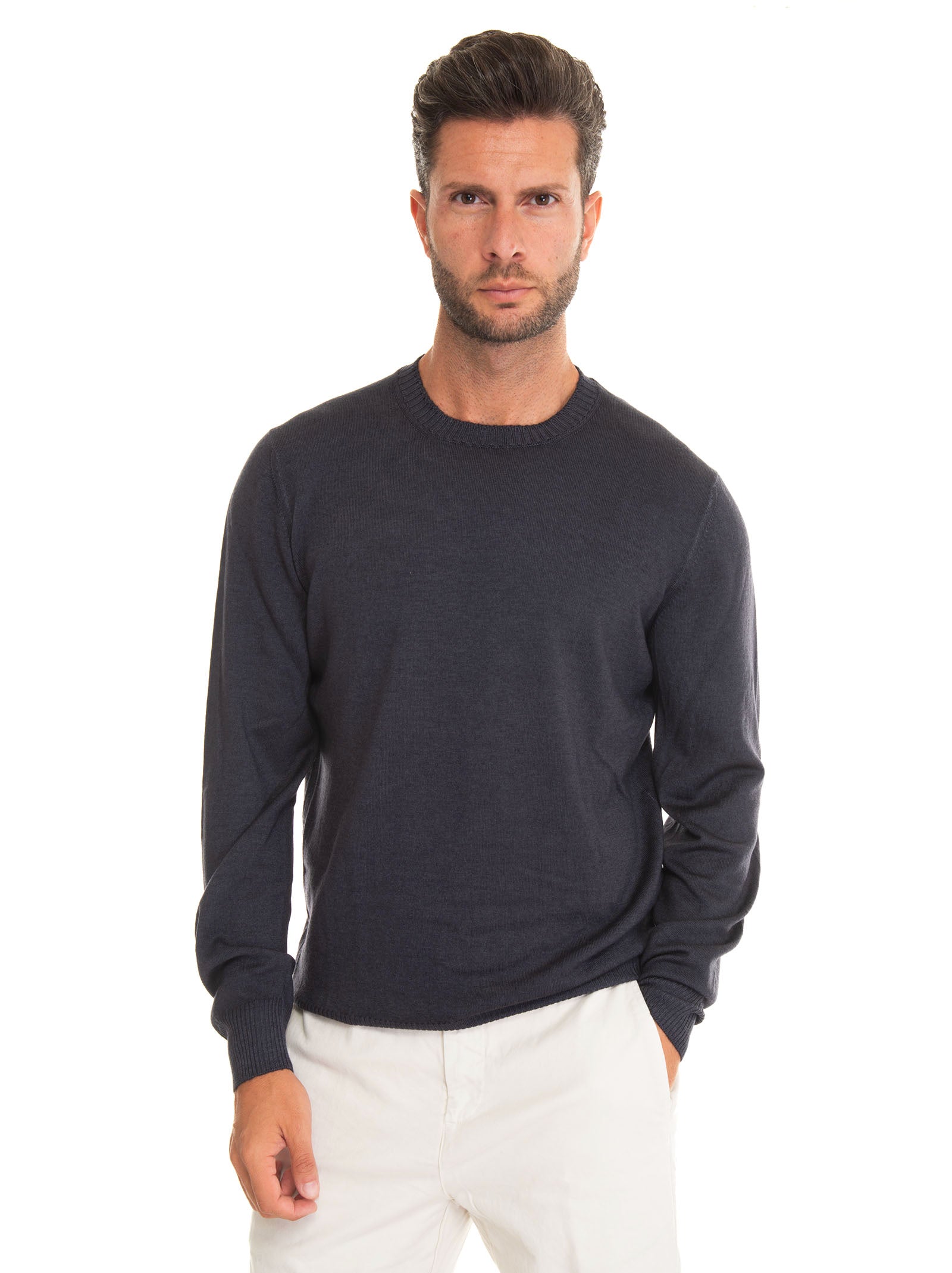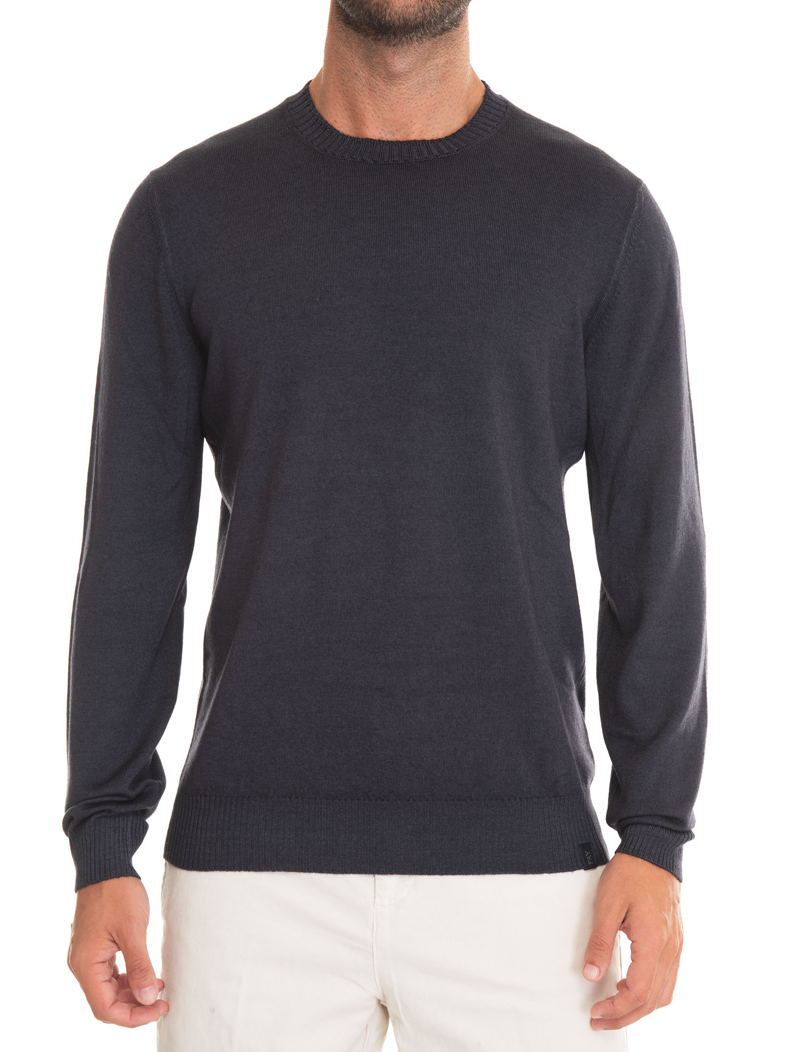 Maglia girocollo, stone washed, linguetta con logo, vestibilità slim, composizione: 100% lana vergine, linea: FAY.