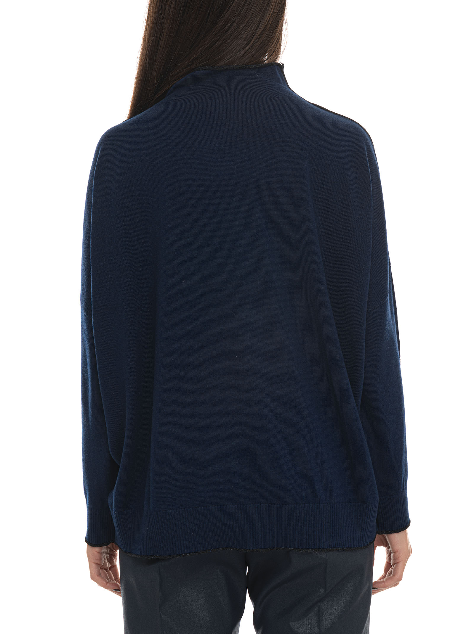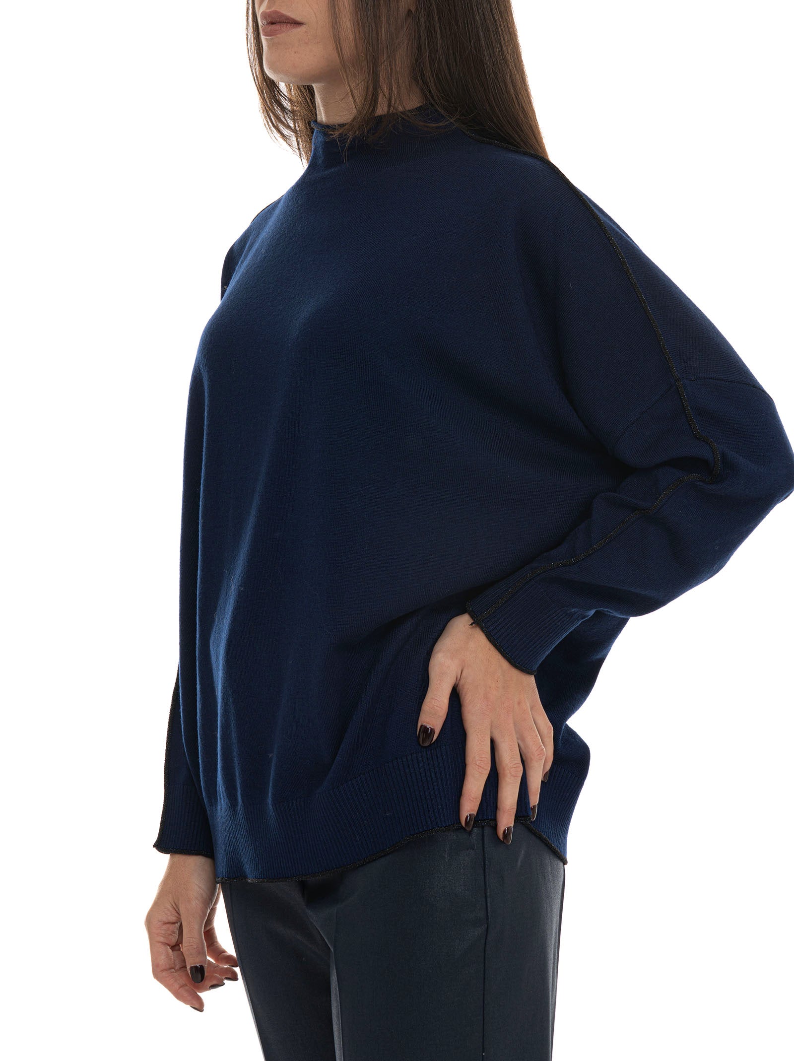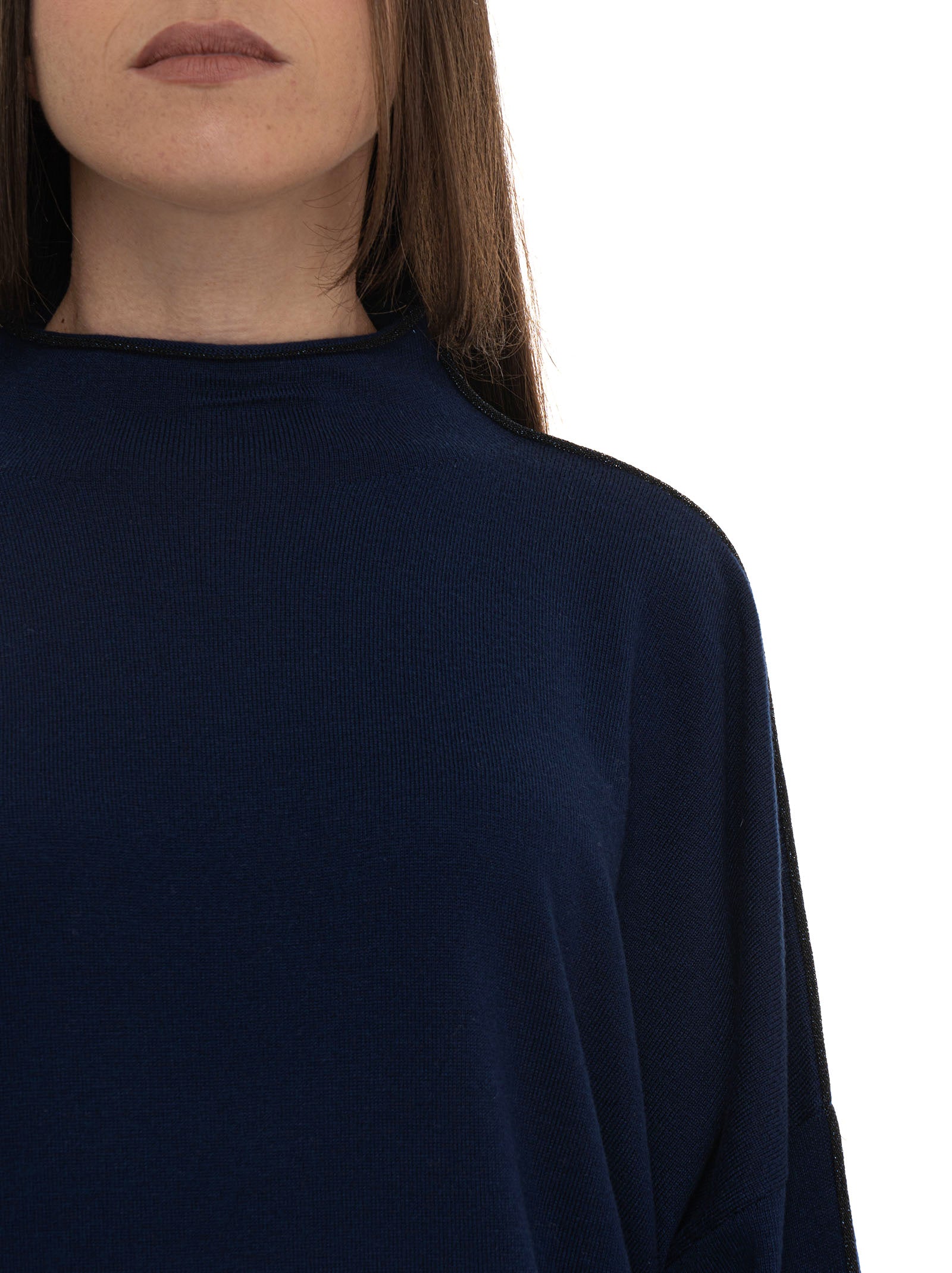 Maglia modello pipistrello, collo a corolla, dettagli in lurex, cucitura a cordoncino, modello ampio, composizione: 8% lana, 40% nylon, 50% acrilico, 2% metallizzato, linea: QUALITY FIRST.