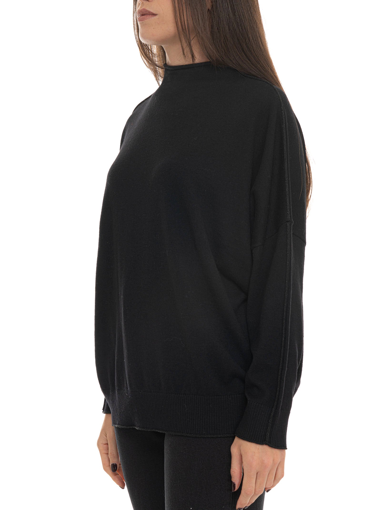 Maglia modello pipistrello, collo a corolla, dettagli in lurex, cucitura a cordoncino, modello ampio, composizione: 8% lana, 40% nylon, 50% acrilico, 2% metallizzato, linea: QUALITY FIRST.