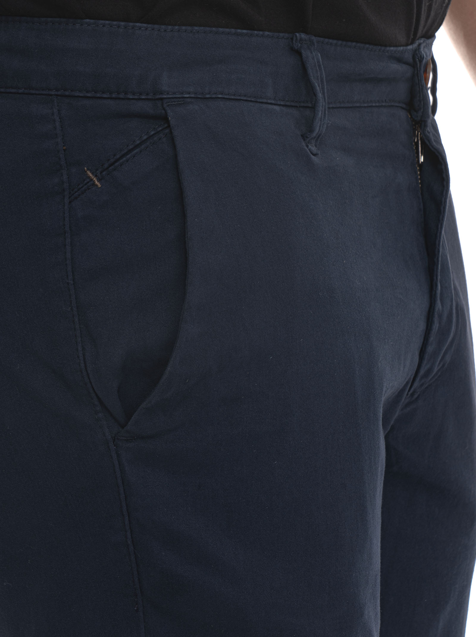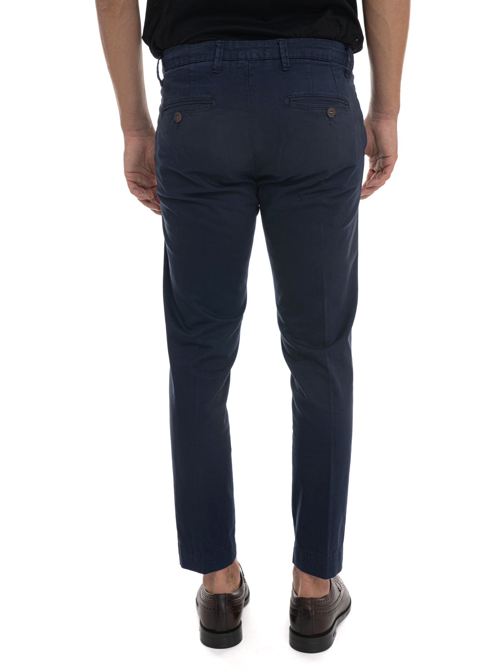 Pantalone modello chino, chiusura con bottone e zip a scomparsa, due tasche sul retro, fondo 15 cm, composizione: 98% cotone, 2% elastan, linea: QUALITY FIRST.
