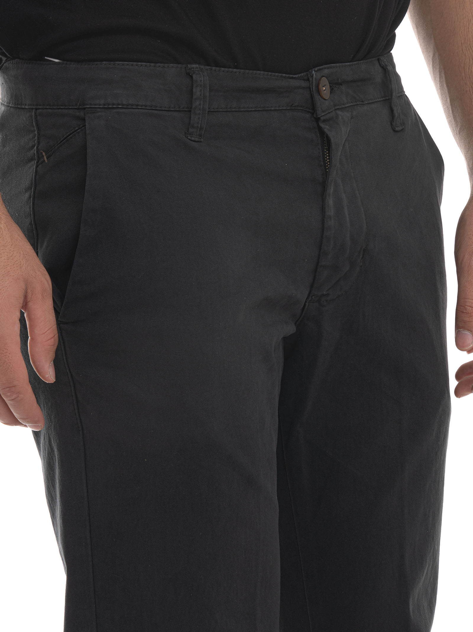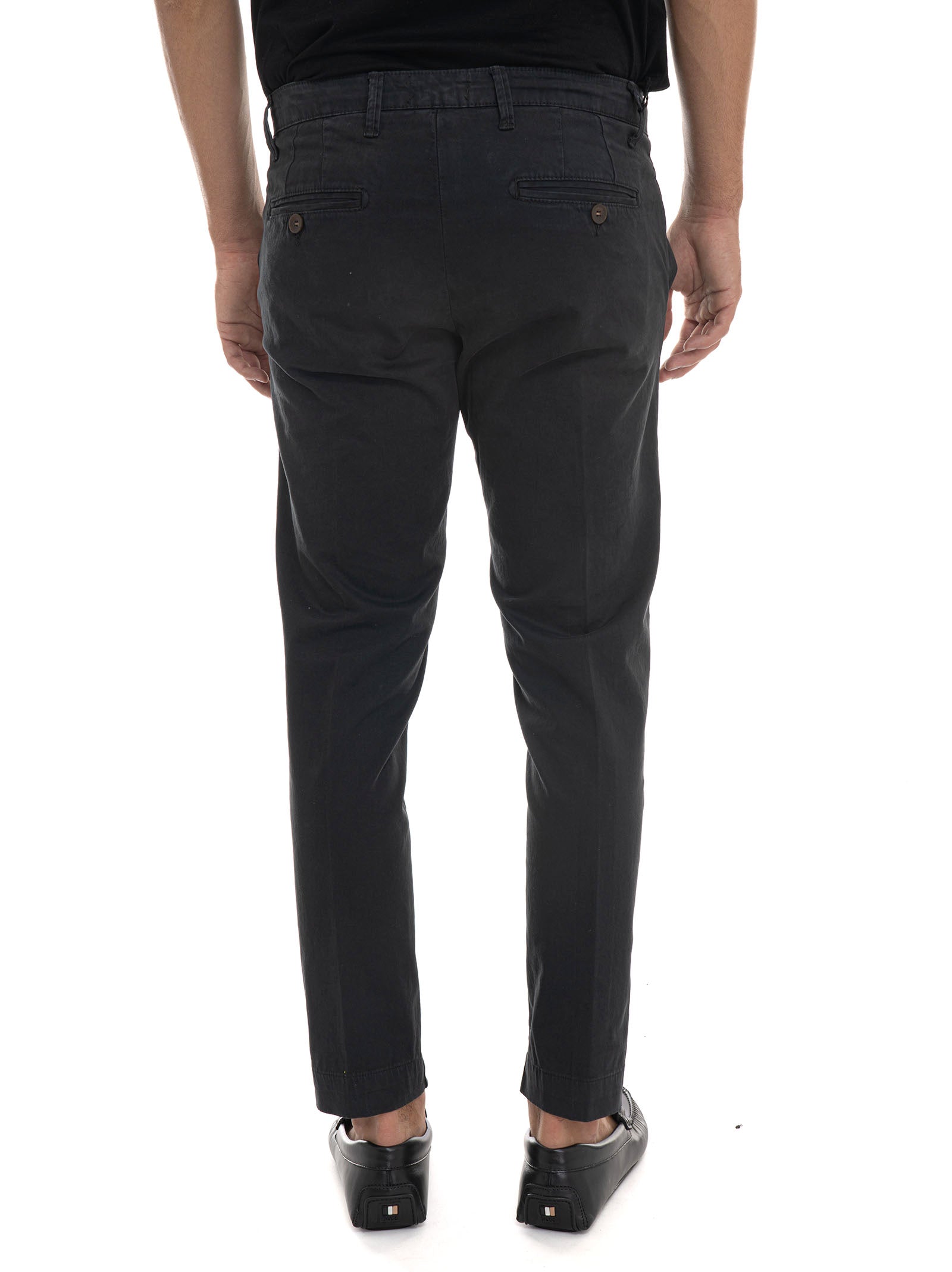 Pantalone modello chino, chiusura con bottone e zip a scomparsa, due tasche sul retro, fondo 15 cm, composizione: 98% cotone, 2% elastan, linea: QUALITY FIRST.