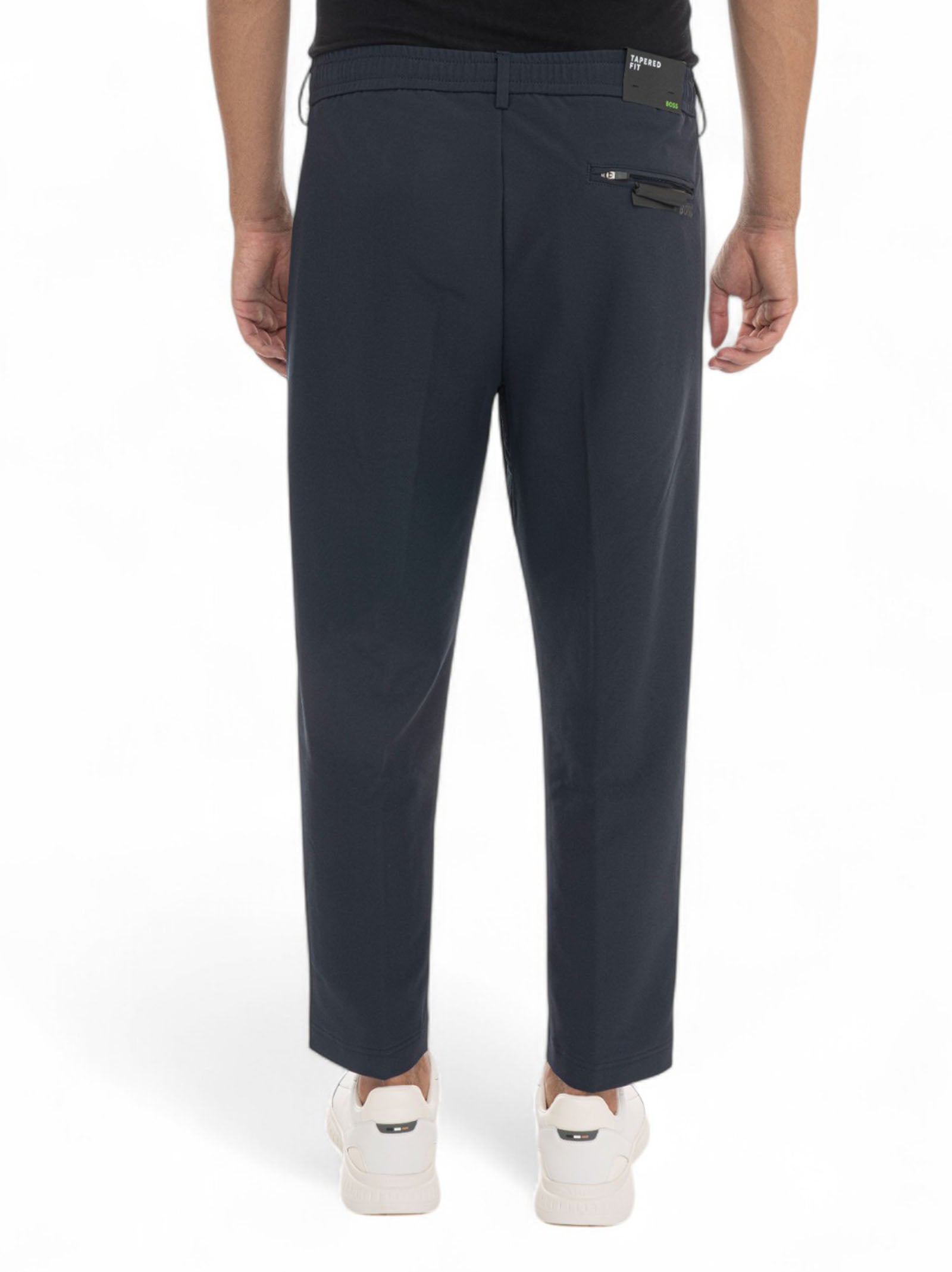 Pantalone modello chino BOSS T-CONVERT-PLEAT, molla e laccio in vita, tessuto tecnico, tessuto stretch, tasca posteriore con chiusura zip, linguetta con logo, composizione: 95% poliestere, 5% elastan, linea: BOSS.