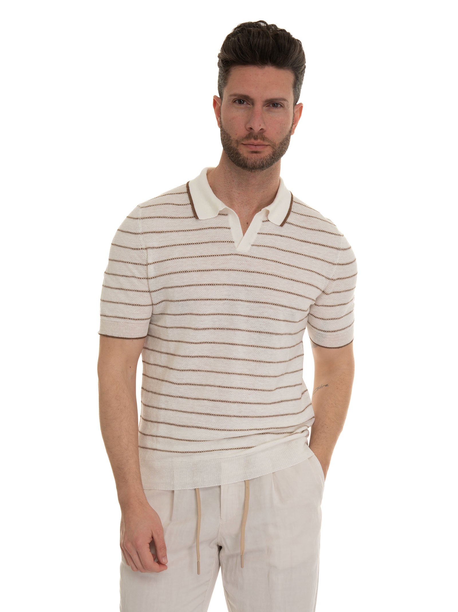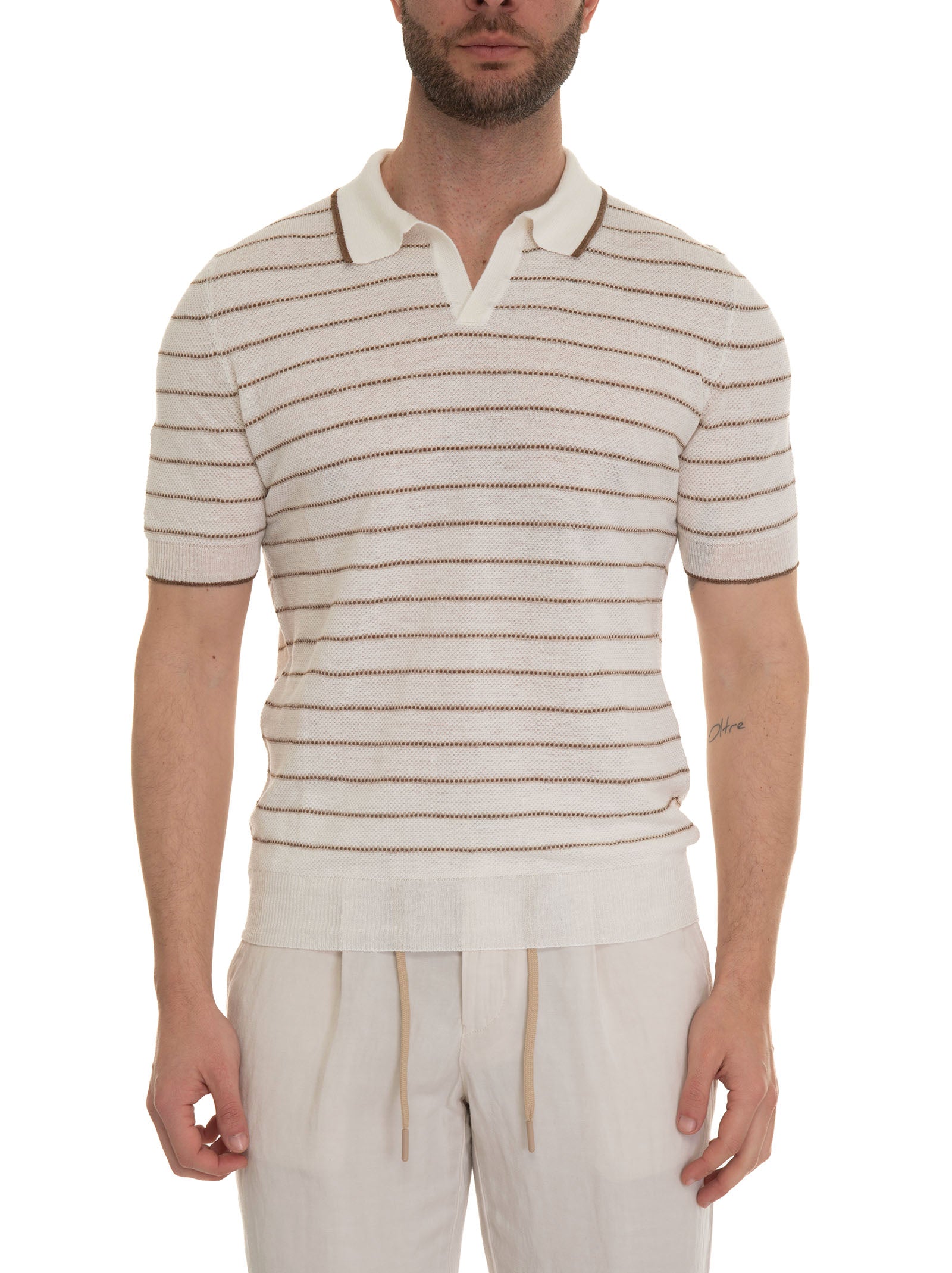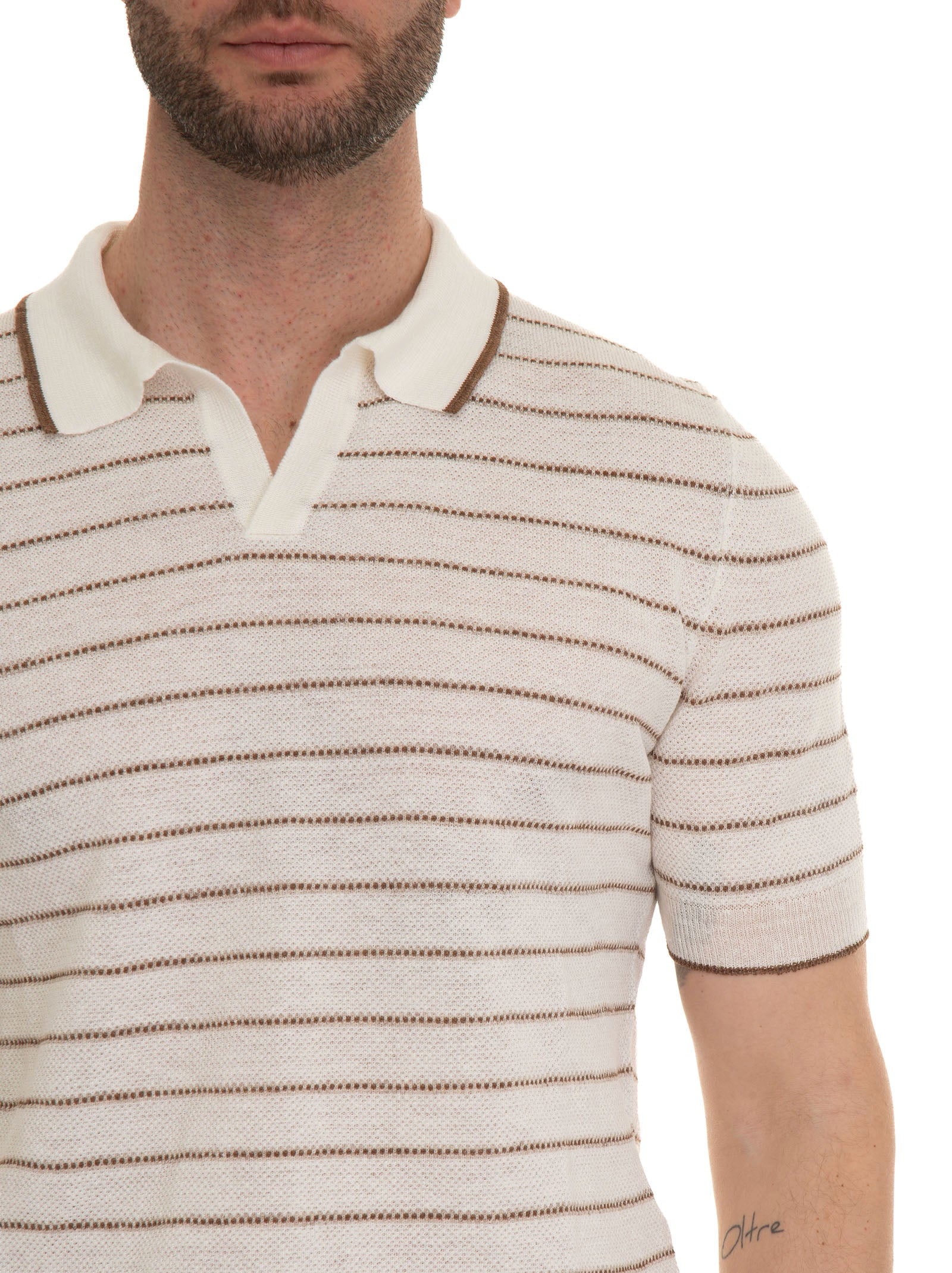 Polo in maglina, fantasia rigata, molla al fondo, vestibilità regular, composizione: 100% lino, linea: GRAN SASSO.