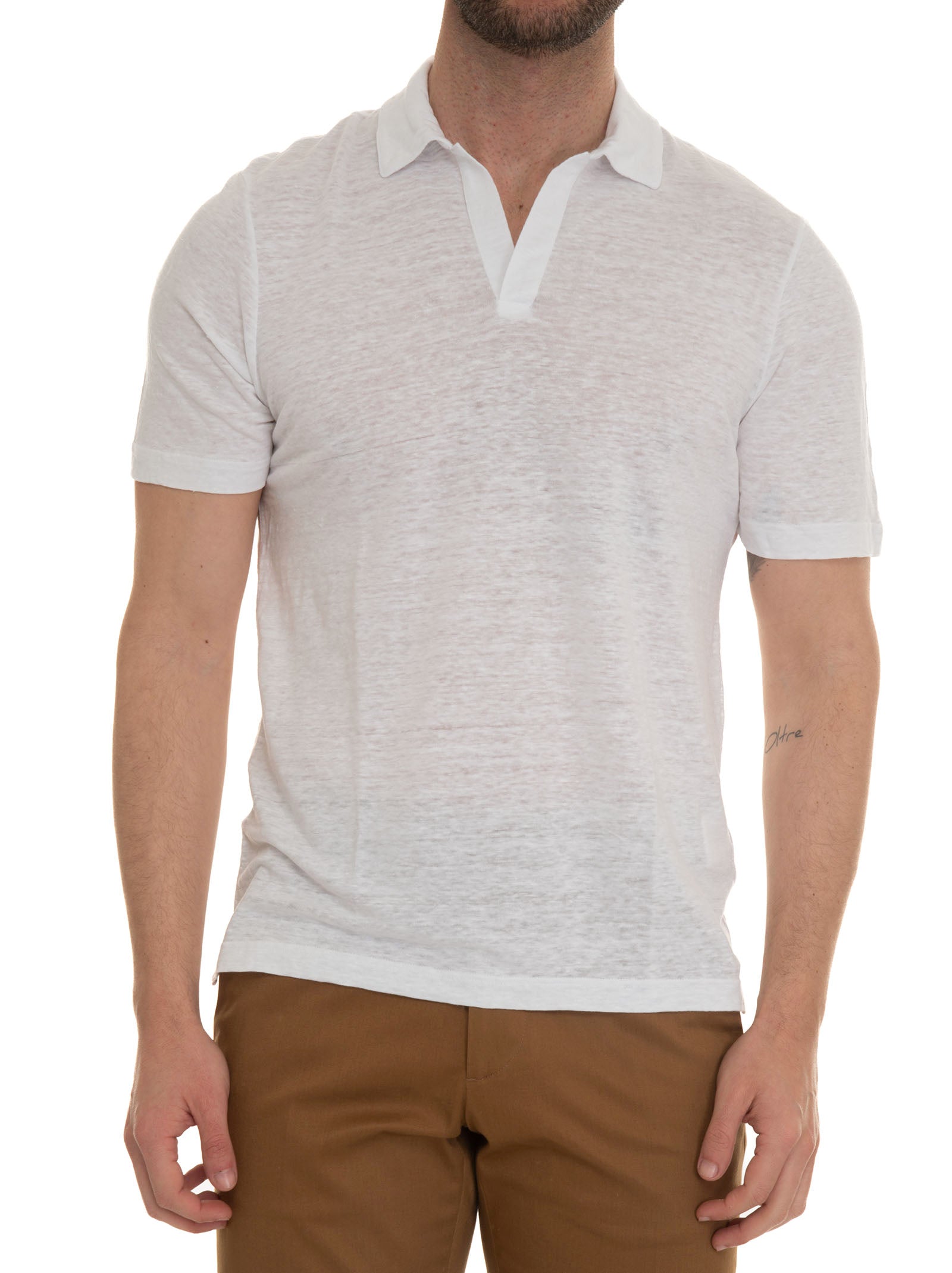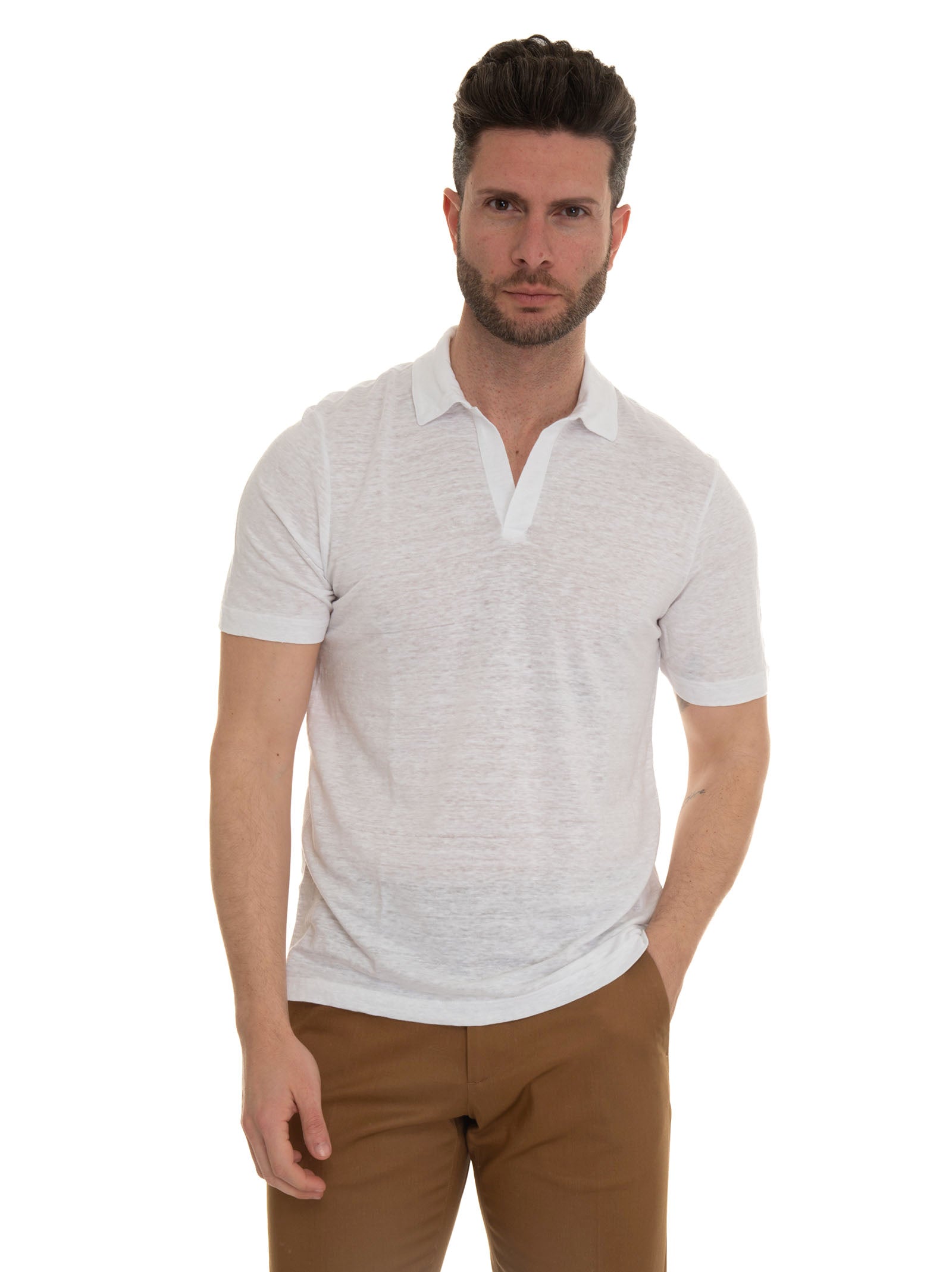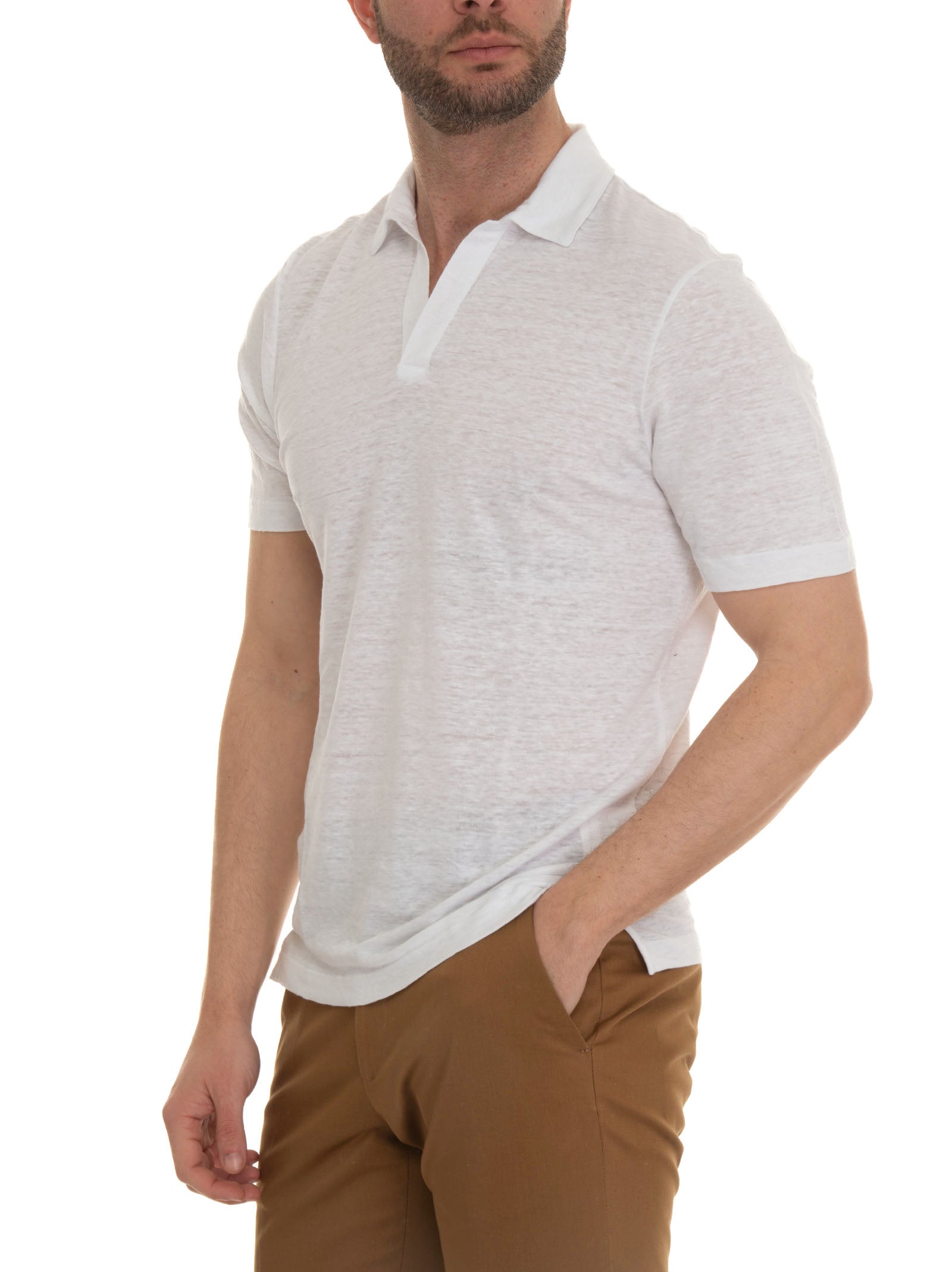 Polo manica corta, spacchetti laterali, effetto fiammato, vestibilità regular, composizione: 100% lino, linea: GRAN SASSO.