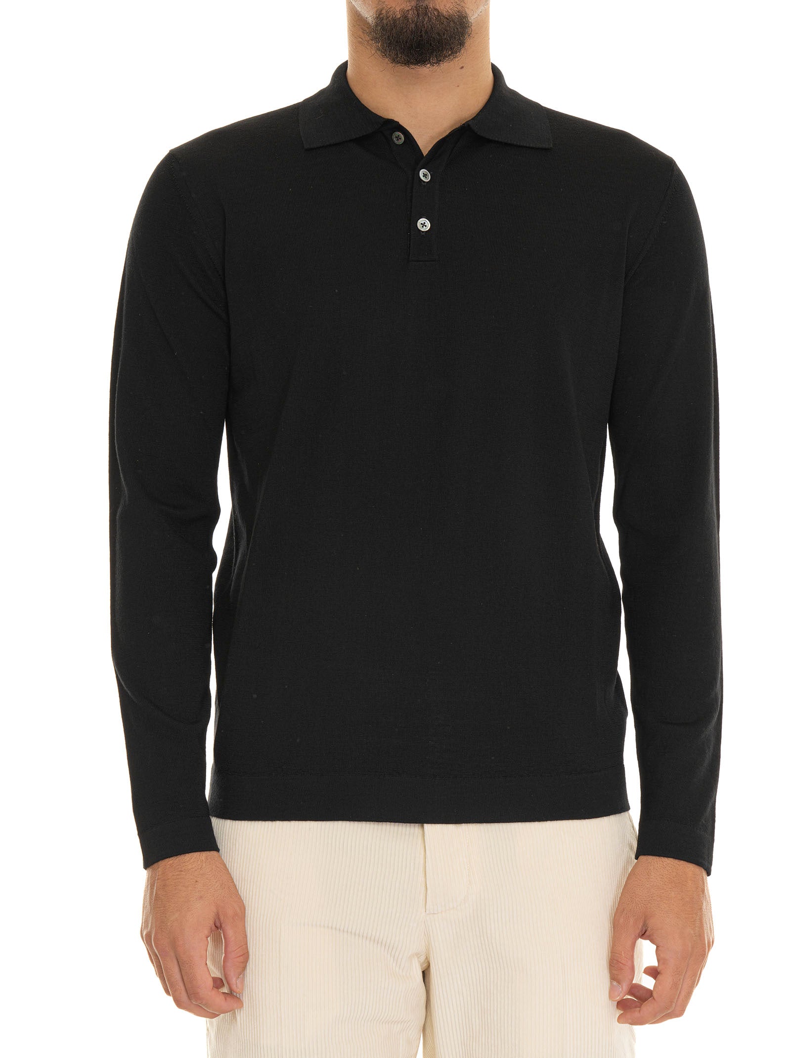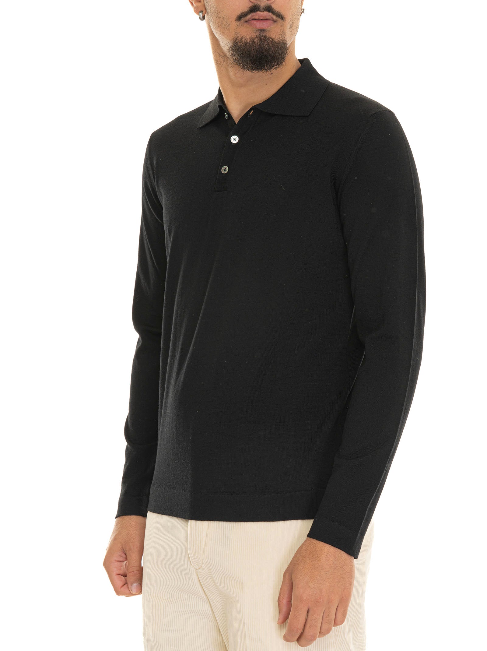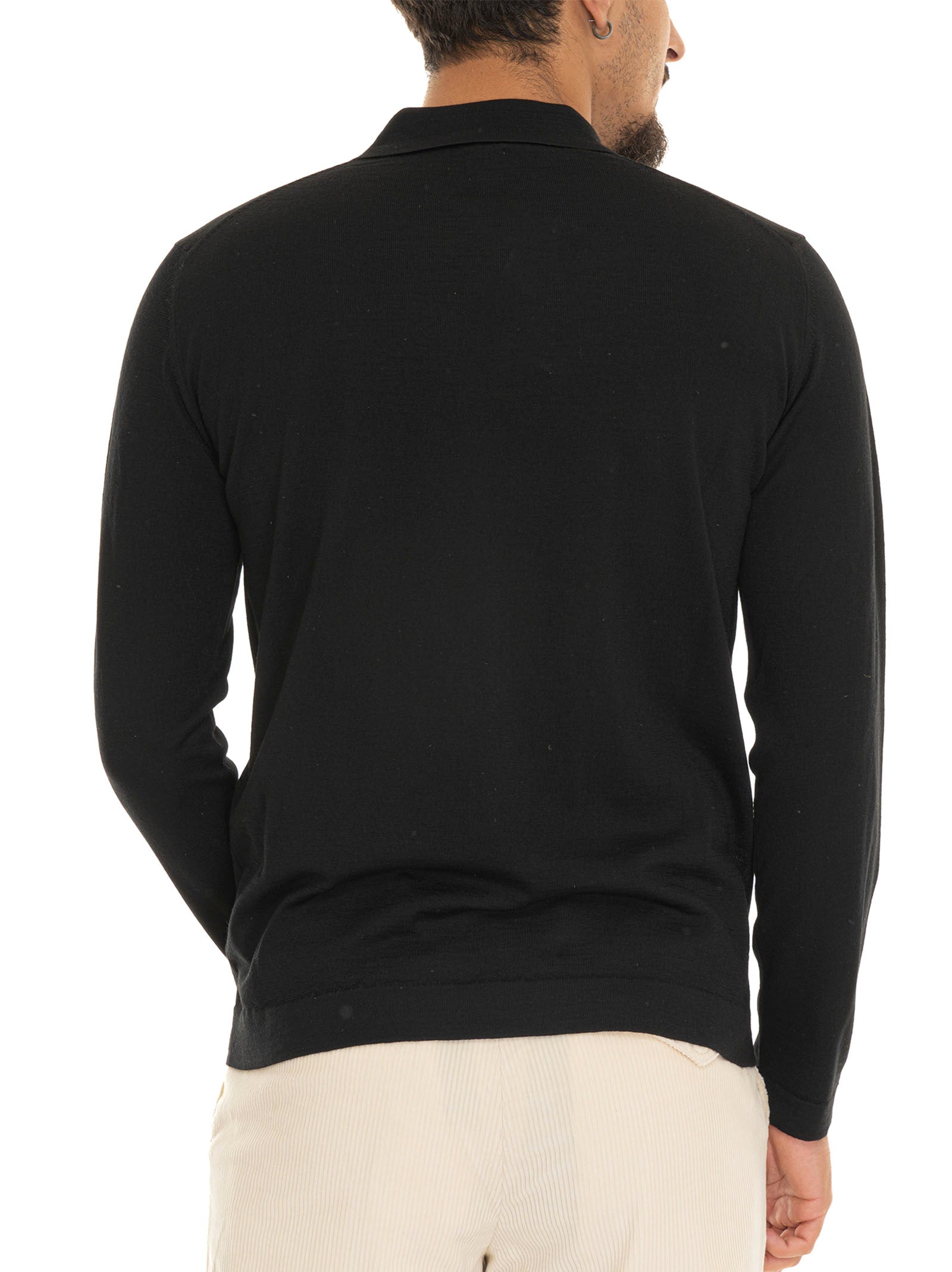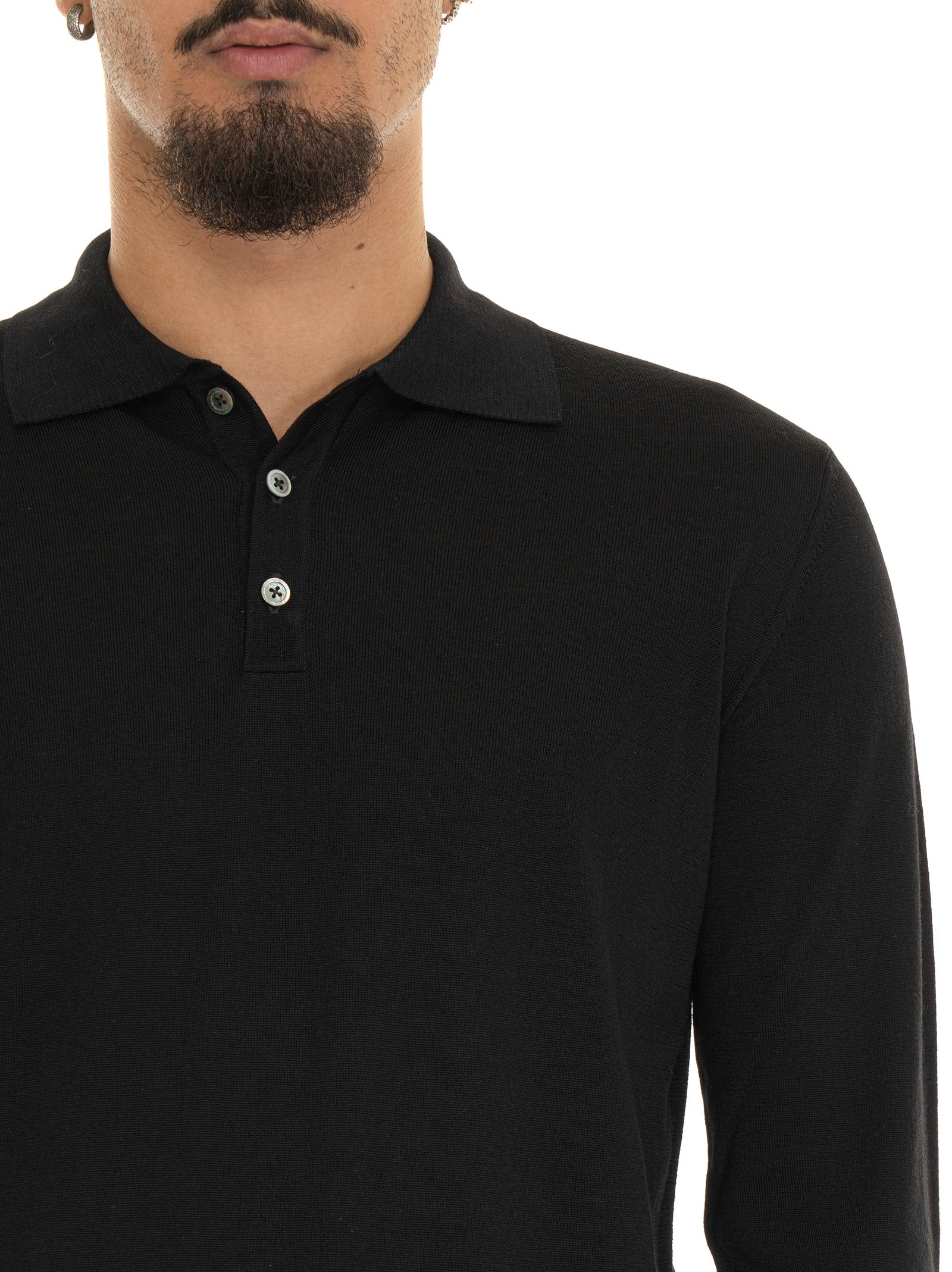 Polo manica lunga, tinta unita, bottoni in madreperla, lana merino super fine, trattamento irrestringibile, composizione: 100% lana merino, linea: HINDUSTRIE.