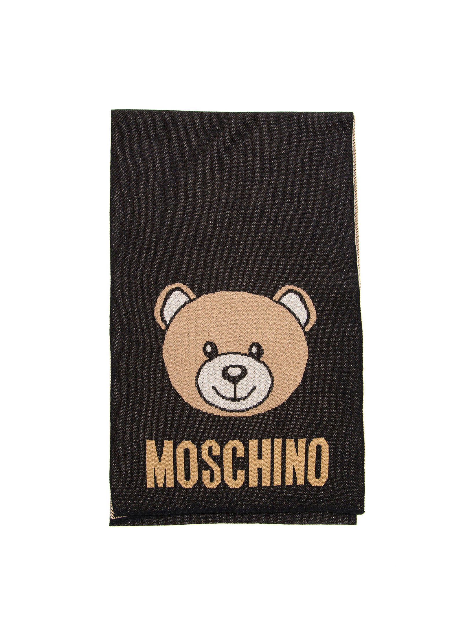 Sciarpa, maxi logo, dettagli in lurex, composizione: 80% viscosa, 11% poliammide, 9% poliestere, linea: MOSCHINO.