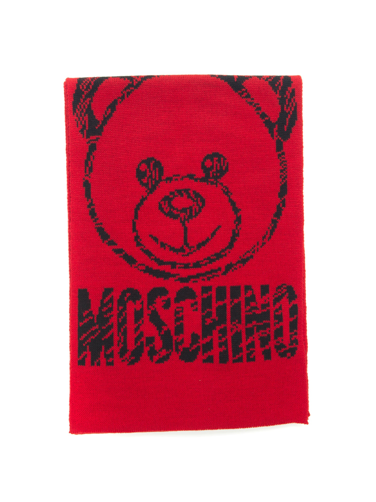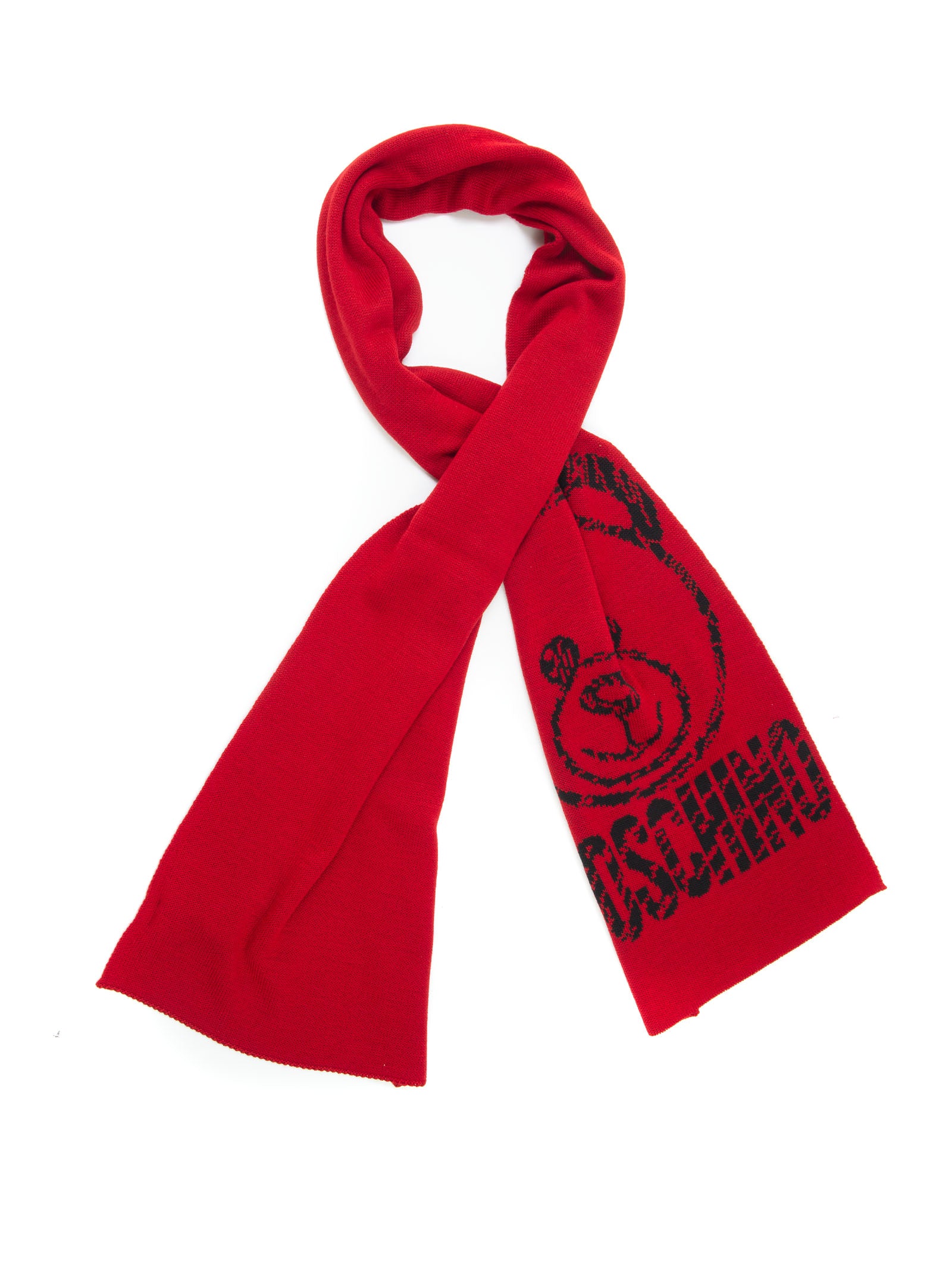 Sciarpa, maxi logo, stampa orsetto, tinta unita, composizione: 50% lana, 50% acrilico, linea: MOSCHINO.