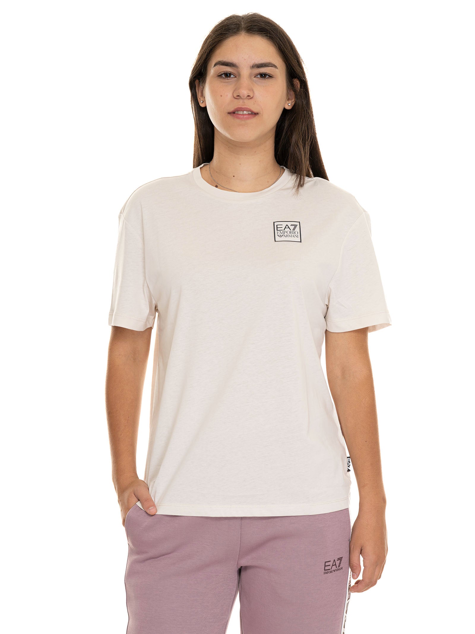 T-shirt, manica corta, girocollo, logo piccolo frontale, composizione: 100% cotone, linea: EA7.
