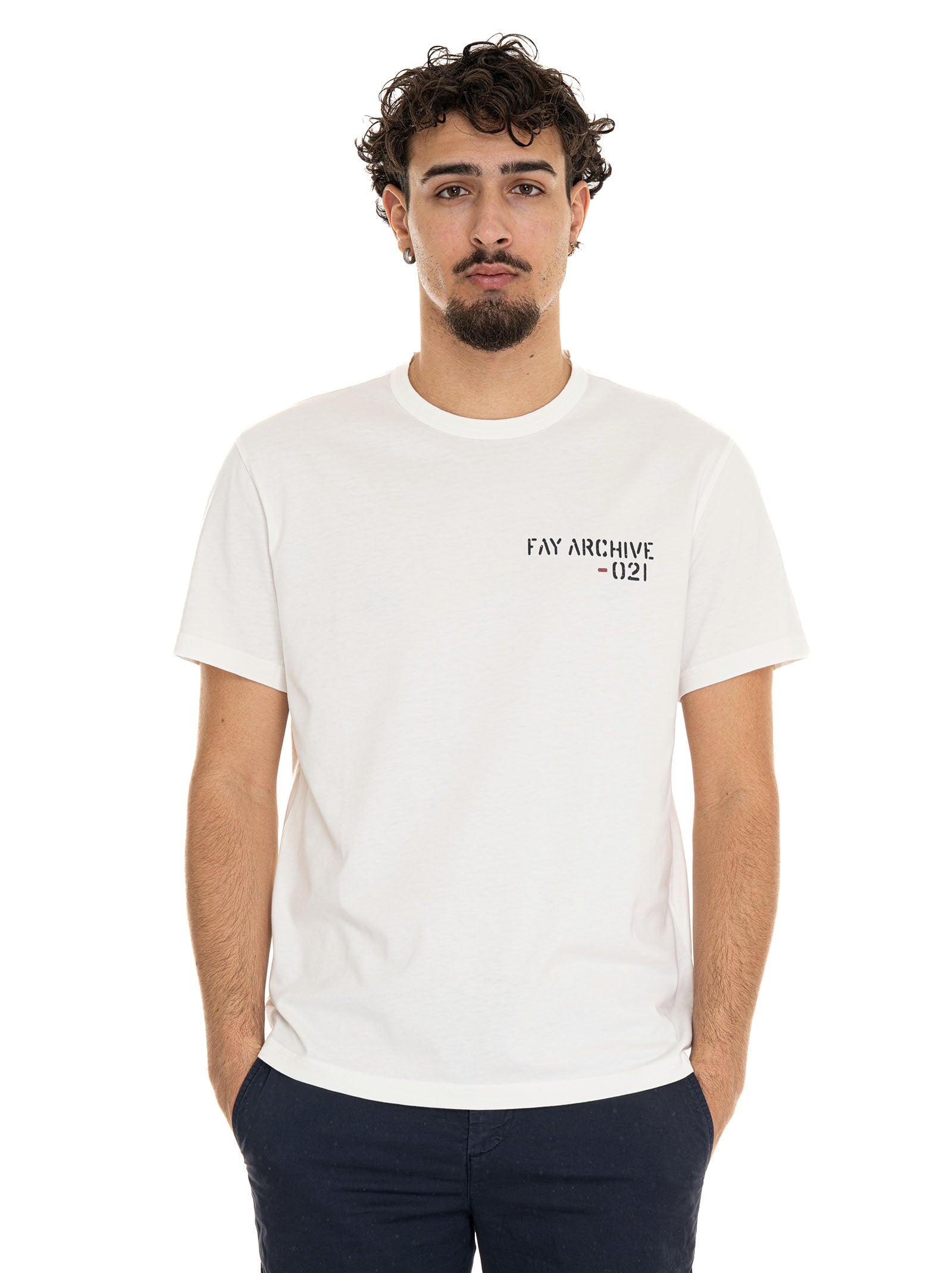 T-shirt girocollo mezza manica, logo sul petto, composizione: 100% cotone, linea: FAY.