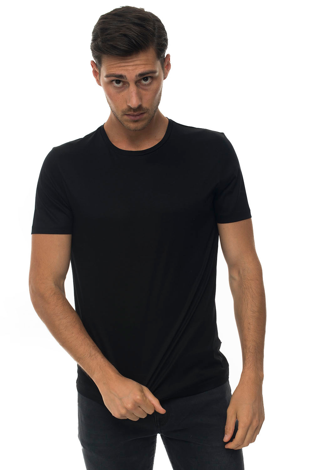 T-shirt girocollo, mezza manica, linguetta con logo, tinta unita, vestibilità slim, composizione: 100% cotone, linea: BOSS.