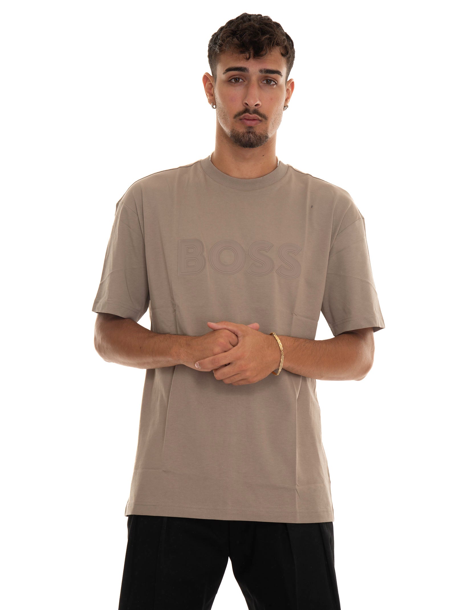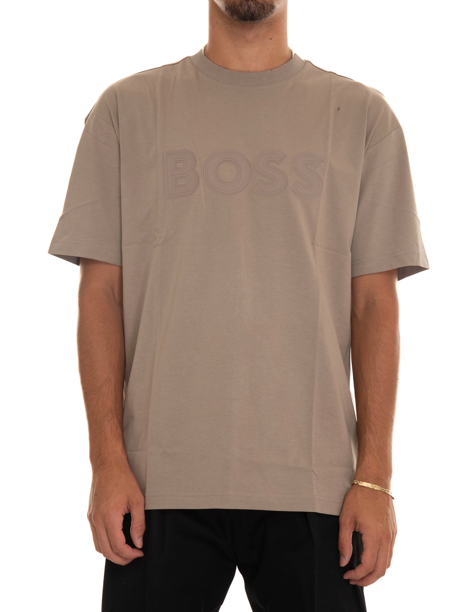 T-shirt girocollo BOSS TEE-LOTUS, manica corta, maxi logo, tinta unita, vestibilità regular, composizione: 100% cotone, linea: BOSS.
