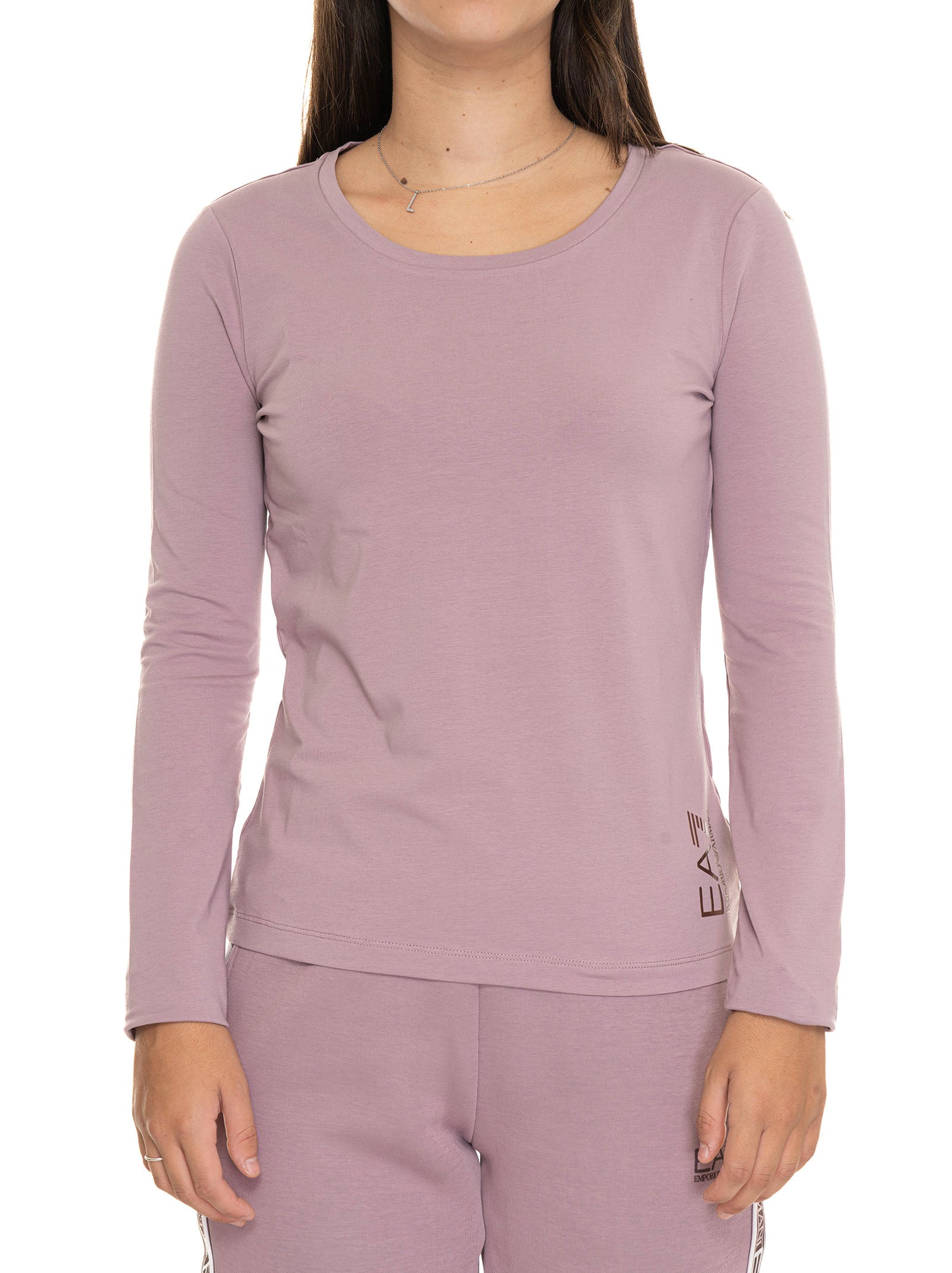 T-shirt, manica lunga, girocollo, logo laterale, tessuto stretch, composizione: 95% cotone, 5% elastan, linea: EA7.