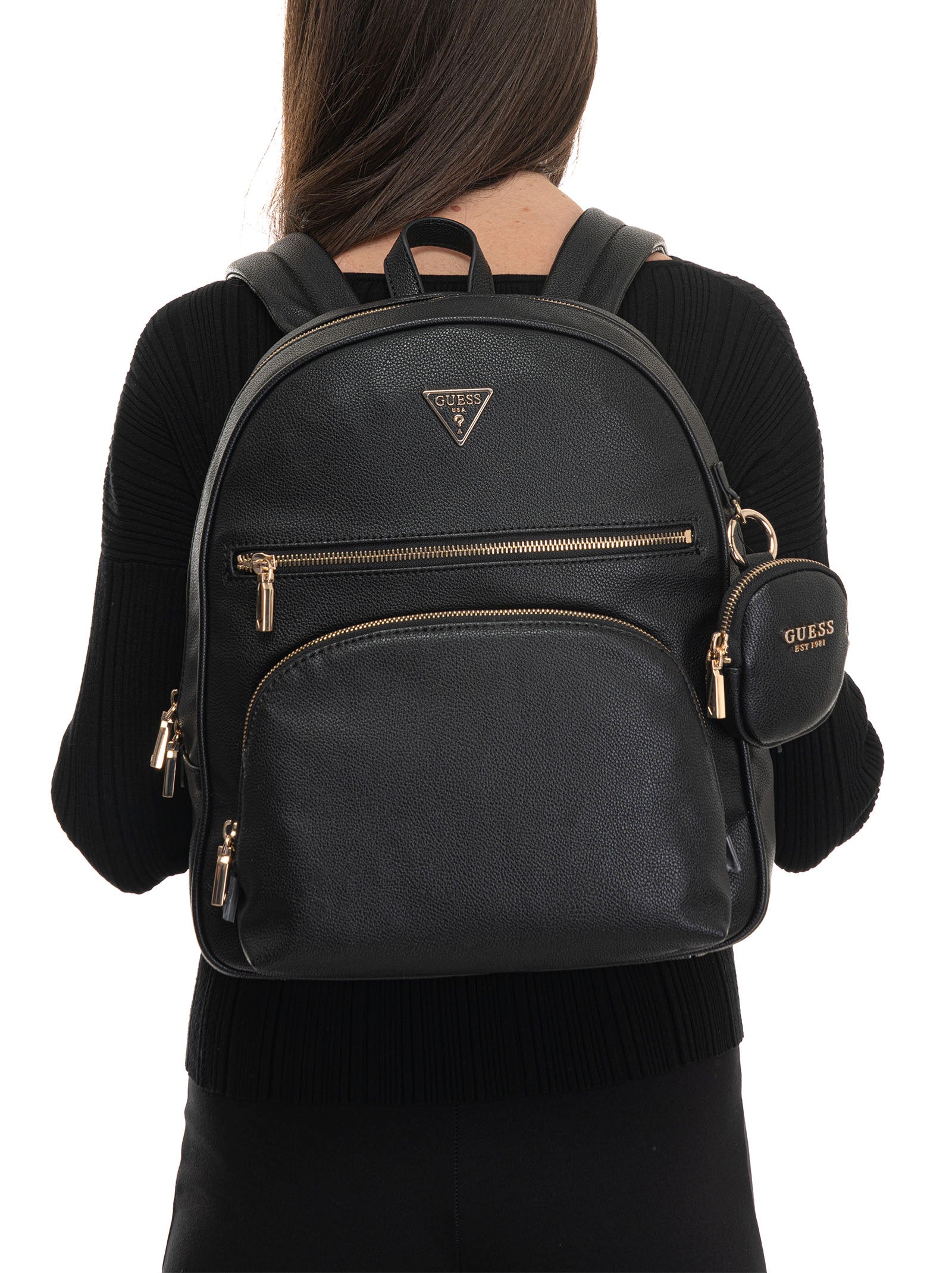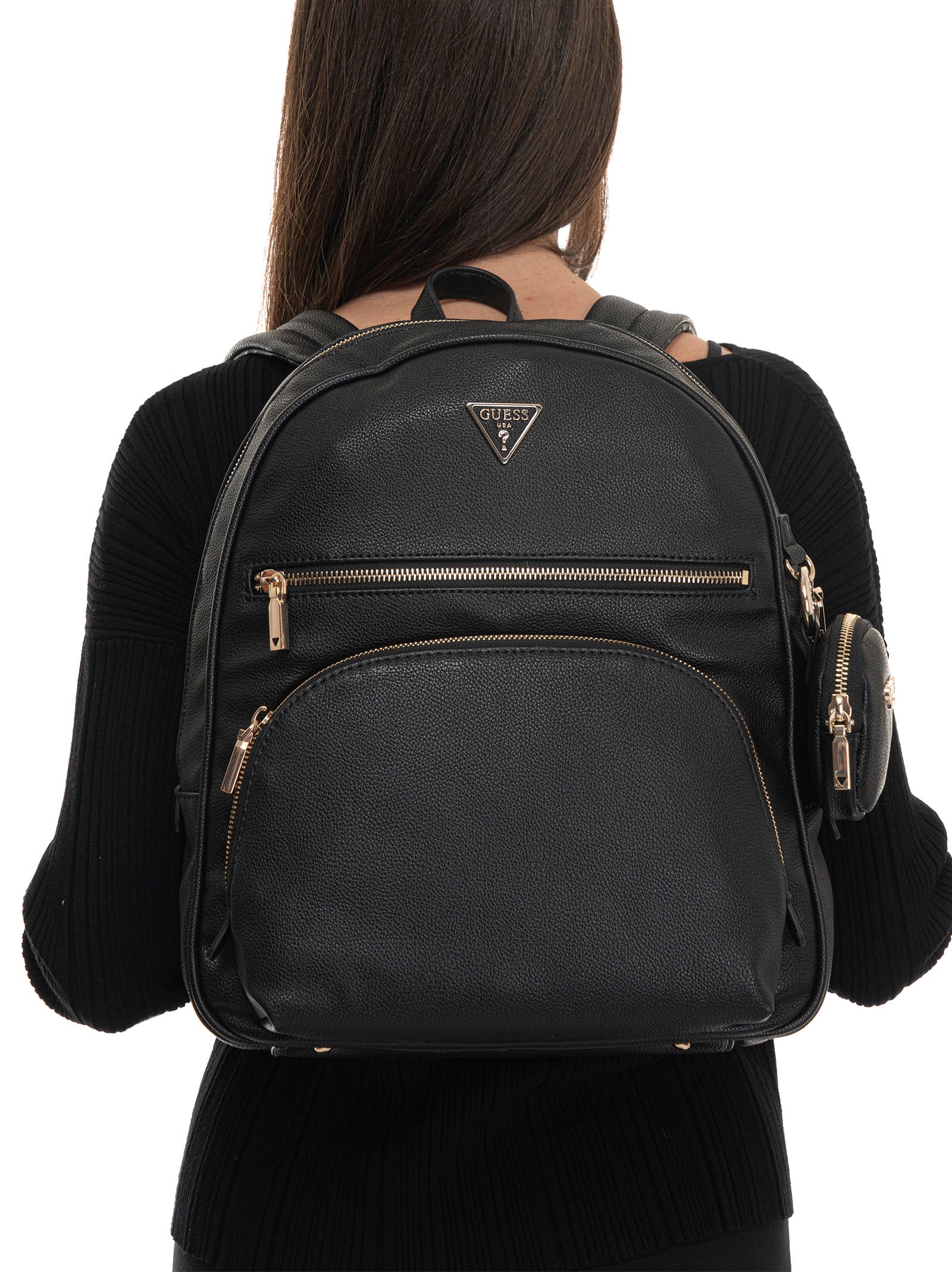 Zaino a spalla, spalline regolabili, charm portamonete removibile, chiusura con cerniera, tasche sul davanti, logo anteriore, tasche multifunzione, composizione: 100% poliuretanico, linea: GUESS.