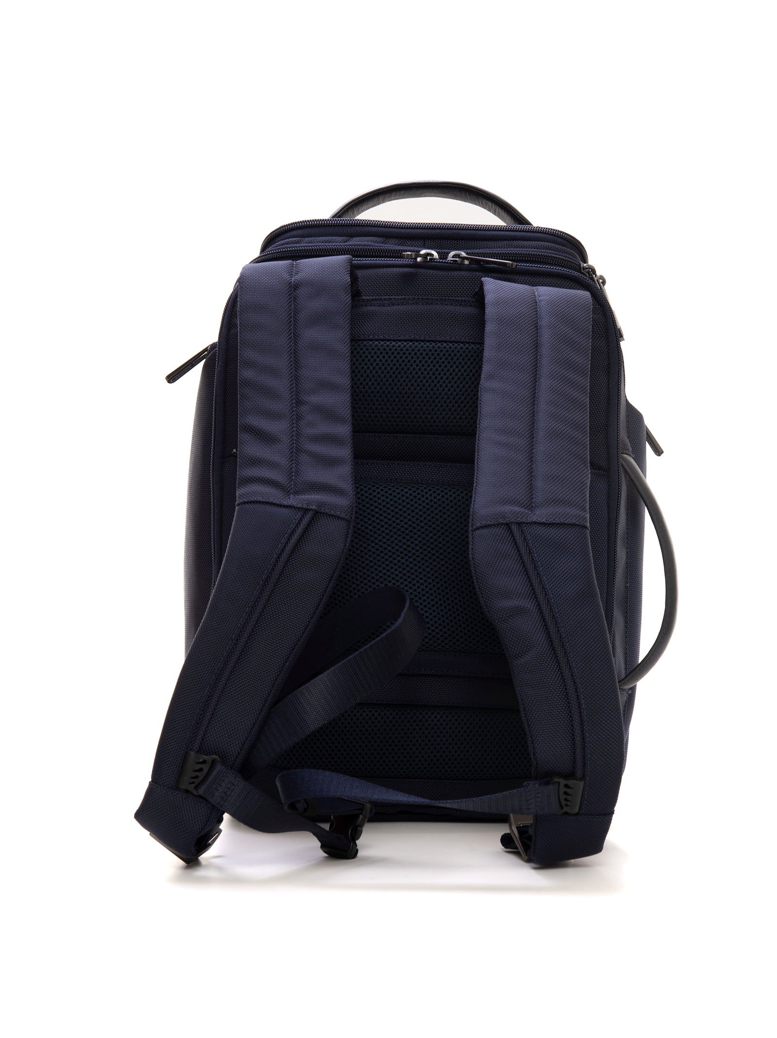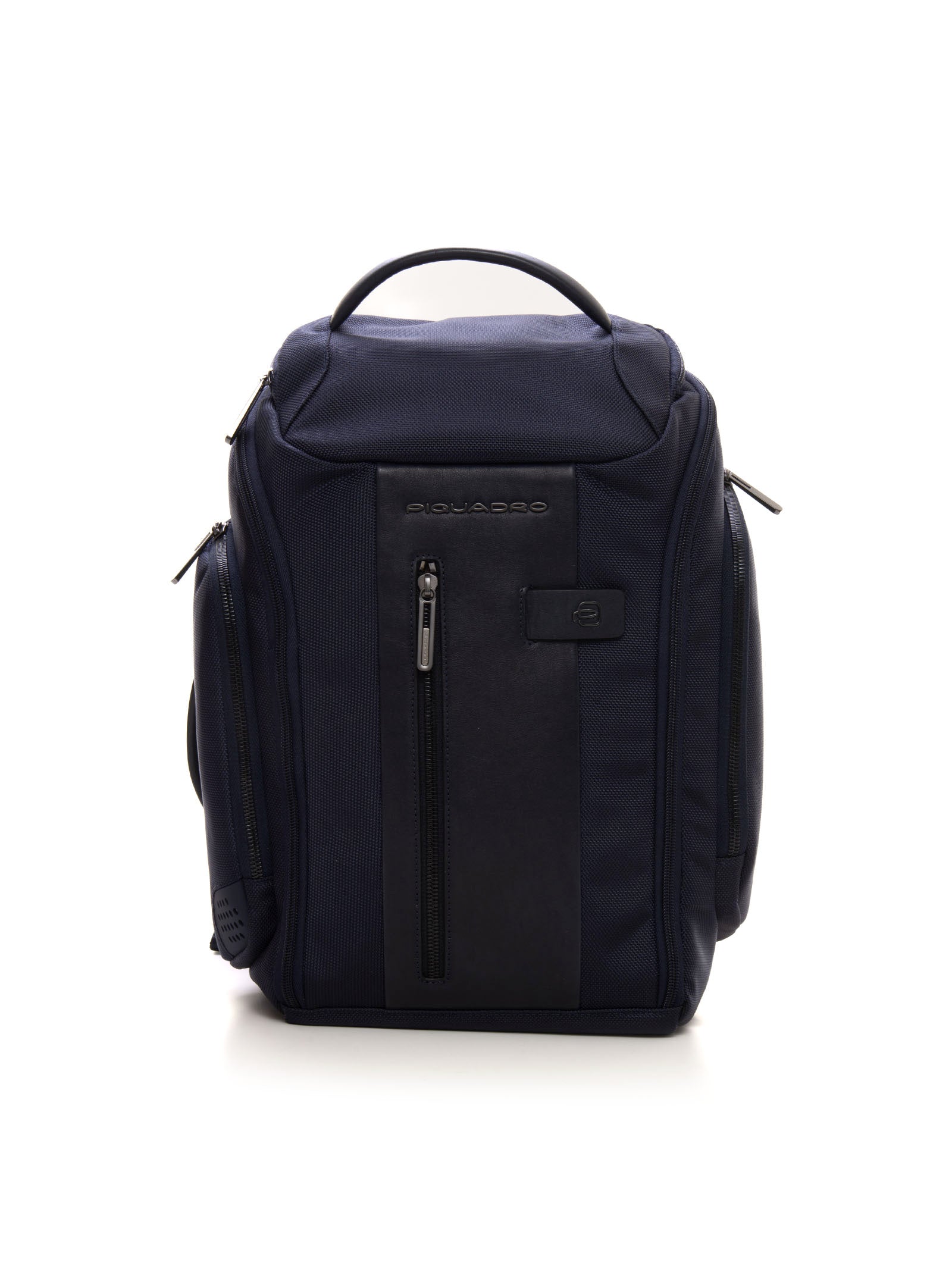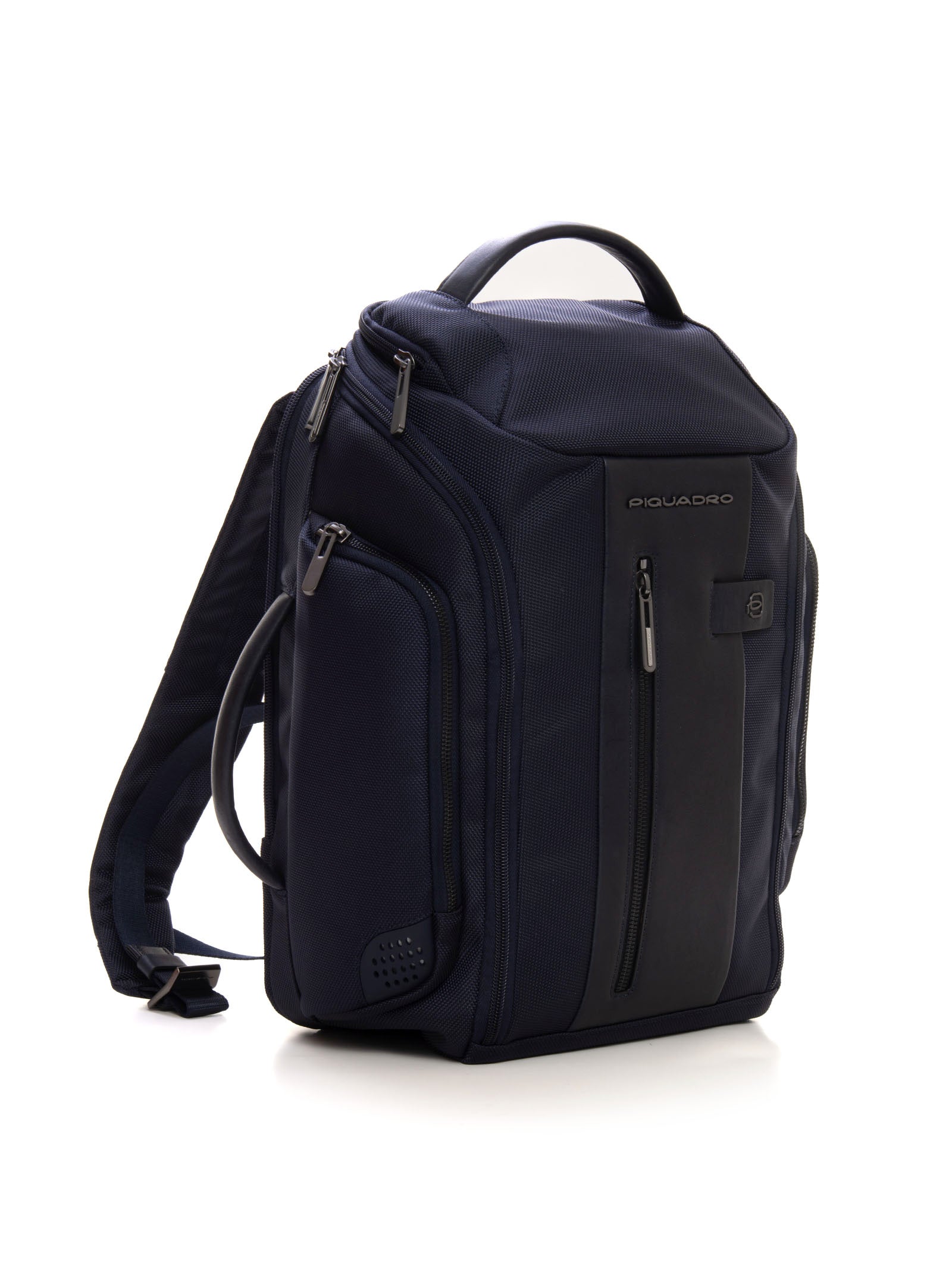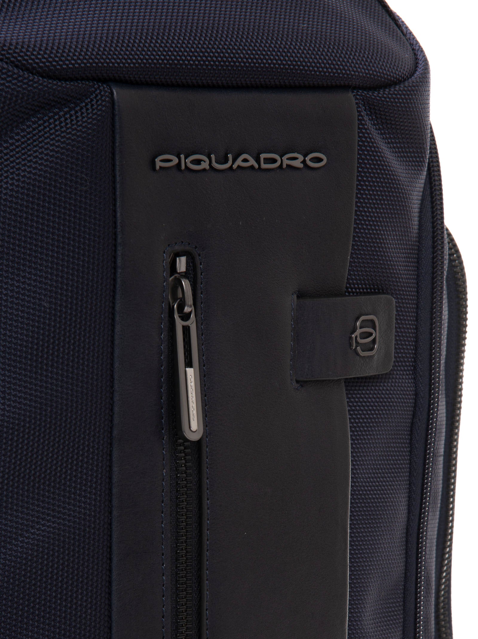 Zaino di pelle e cordura, tasche multifunzione, tasche laterali, manico per portabilità a mano, sistema di aggancio ai trolley, inserti in pelle, composizione: nylonpellelinea: PIQUADRO.